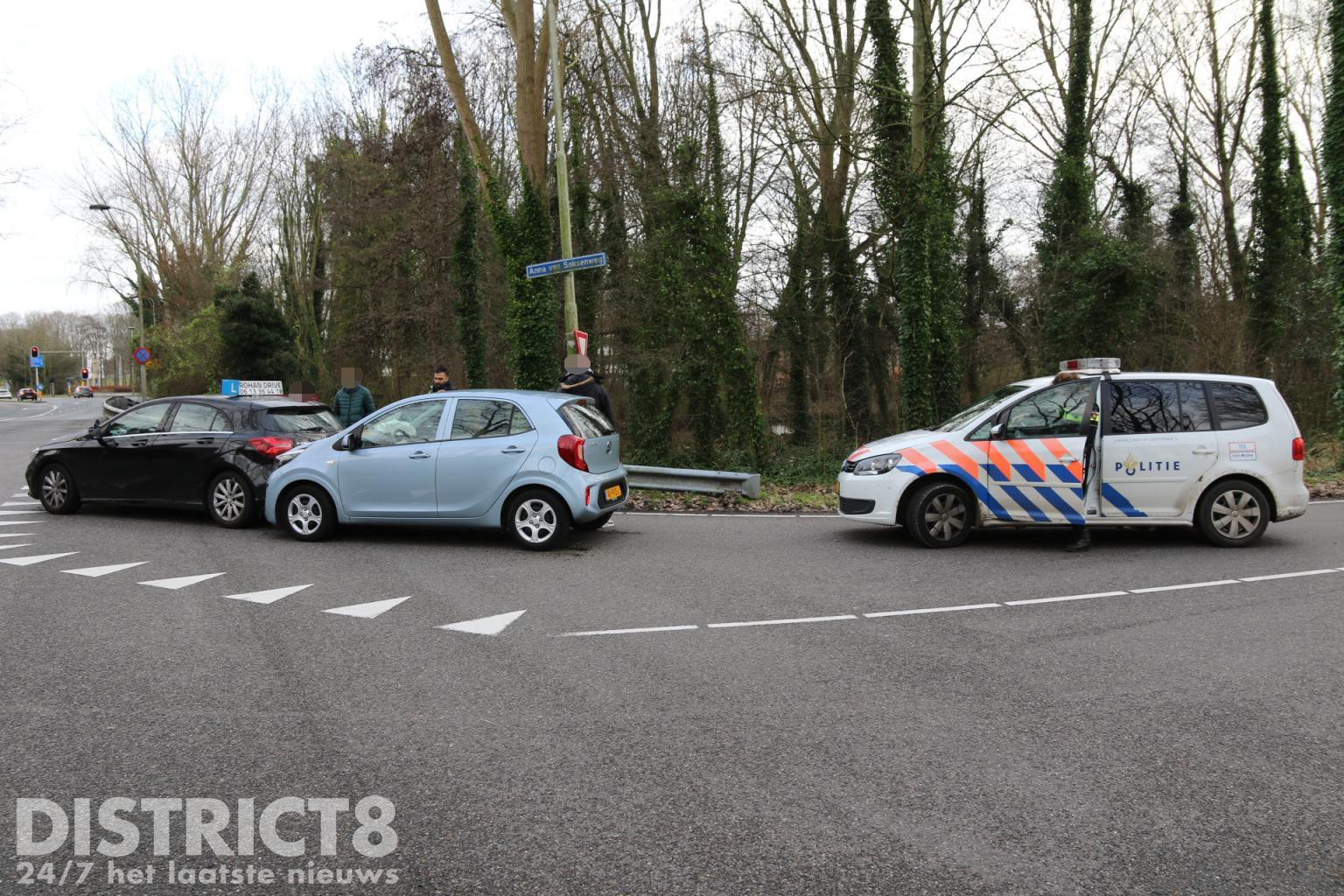 De lesauto wilde de Oostpoortweg oprijden richting de Ikea toen deze van achter werd aangereden. Beide voertuigen liepen schade op.
