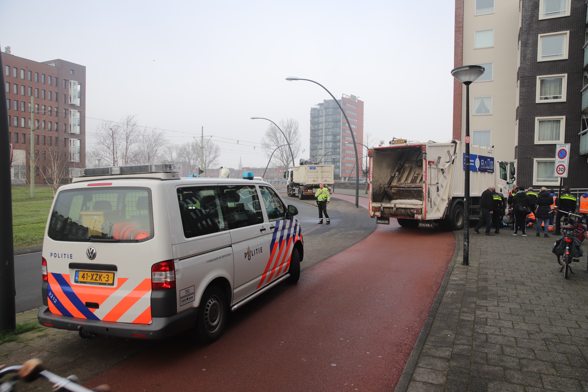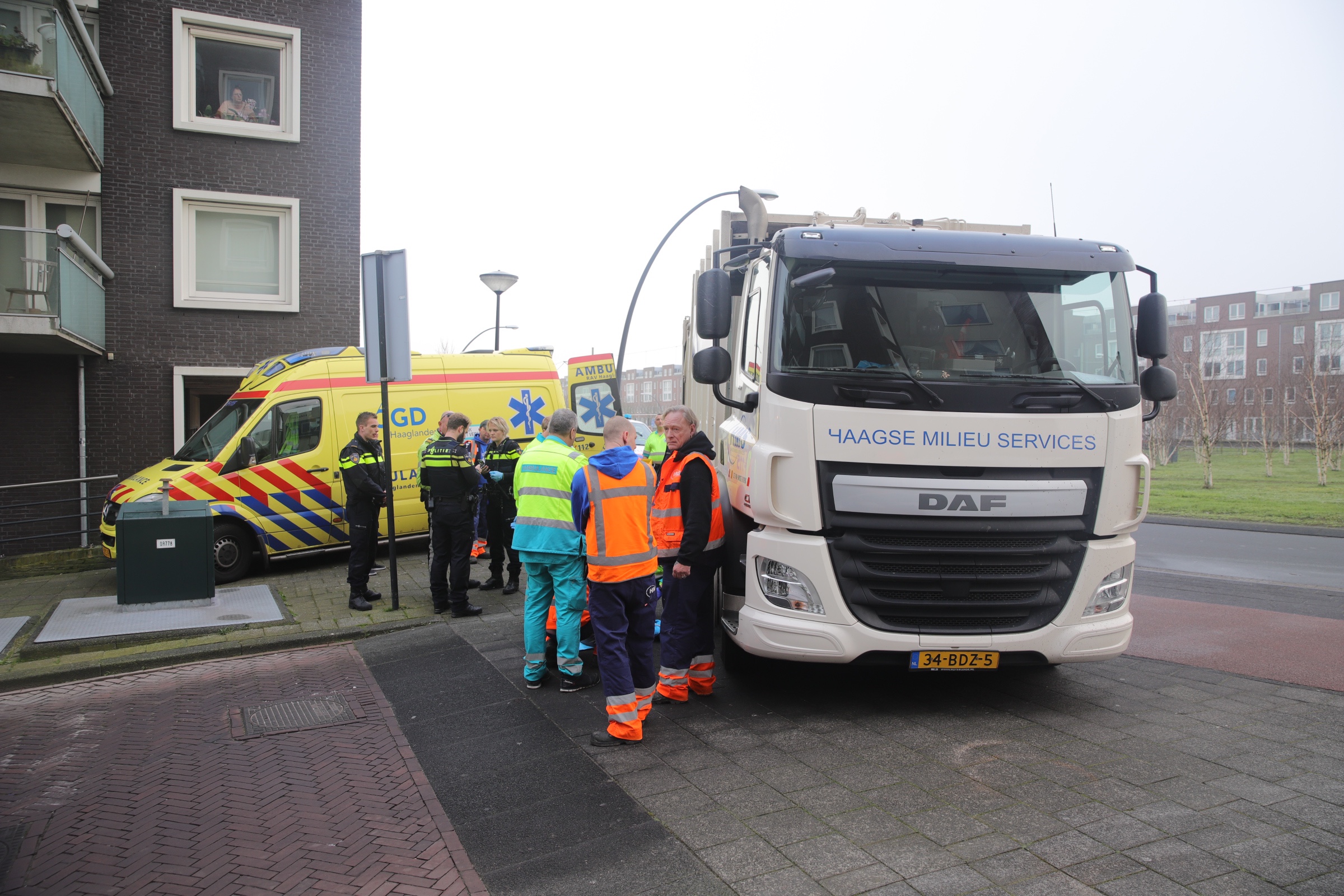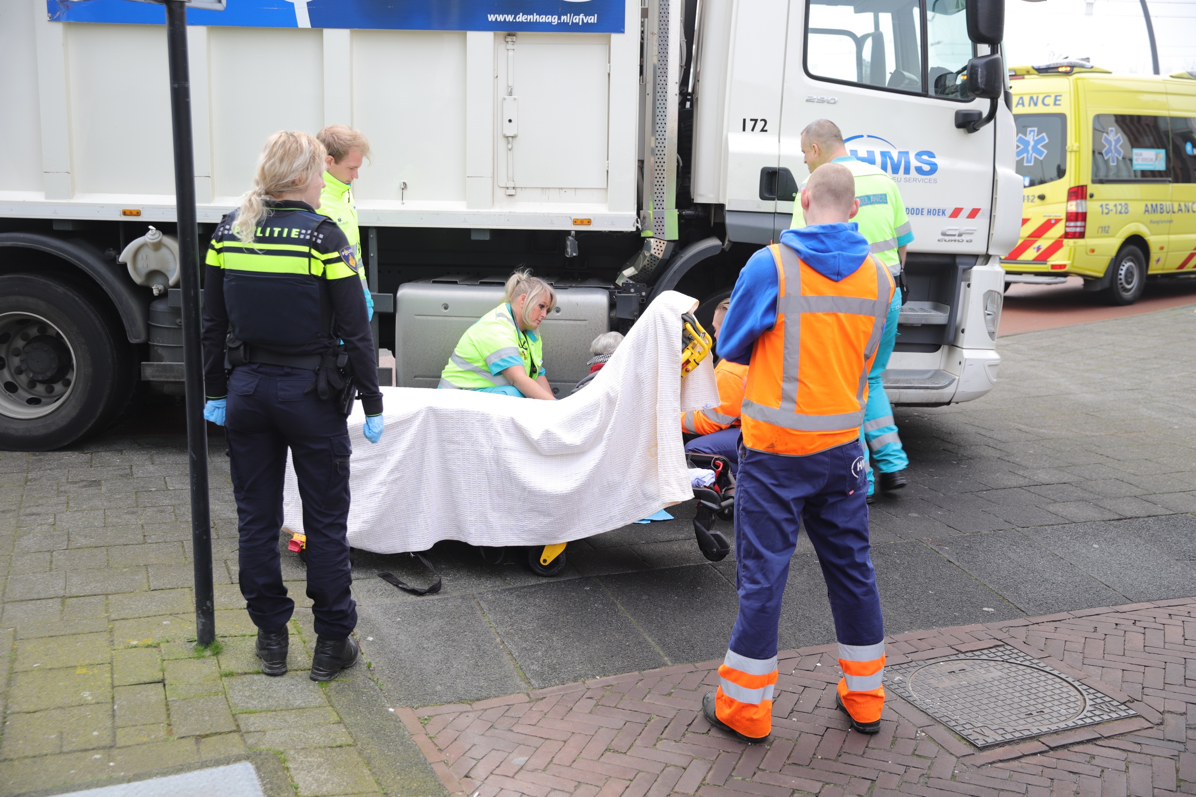 Vrouw met blindenstok aangereden door vuilniswagen Laan van Wateringse Veld Den Haag
