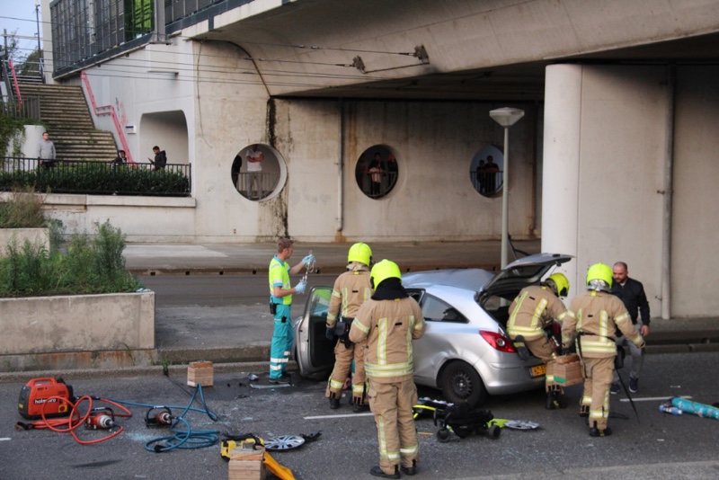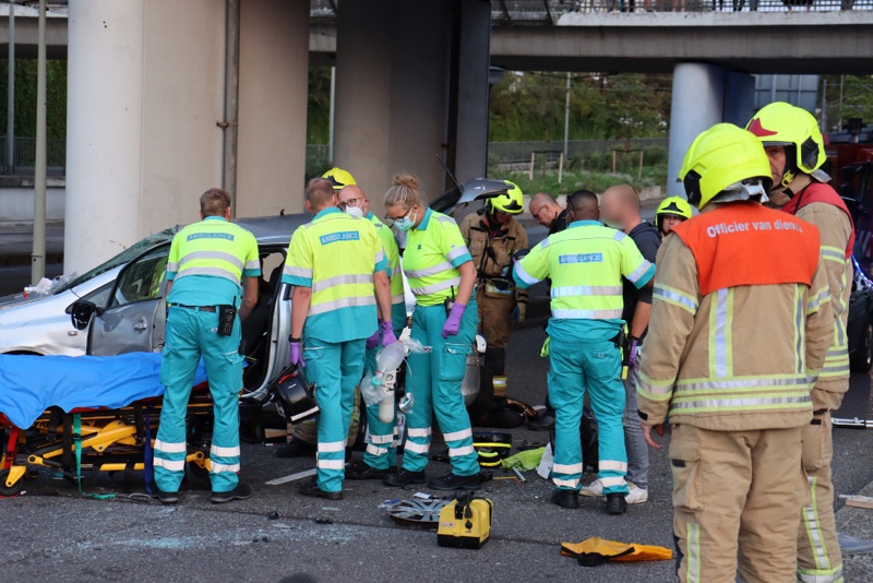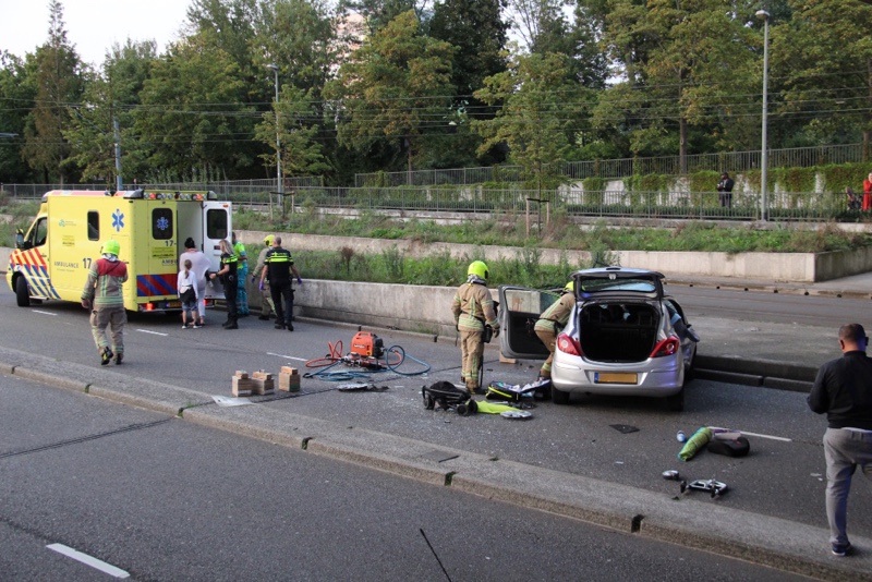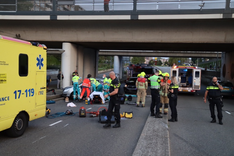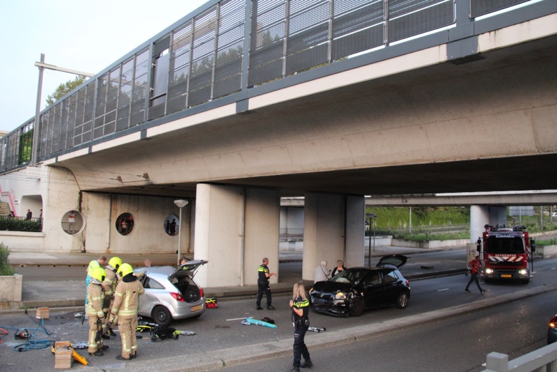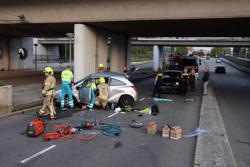 Het ongeval gebeurde onder de metrotunnel. In één van de voertuigen zat een vrouw bekneld. De brandweer is opgeroepen om het voertuig open te knippen. Uiteindelijk is met brute kracht het portier geforceerd en is het slachtoffer zonder knippen in kritieke toestand uit de auto gehaald.