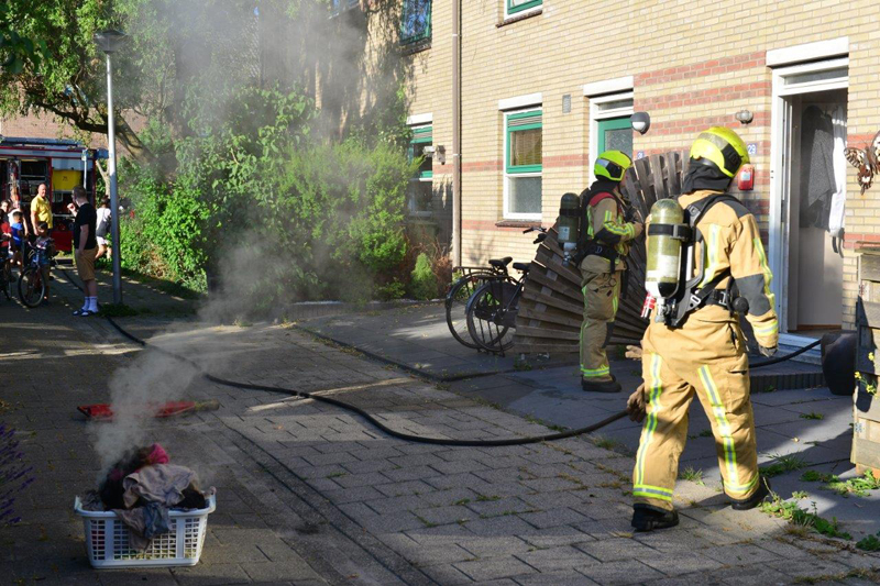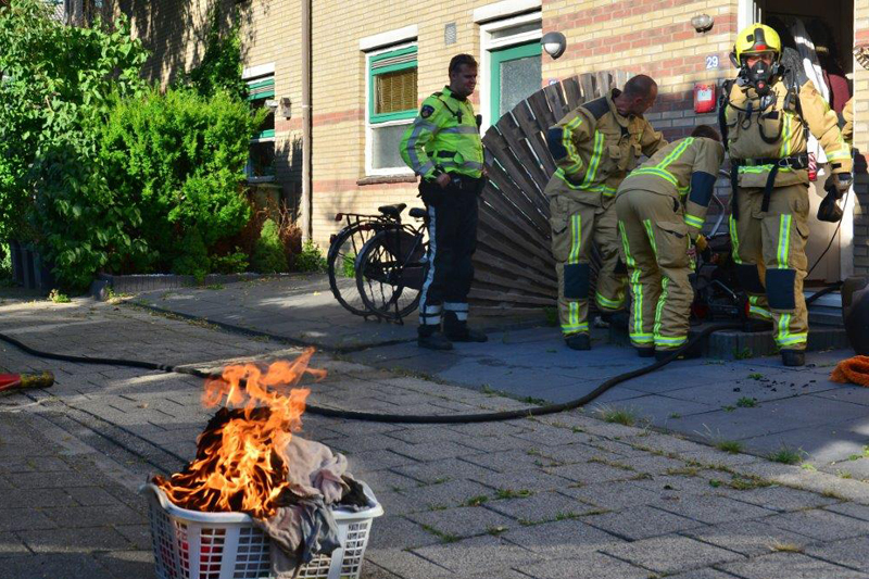 Wasmand in brand door kortsluiting in krultang Barietgeel Zoetermeer