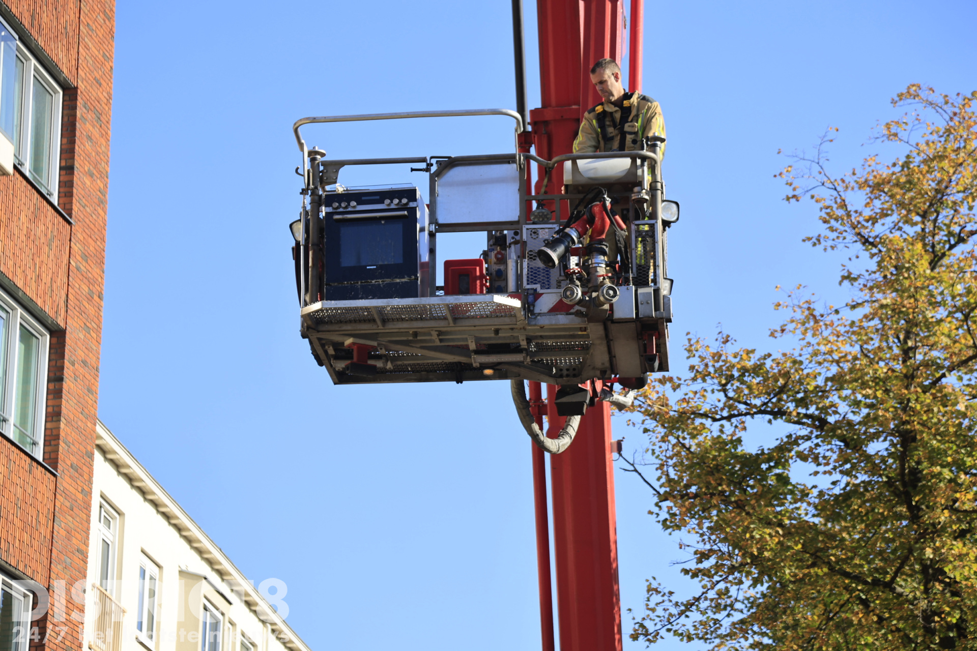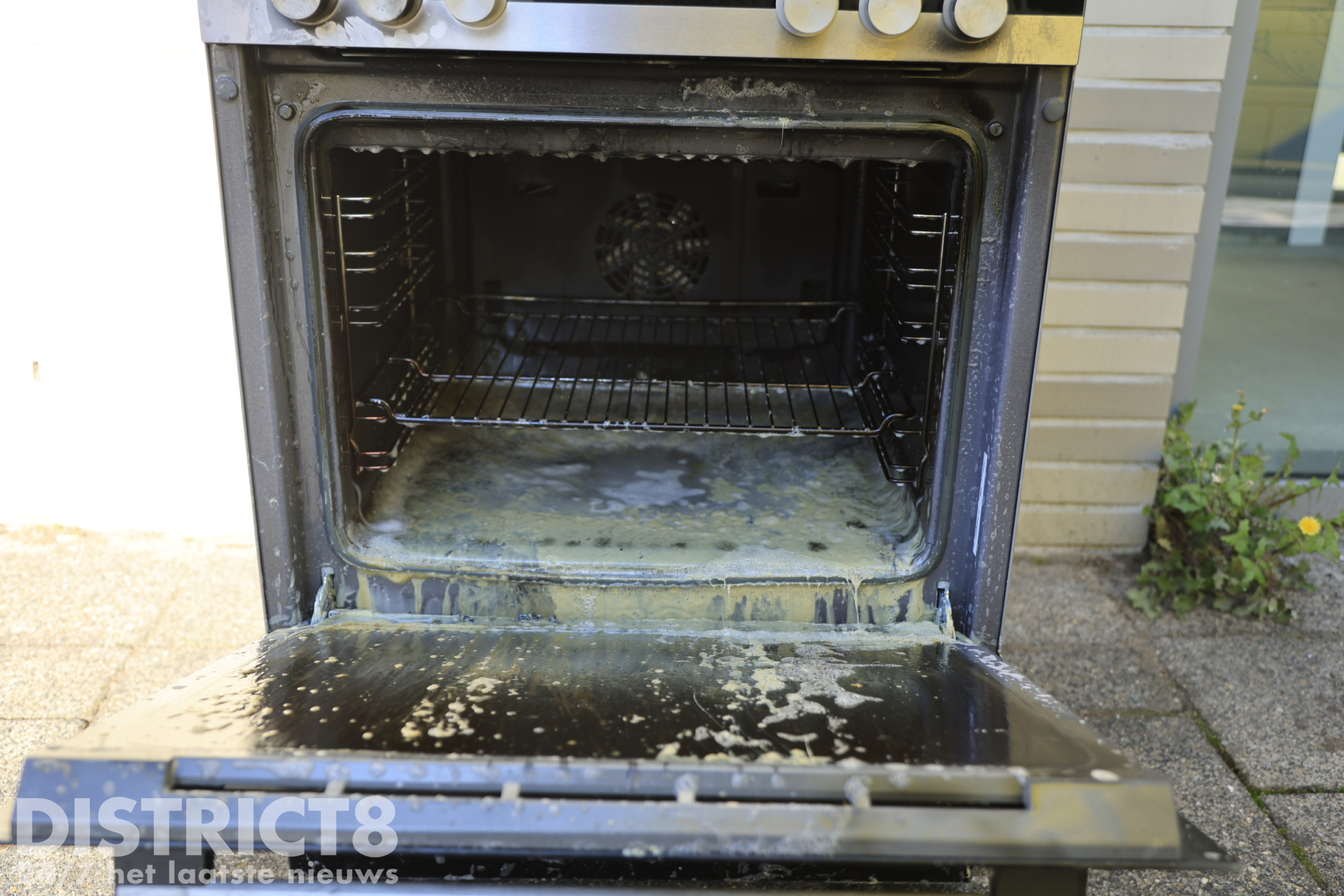 De brandweer heeft met de hoogwerker de oven naar beneden gehaald. De woning is hierna geventileerd.