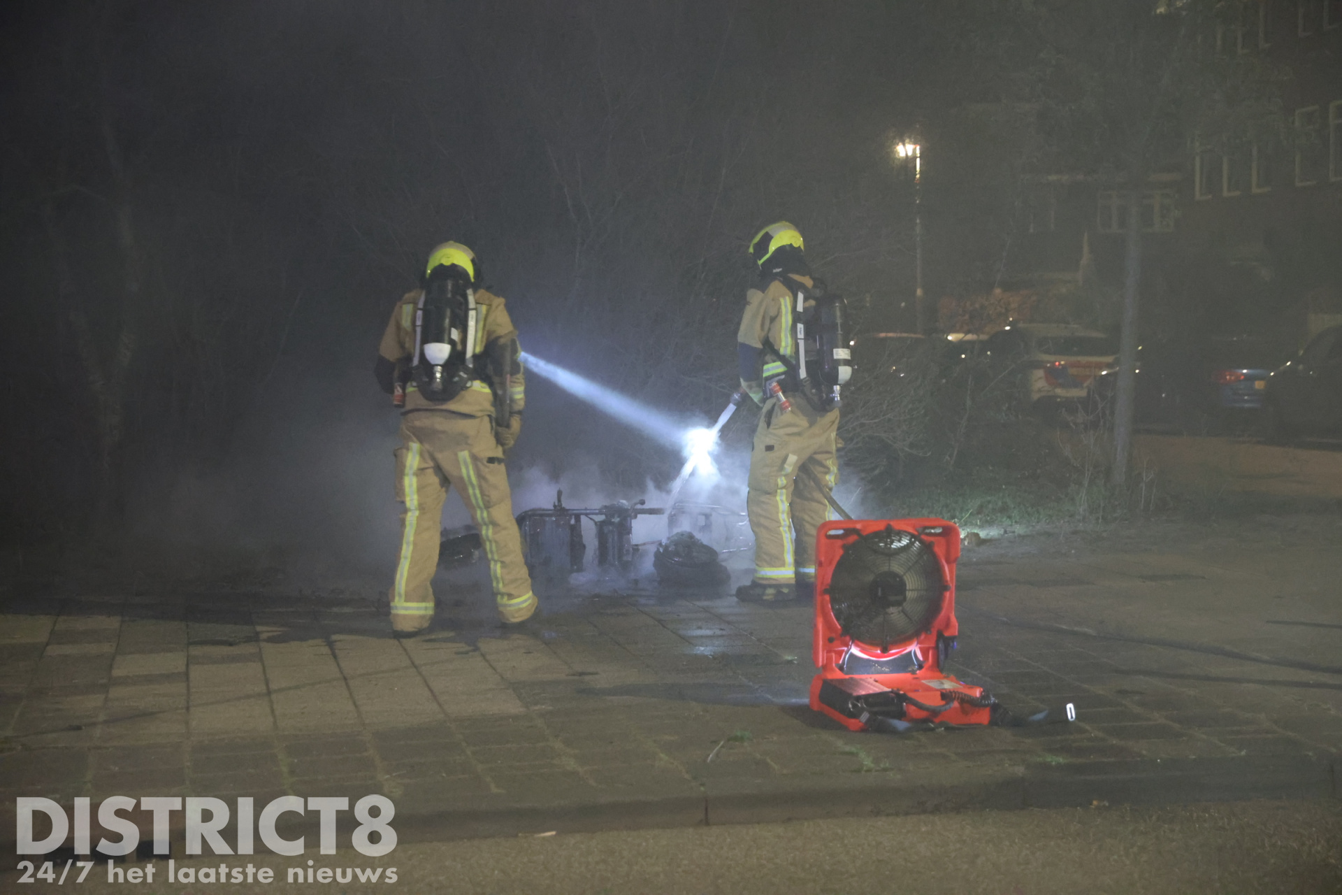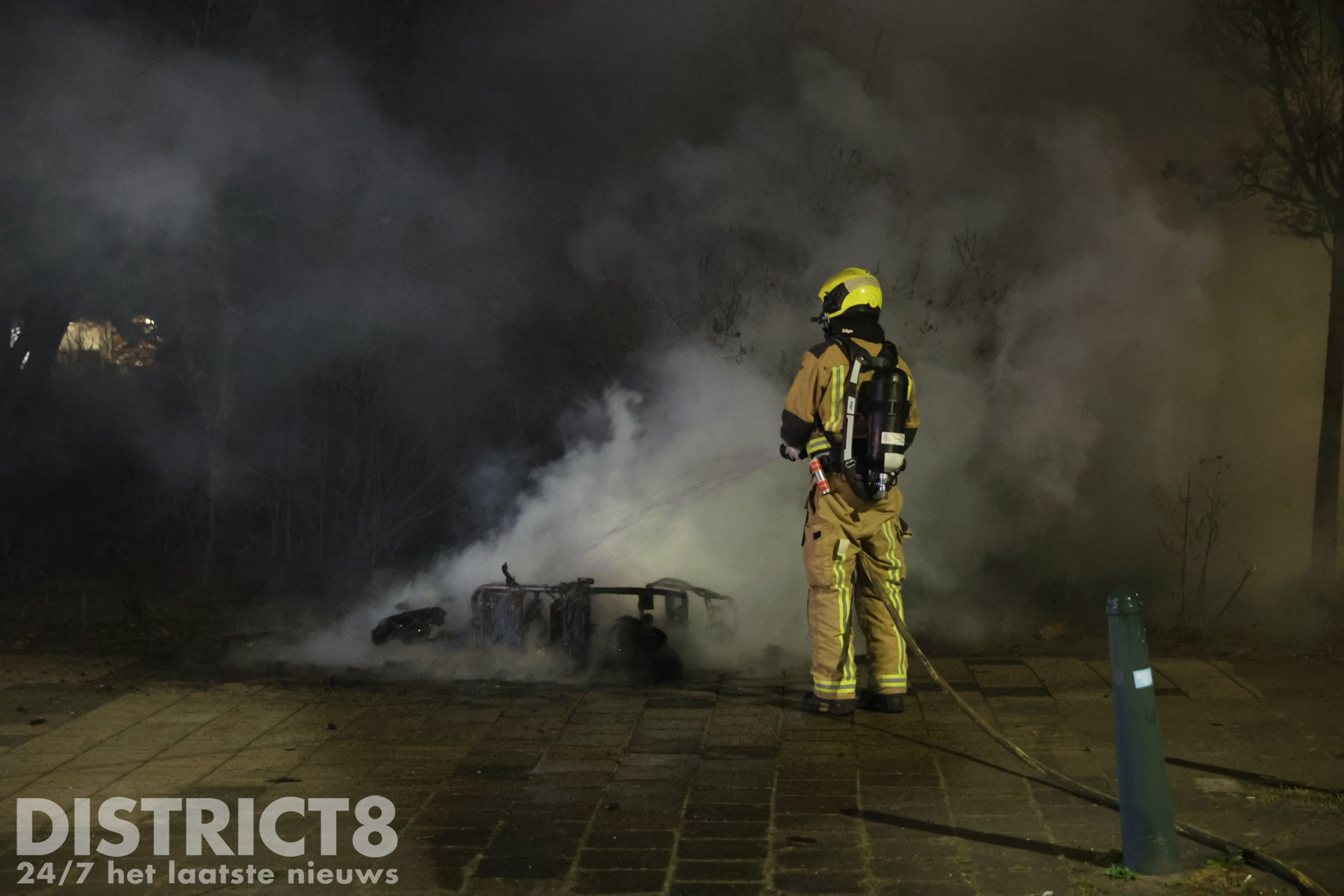Den Haag – Terwijl de brandweer en de politie druk bezig waren met de scooterbrand op de kruising van de Segbroeklaan en de Goudenregenstraat in Den Haag, ontvingen zij rond half twee opnieuw een melding van een brandende scooter. Ditmaal gebeurde het ongeveer 500 meter verderop, op de kruising van de Sportlaan en het Wielewaalplein in Den Haag.