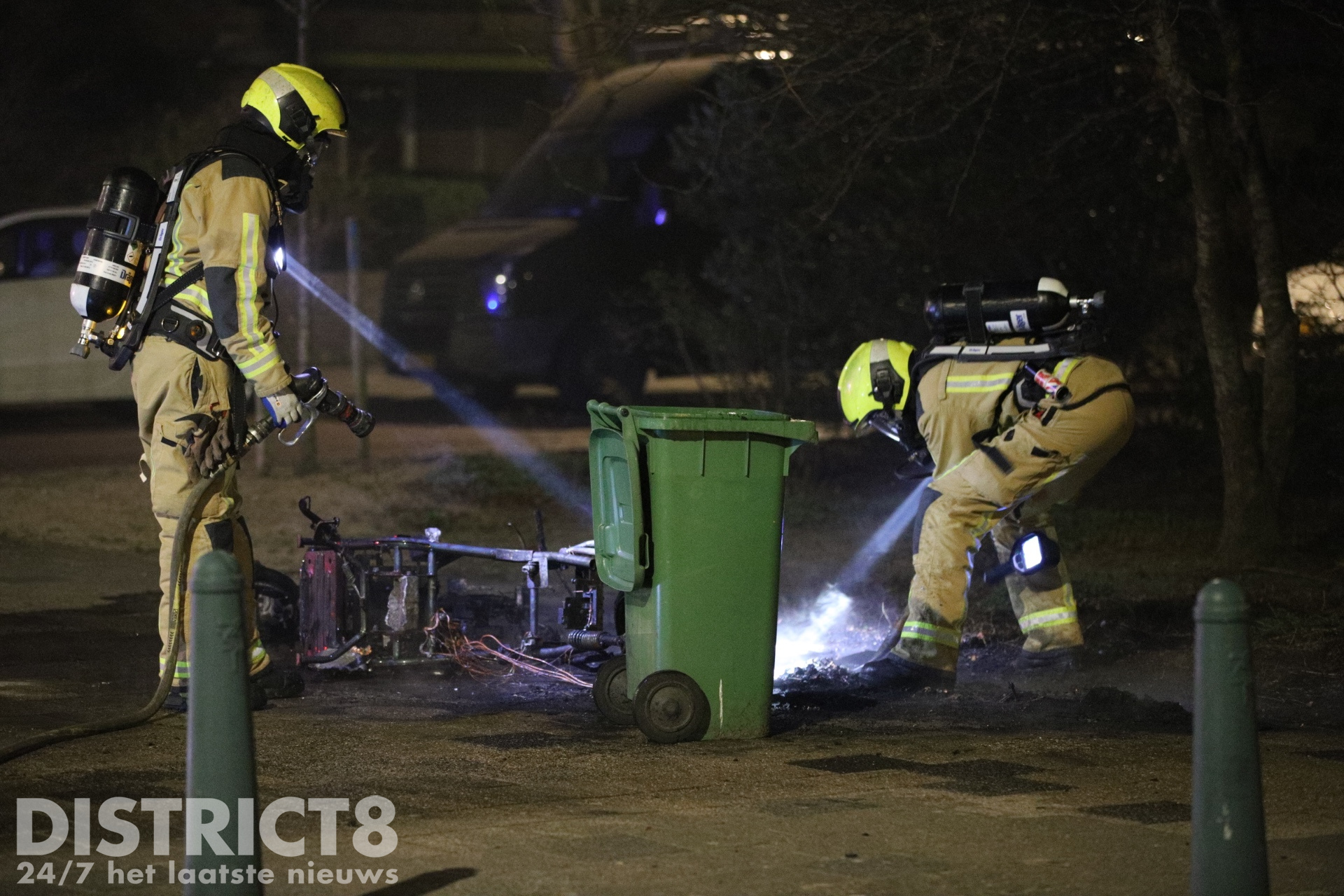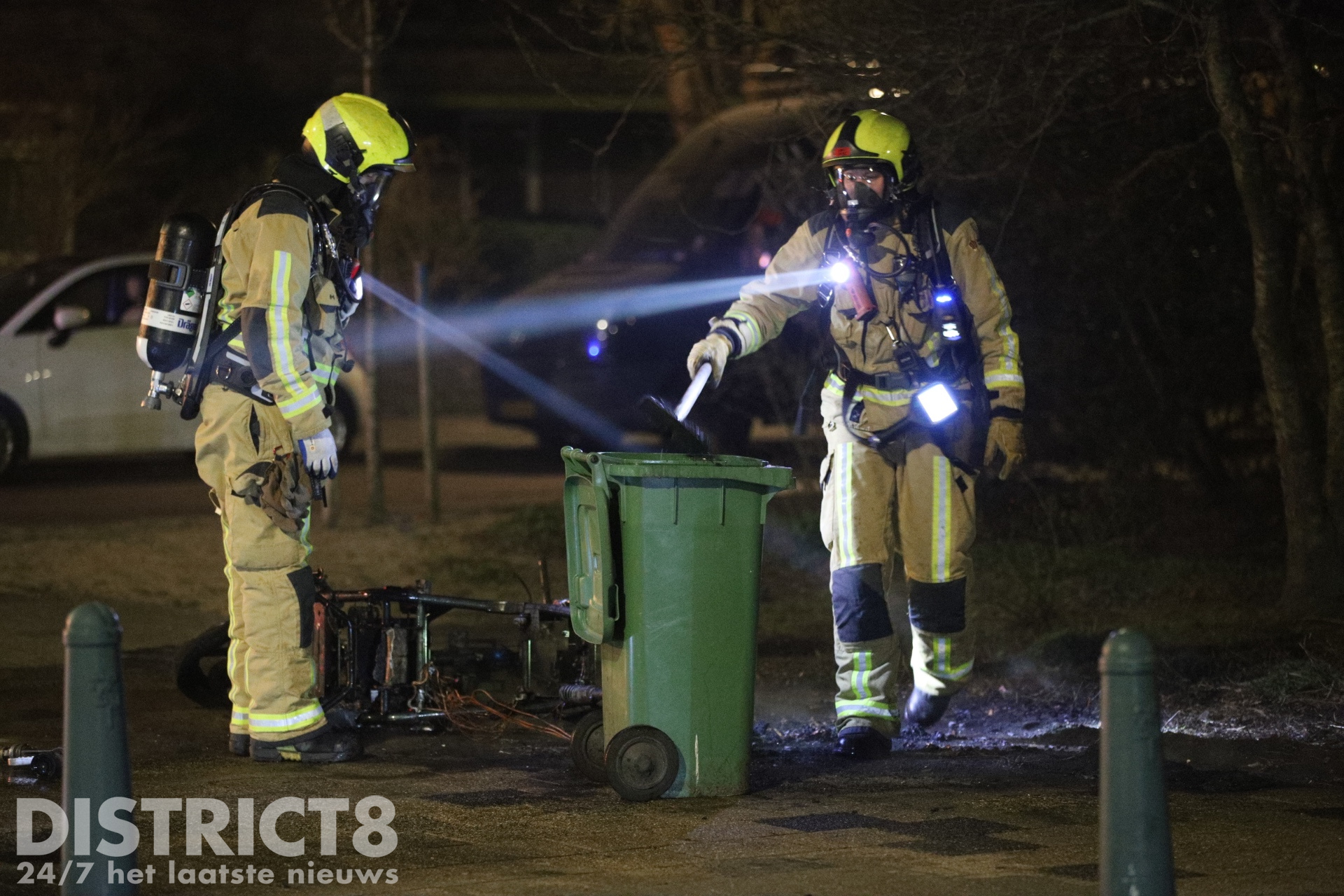 Uiteindelijk kreeg de brandweer het vuur onder controle en werd de accu van de scooter ondergedompeld in een kliko gevuld met water.
