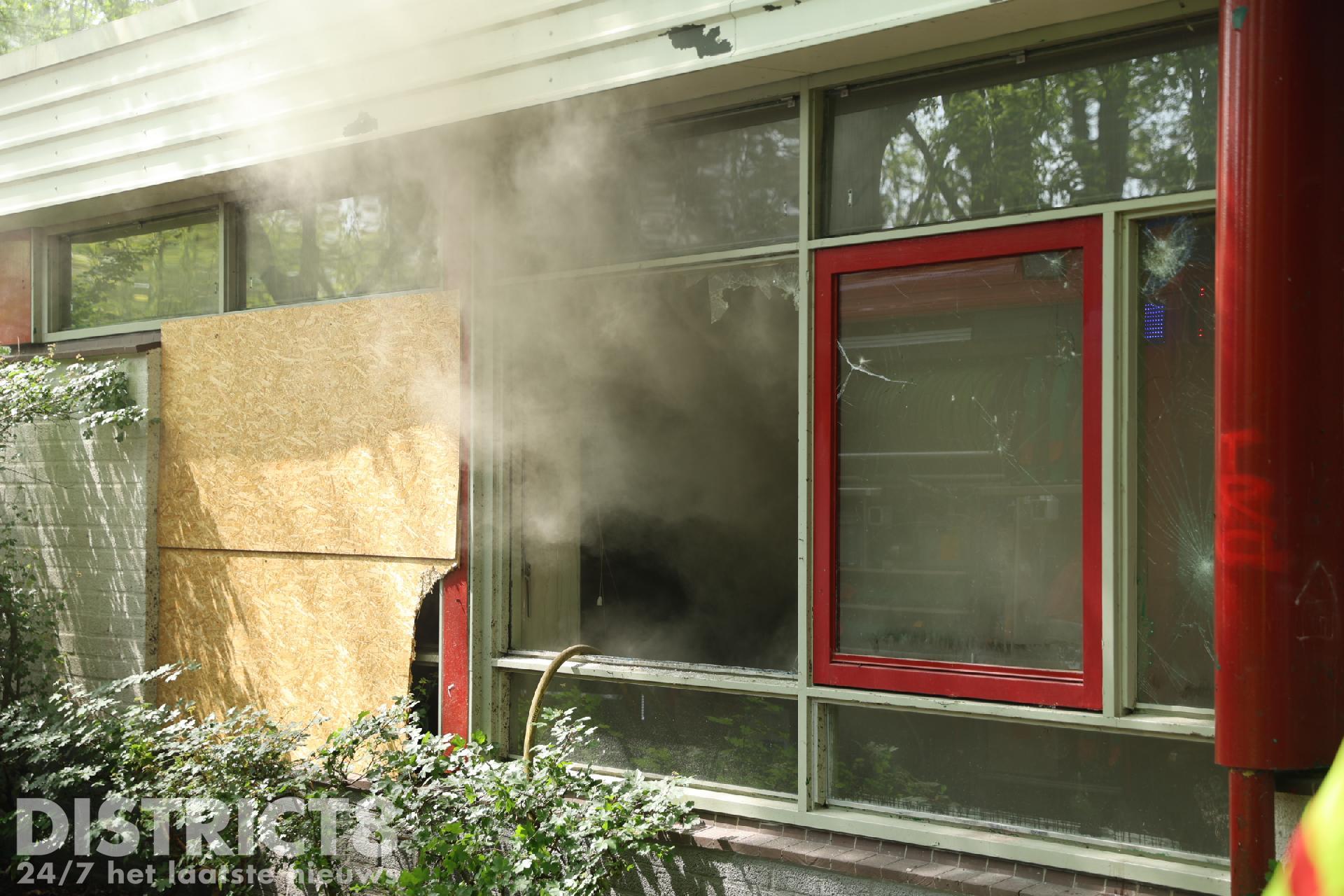 Omstanders zeggen dat de brand is aangestoken. Dit is de derde keer deze week dat er brand is in het leegstaande pand. Getuigen hebben jonge jongens weg zien gaan van het terrein. De politie heeft de zaak in onderzoek.