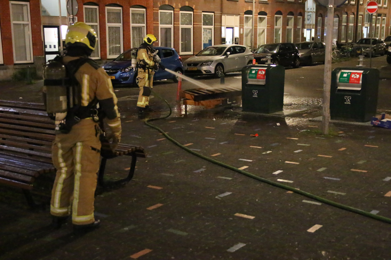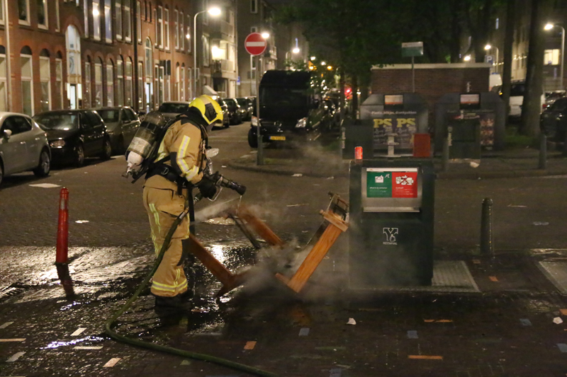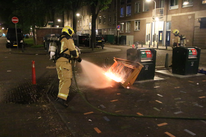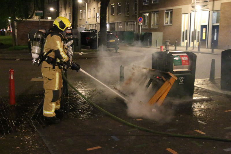 Een stapeltje hout, wat tegen een ondergrondse container was geplaatst, is in brand gestoken. De brandweer moest hun bed uit komen om het brandje te blussen.