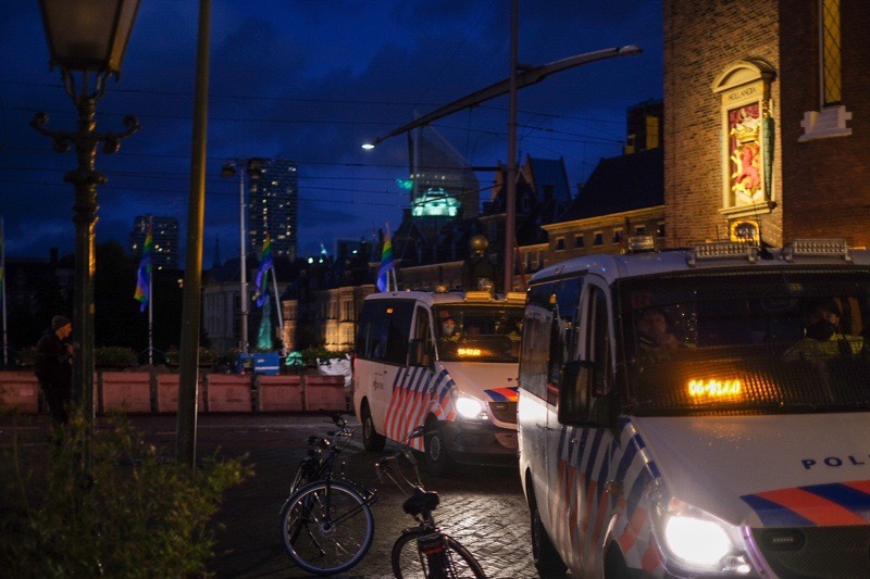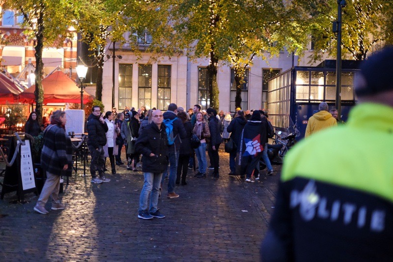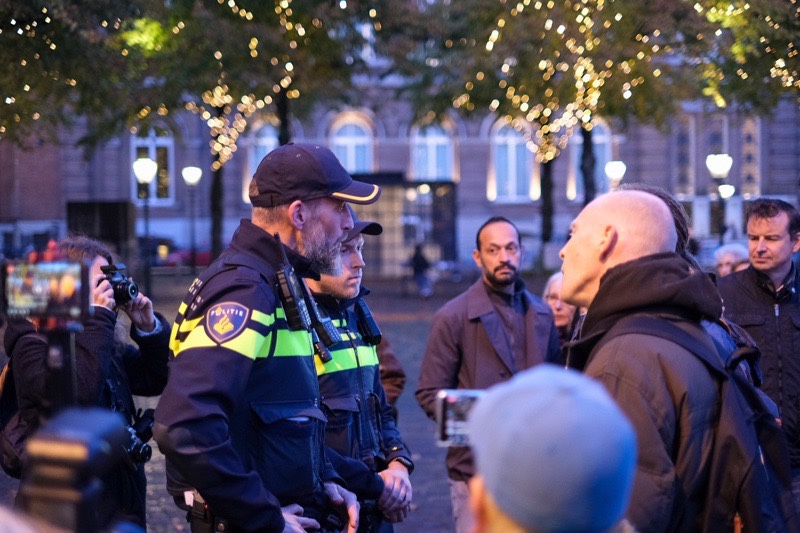 De demonstratie werd door de burgemeester van Den Haag verboden. De politie heeft kort een gesprek gevoerd met de demonstranten. Meerdere verlieten de demonstranten het Plein.