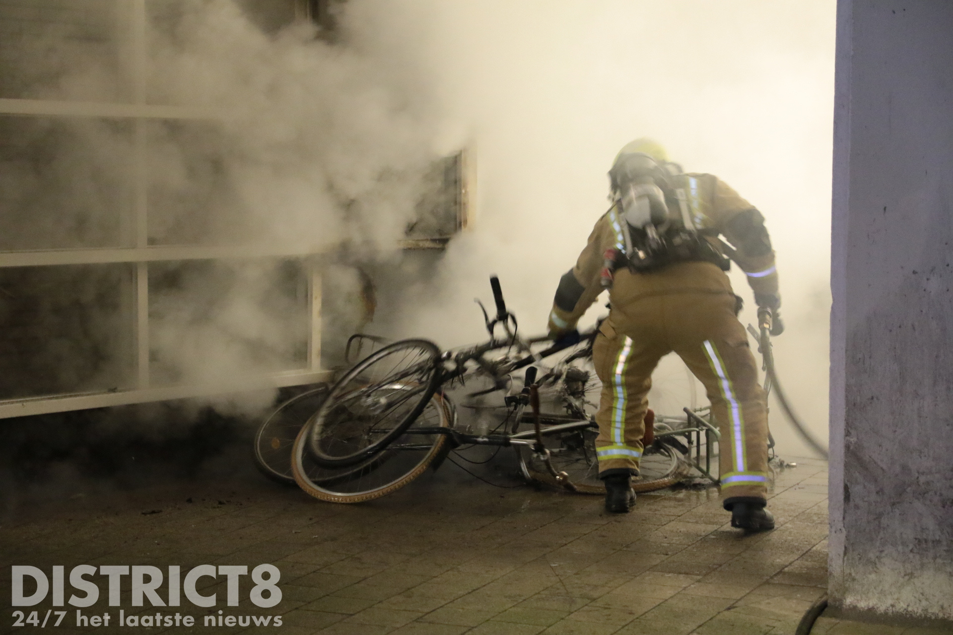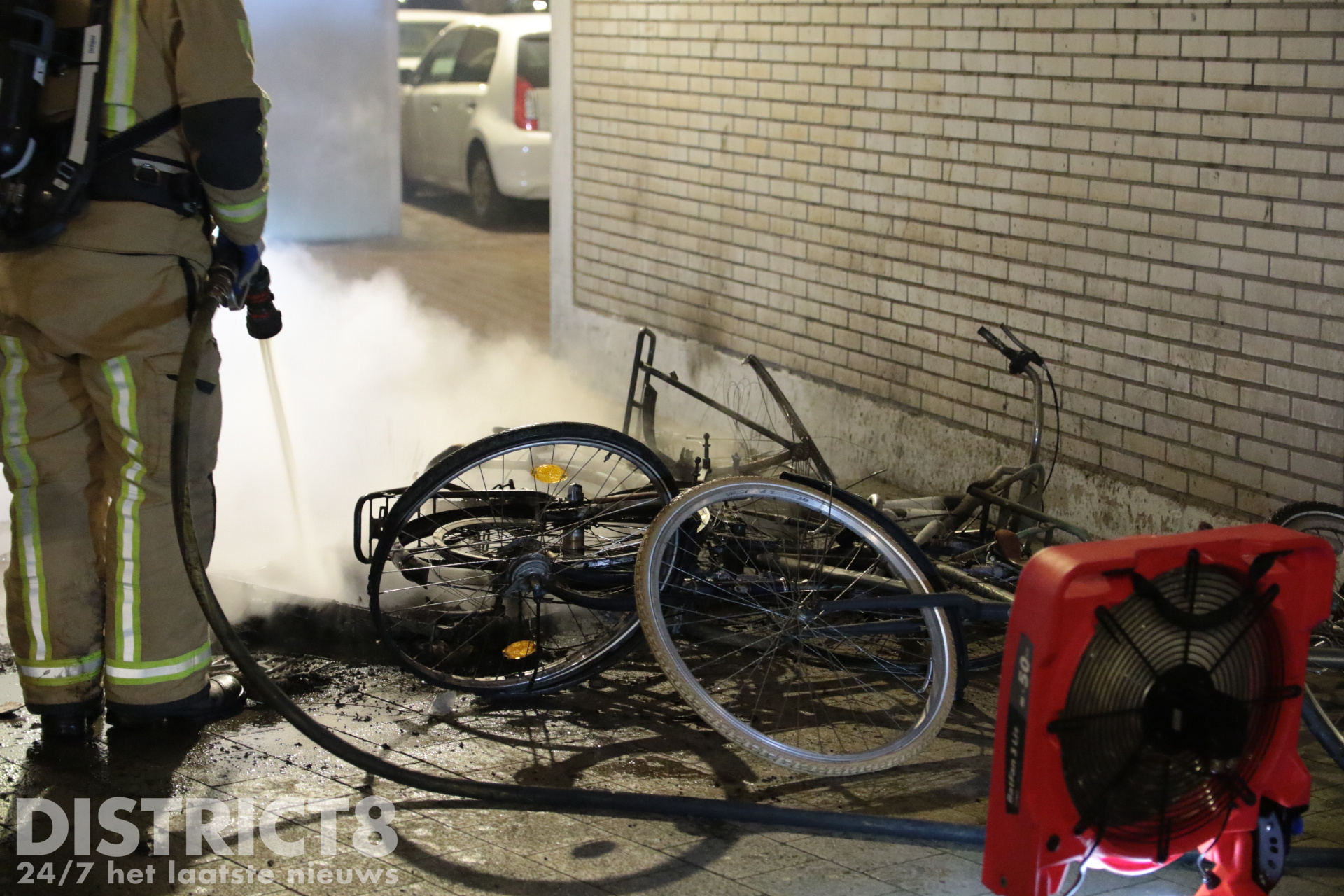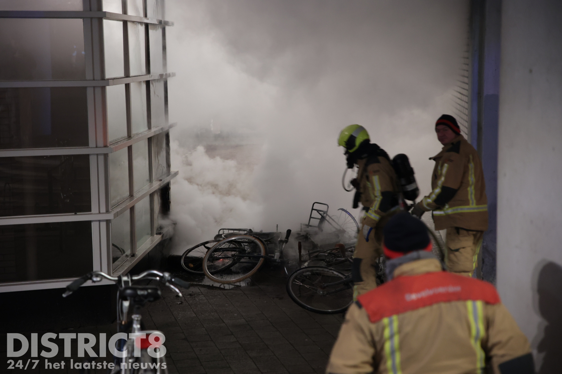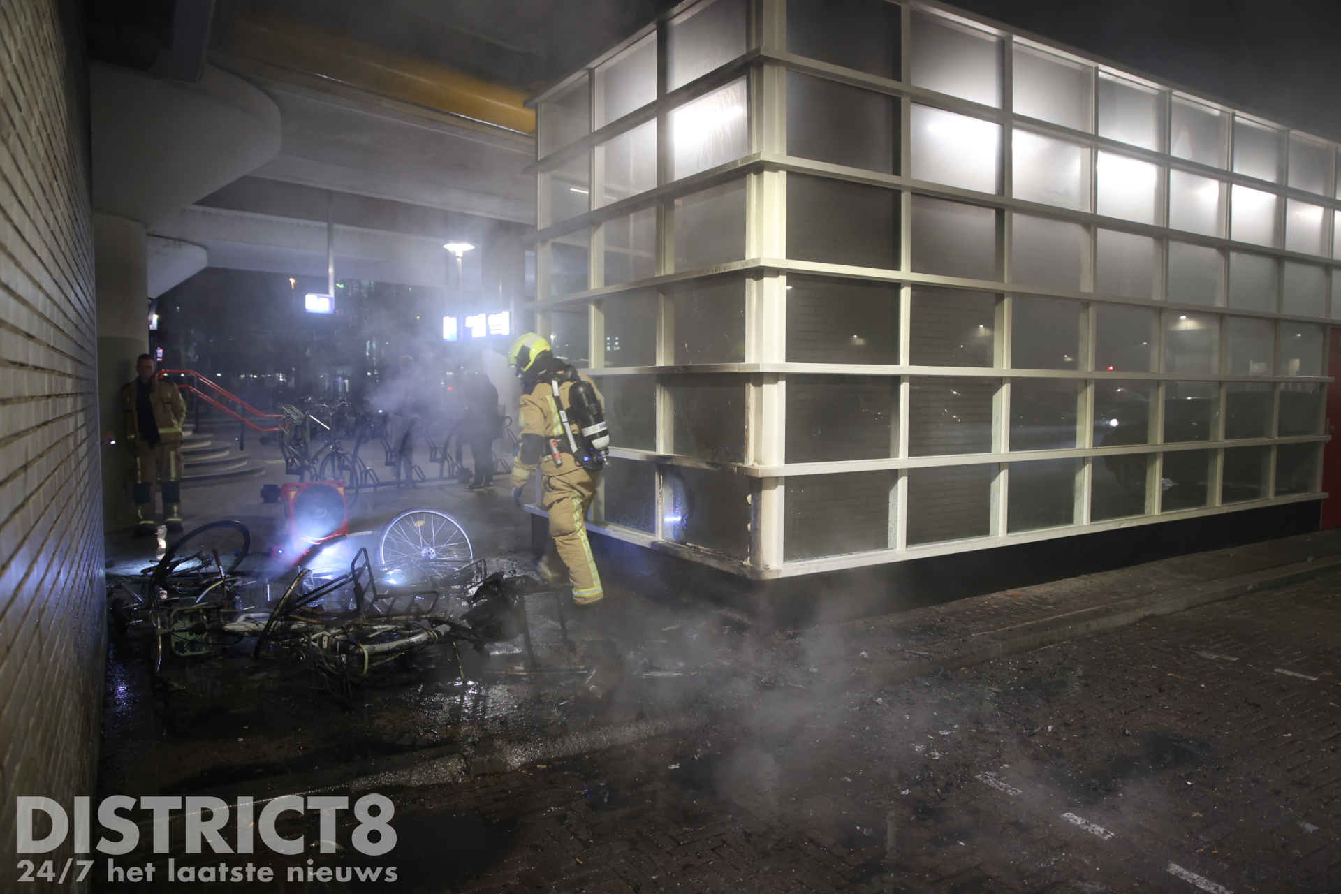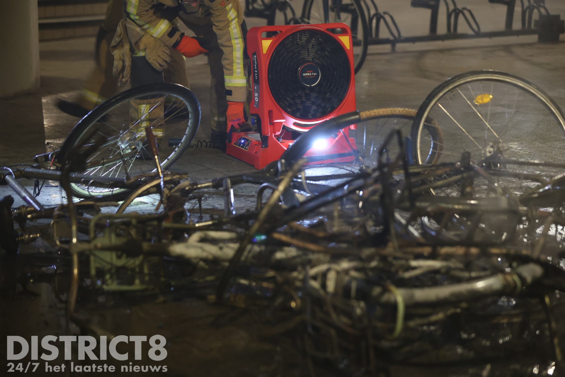 Voorburg – Bij de parkeerplaats van station Voorburg aan de Zwartelaan in Voorburg is in de nacht van zondag op maandag 13 januari brand uitgebroken in een stapel fietsen.