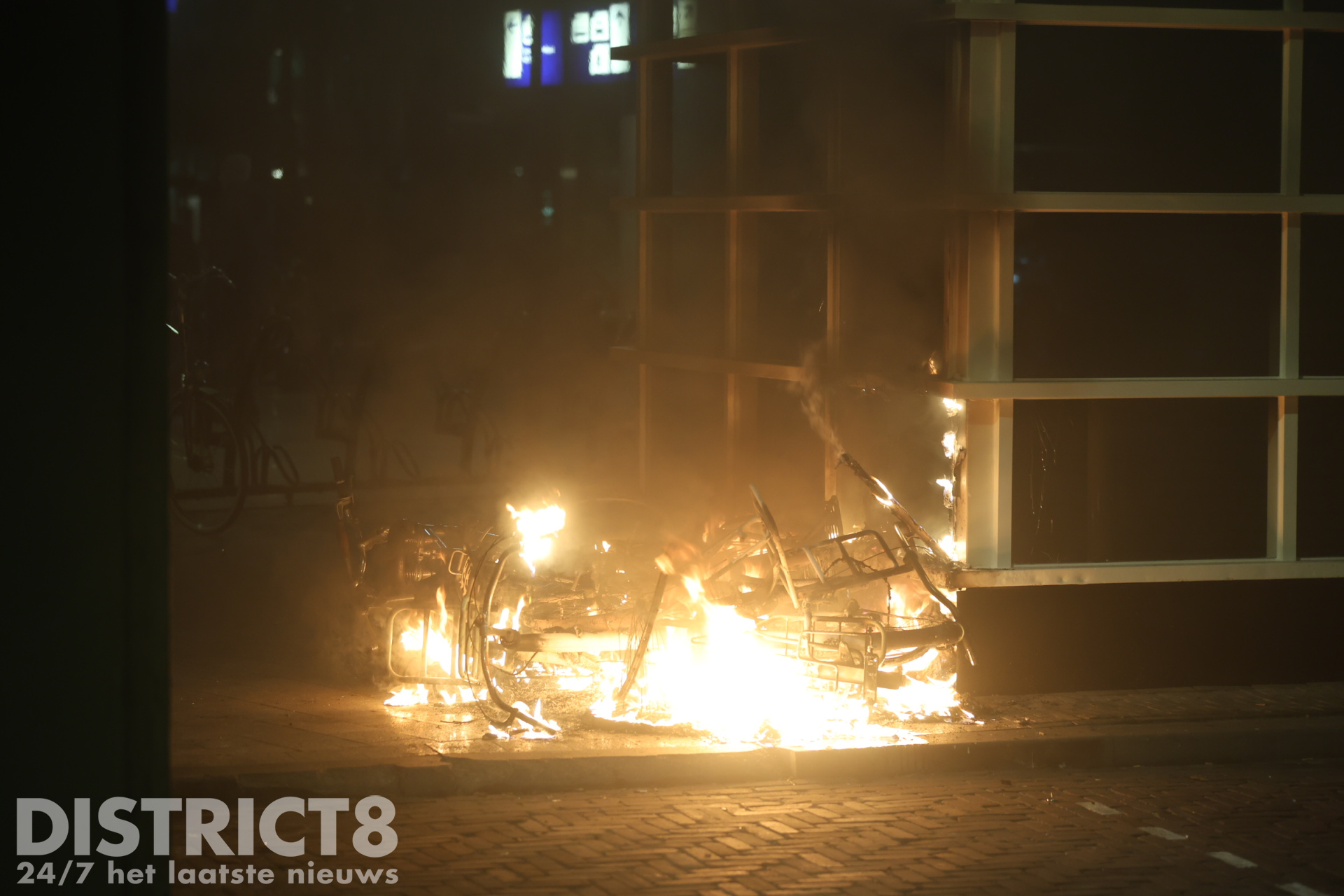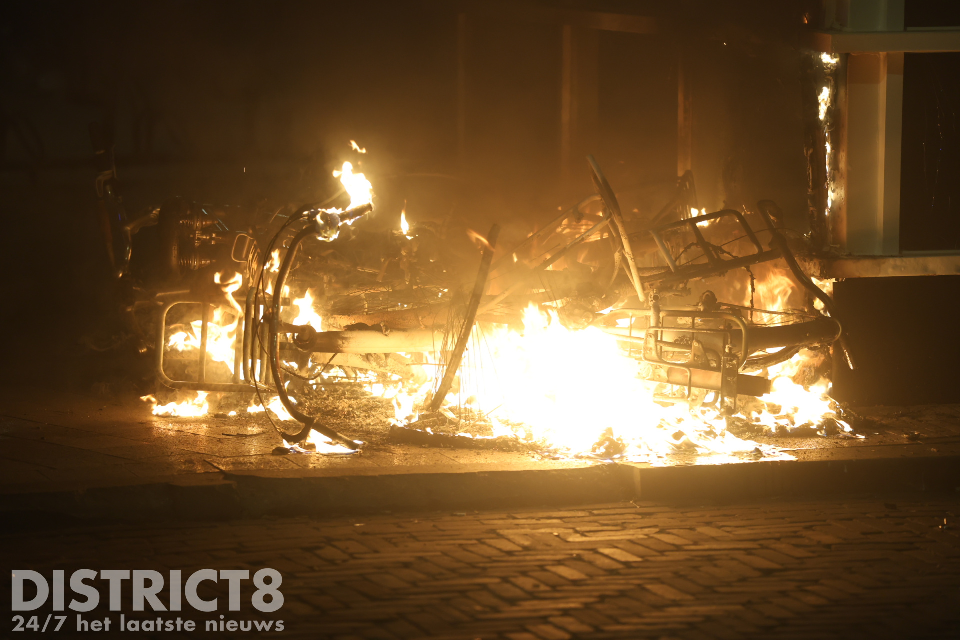De politie neemt ook deze zaak weer op in het onderzoek. De fietsen waren omgegooid en op elkaar gestapeld en in brand gestoken.