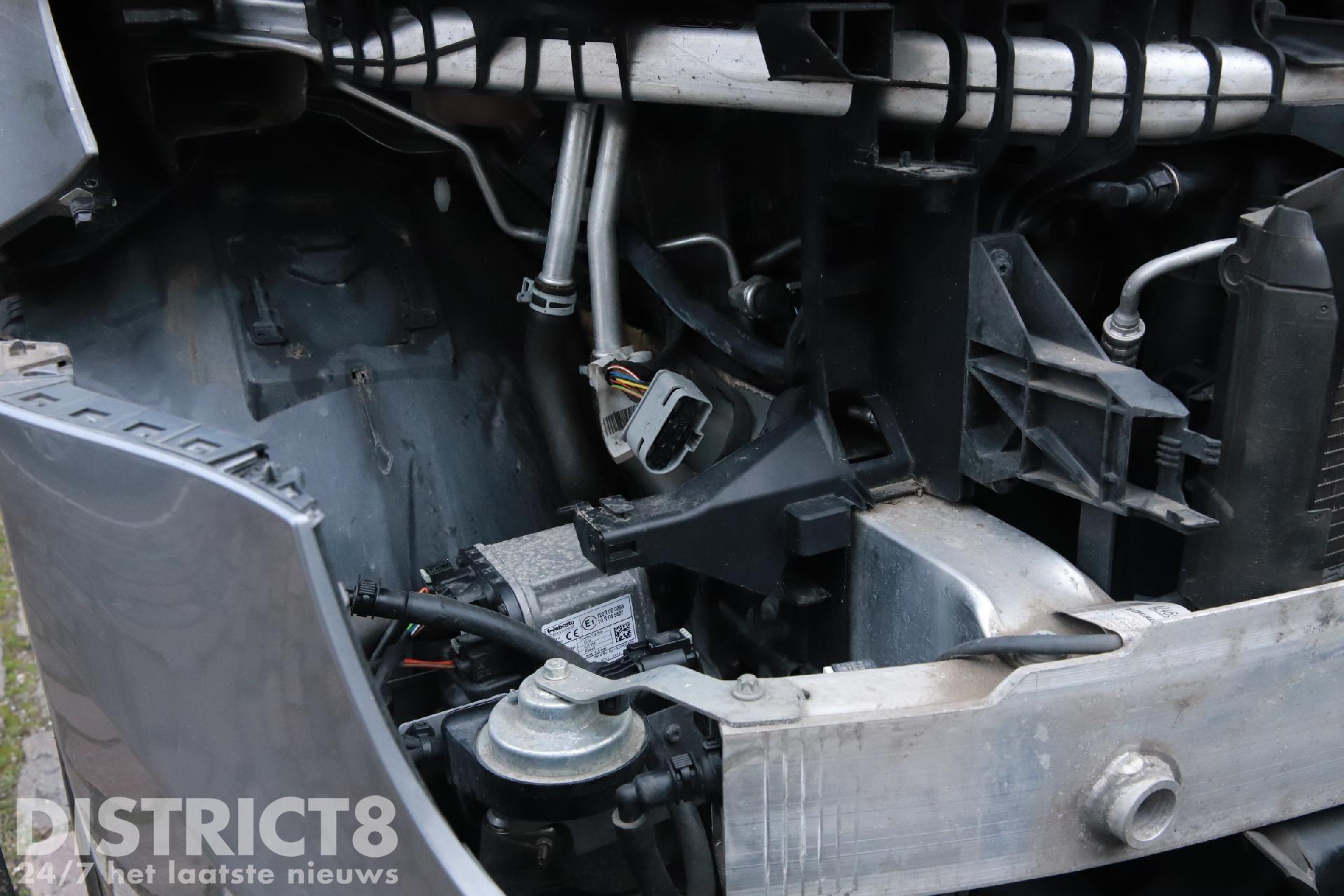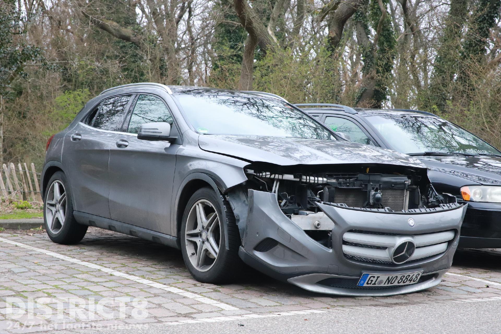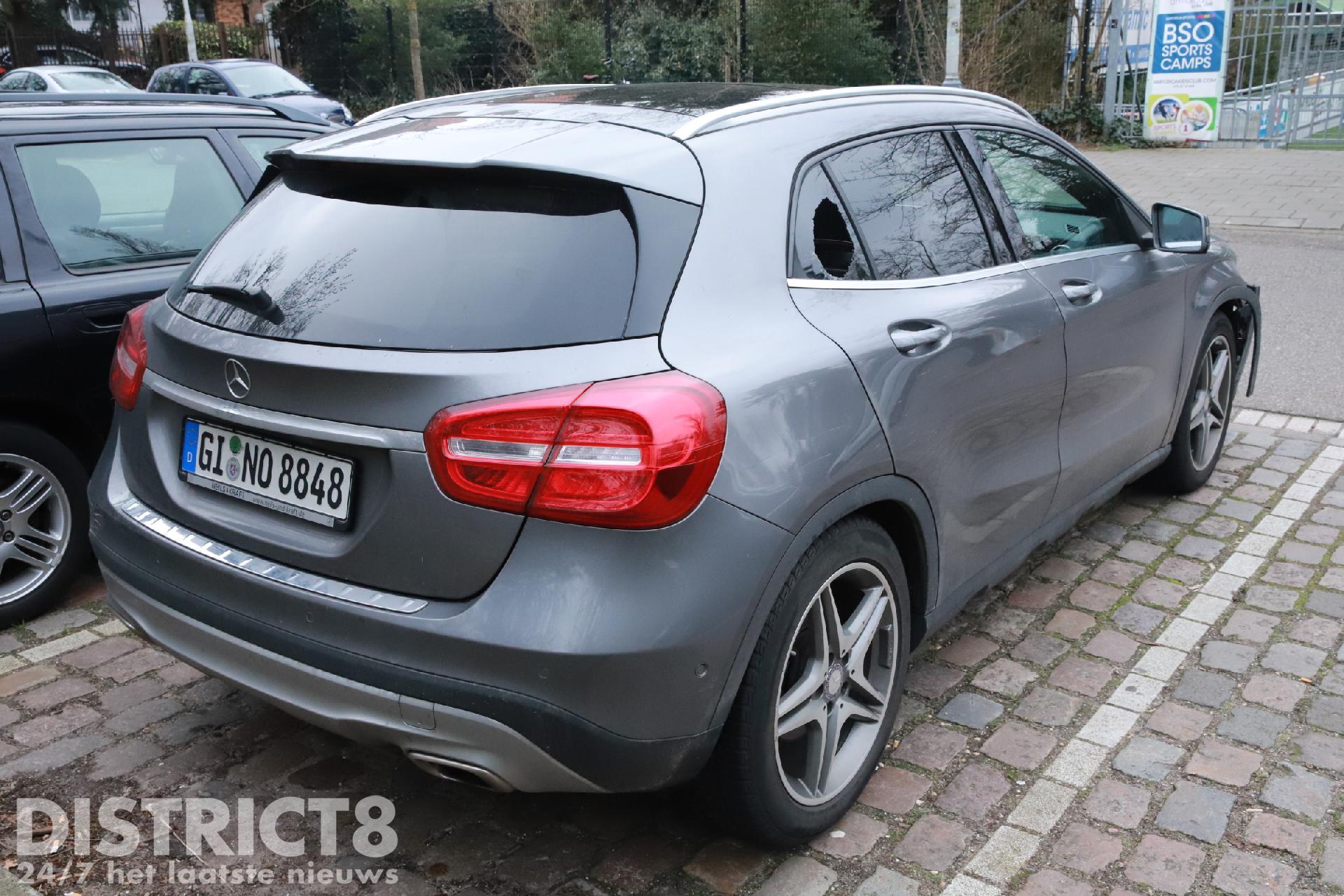 Ditmaal zijn de koplampen gestolen van een Mercedes. De dieven slaan altijd toe op dezelfde wijze. Een zijruitje wordt ingeslagen zodat ze in het voertuig kunnen. De motorkap word geopend en dan ga de volledige bumper eraf.