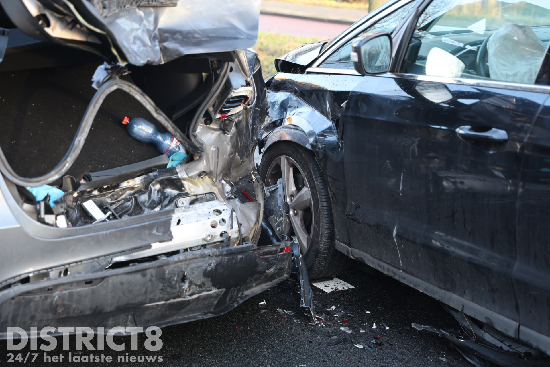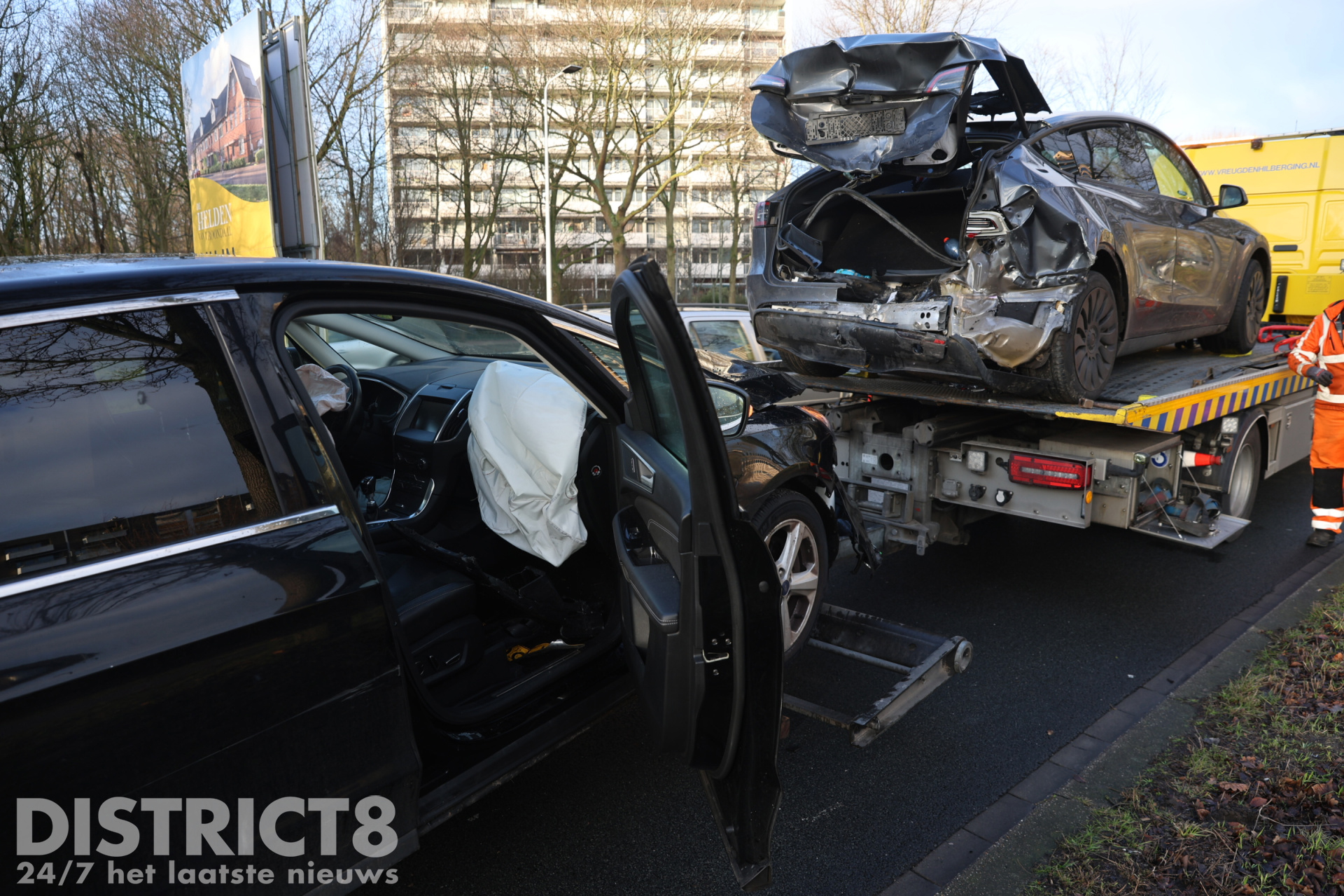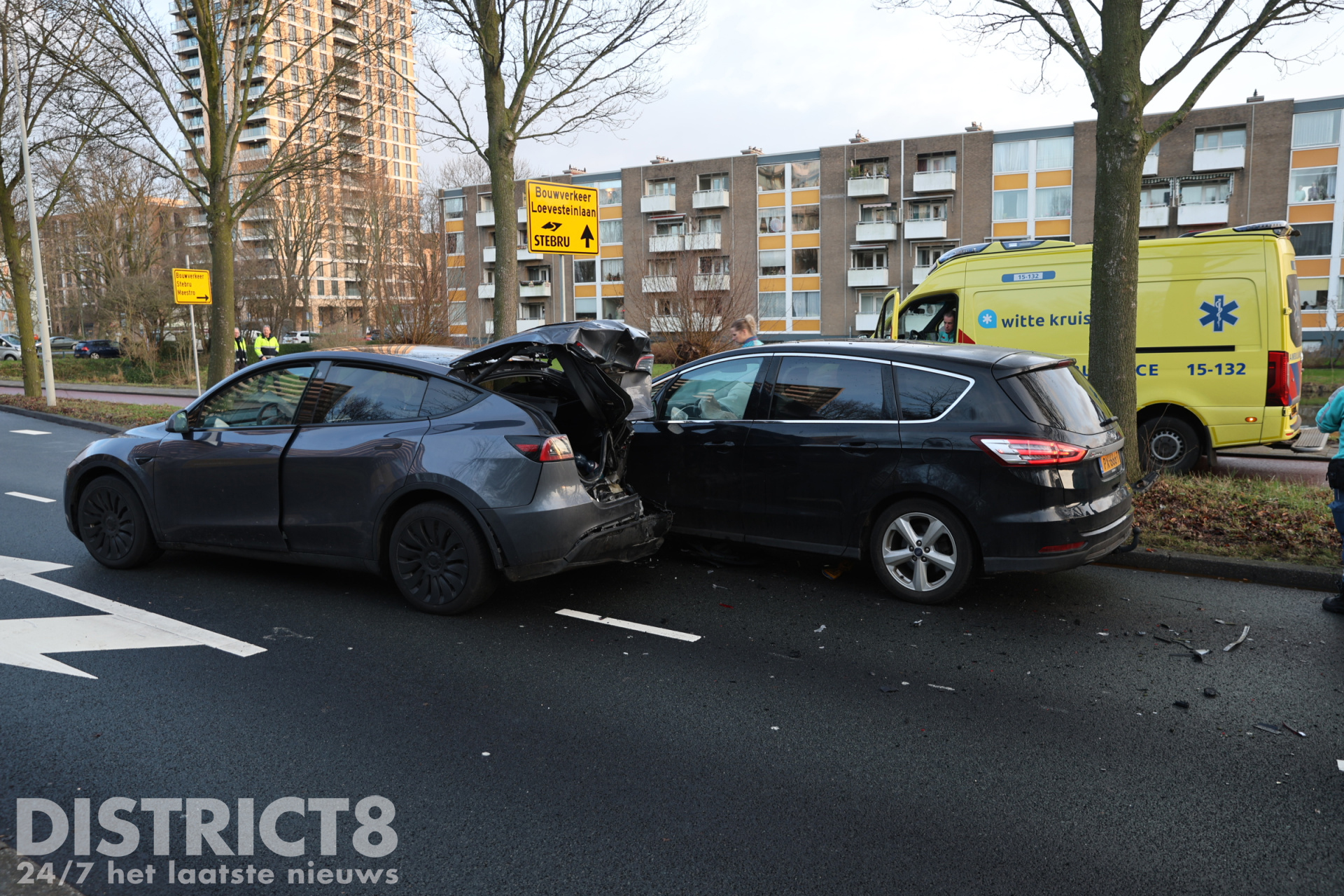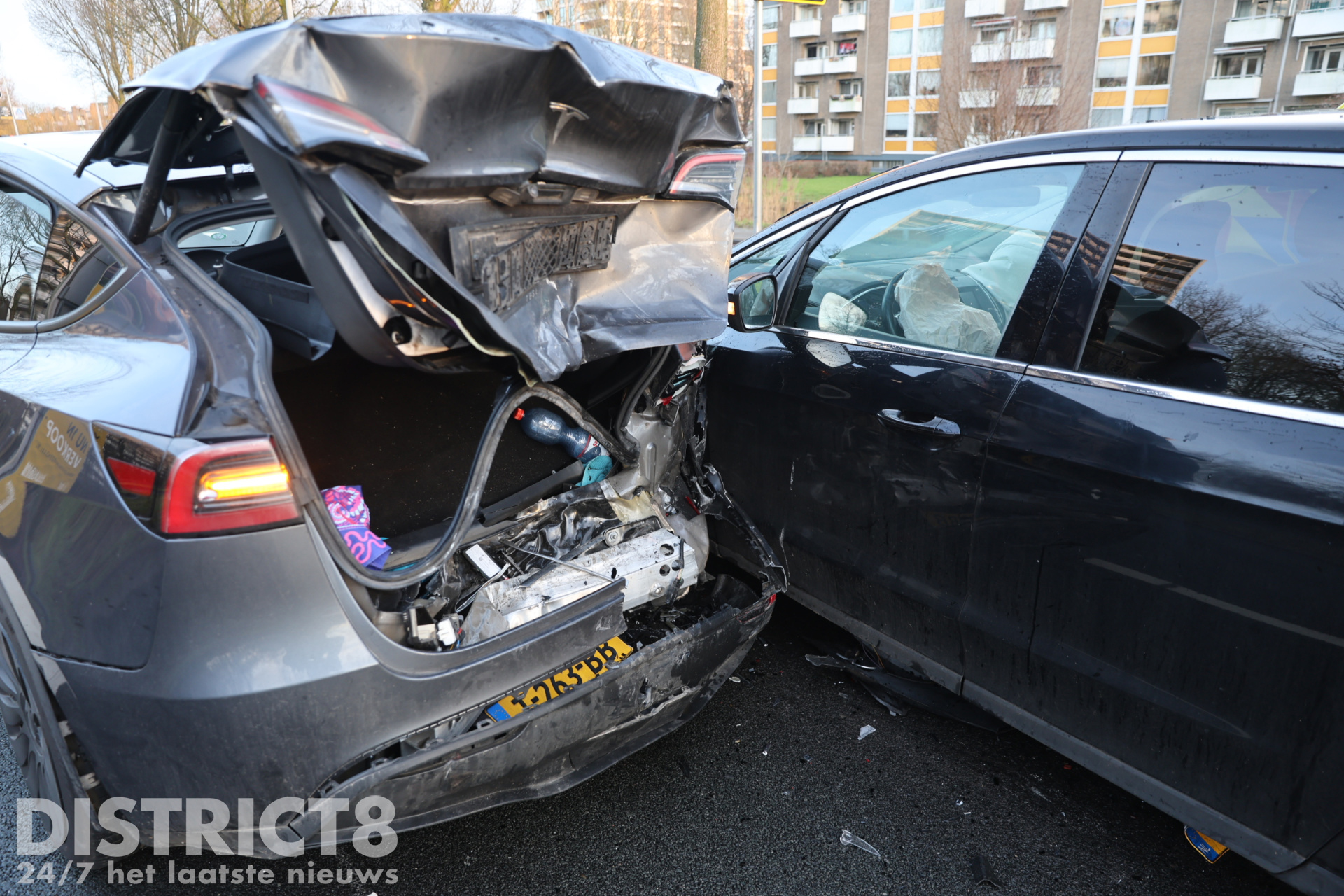 Een automobilist die vanuit de richting van de Melis Stokelaan reed, botste achterop zijn voorganger. Door de klap raakten beide voertuigen zwaar beschadigd.