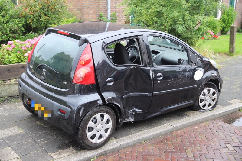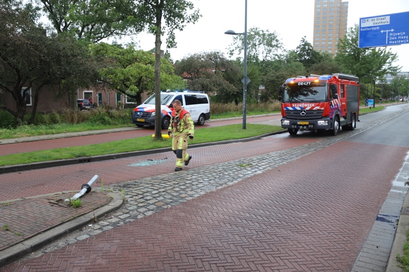 Delft – Donderdagmiddag 9 juli is er op de Ruys de Beerenbrouckstraat in Delft een auto op z’n zijkant belandt na een eenzijdig ongeval tegen een paaltje.