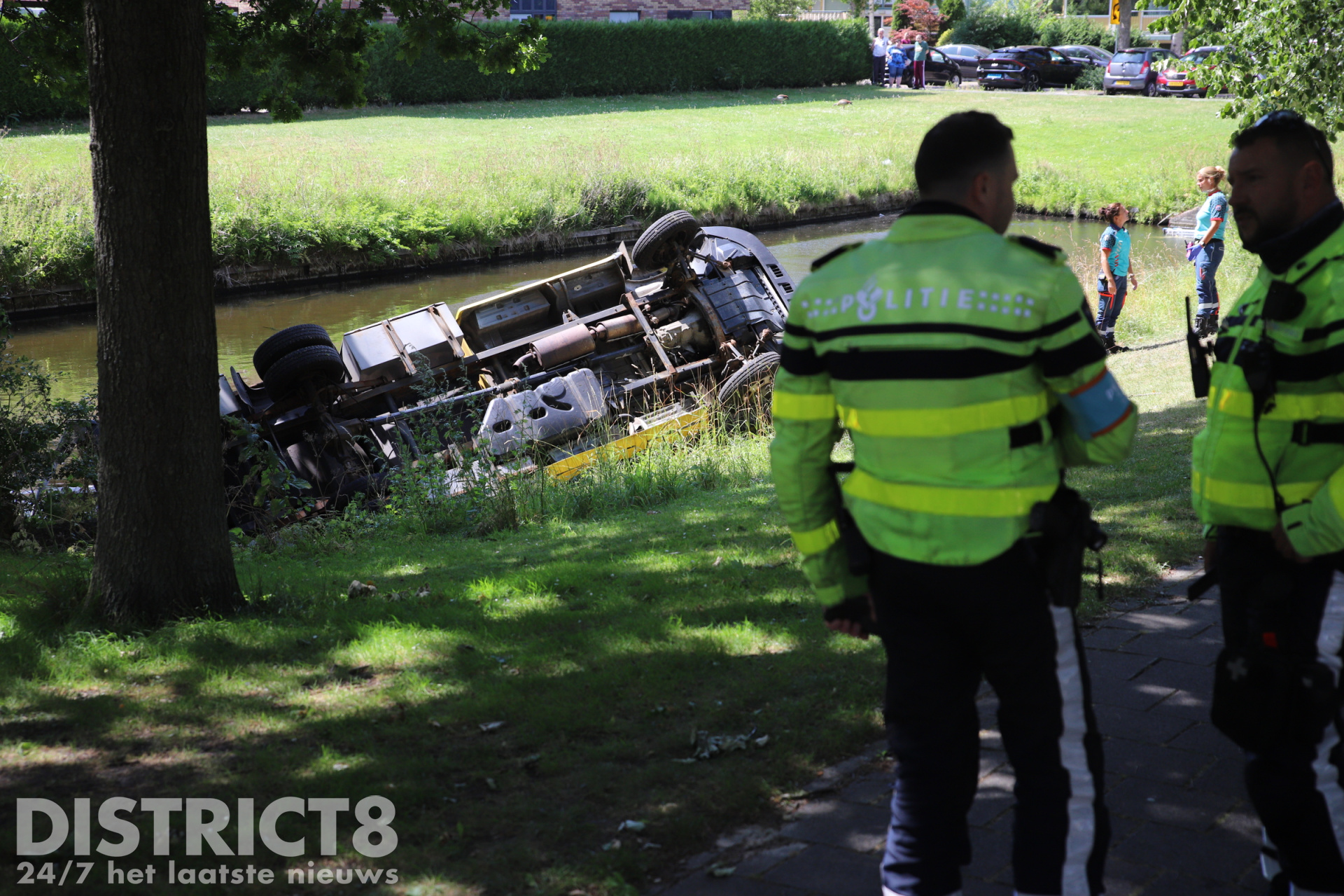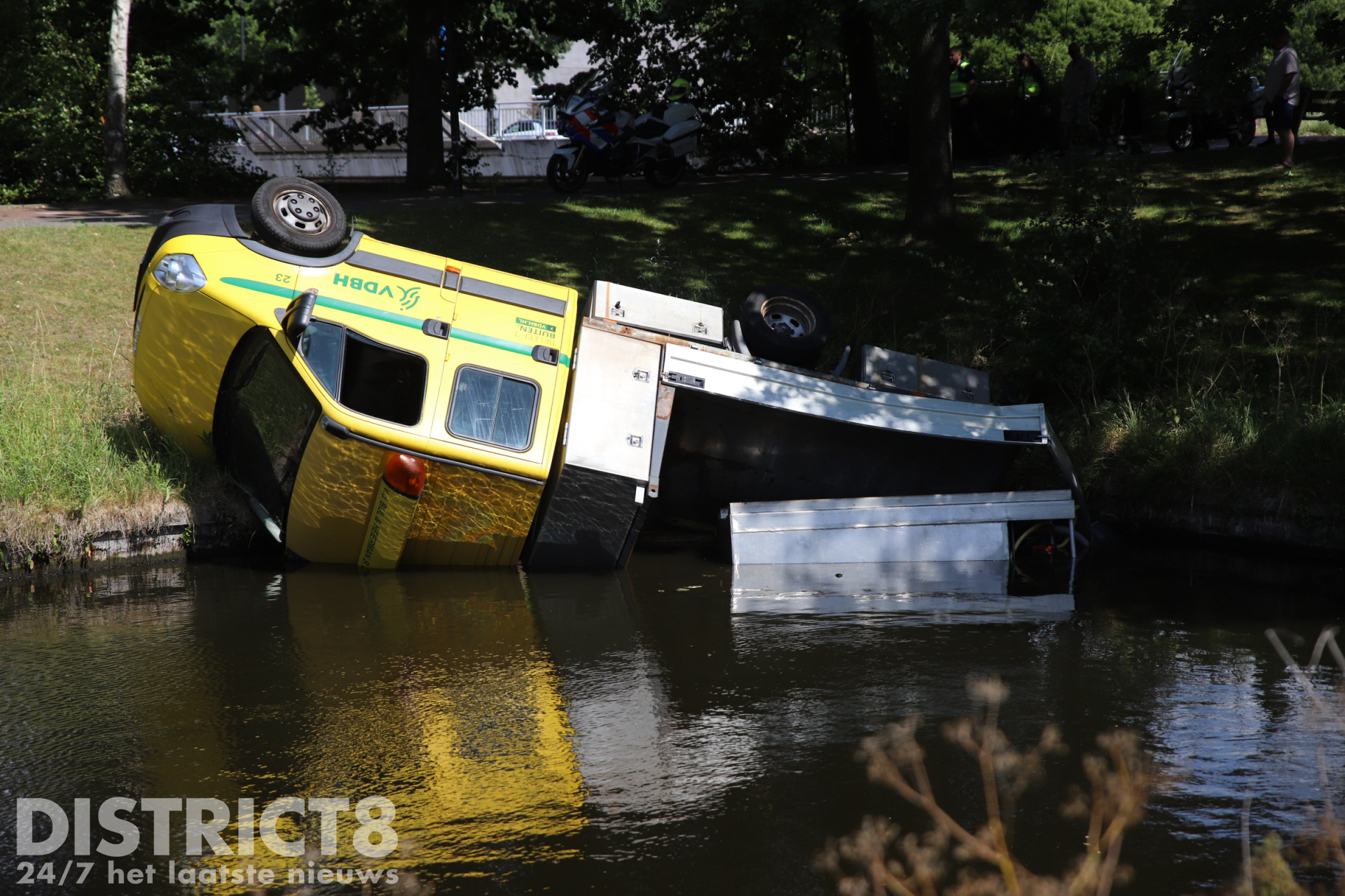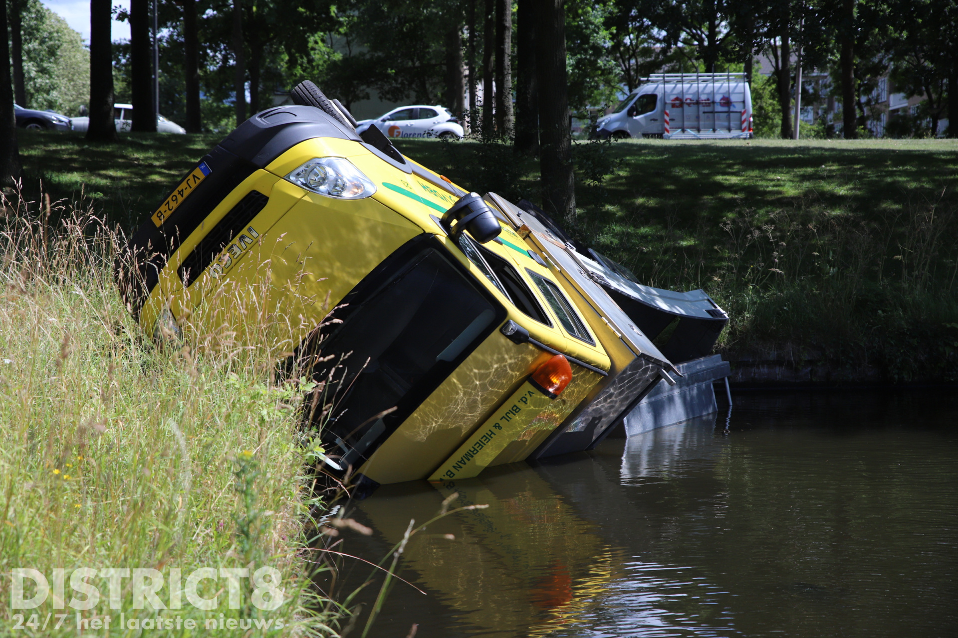 Rijswijk – Maandagmiddag is aan de Hoogkamerlaan in Rijswijk een werkauto achteruit het water ingerold en ondersteboven tot stilstand gekomen. Het voertuig begon spontaan te rollen tijdens het vullen van de watertank.