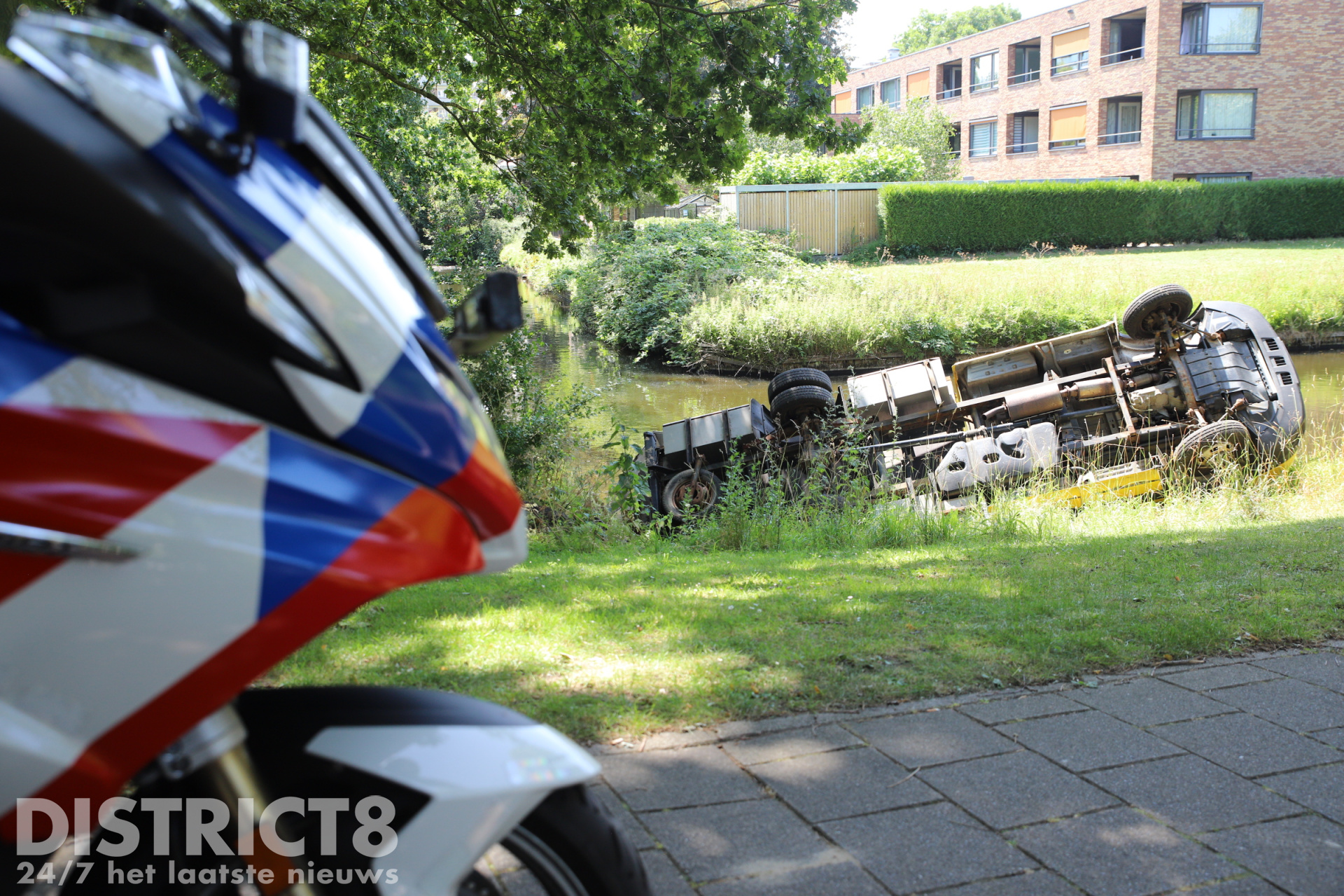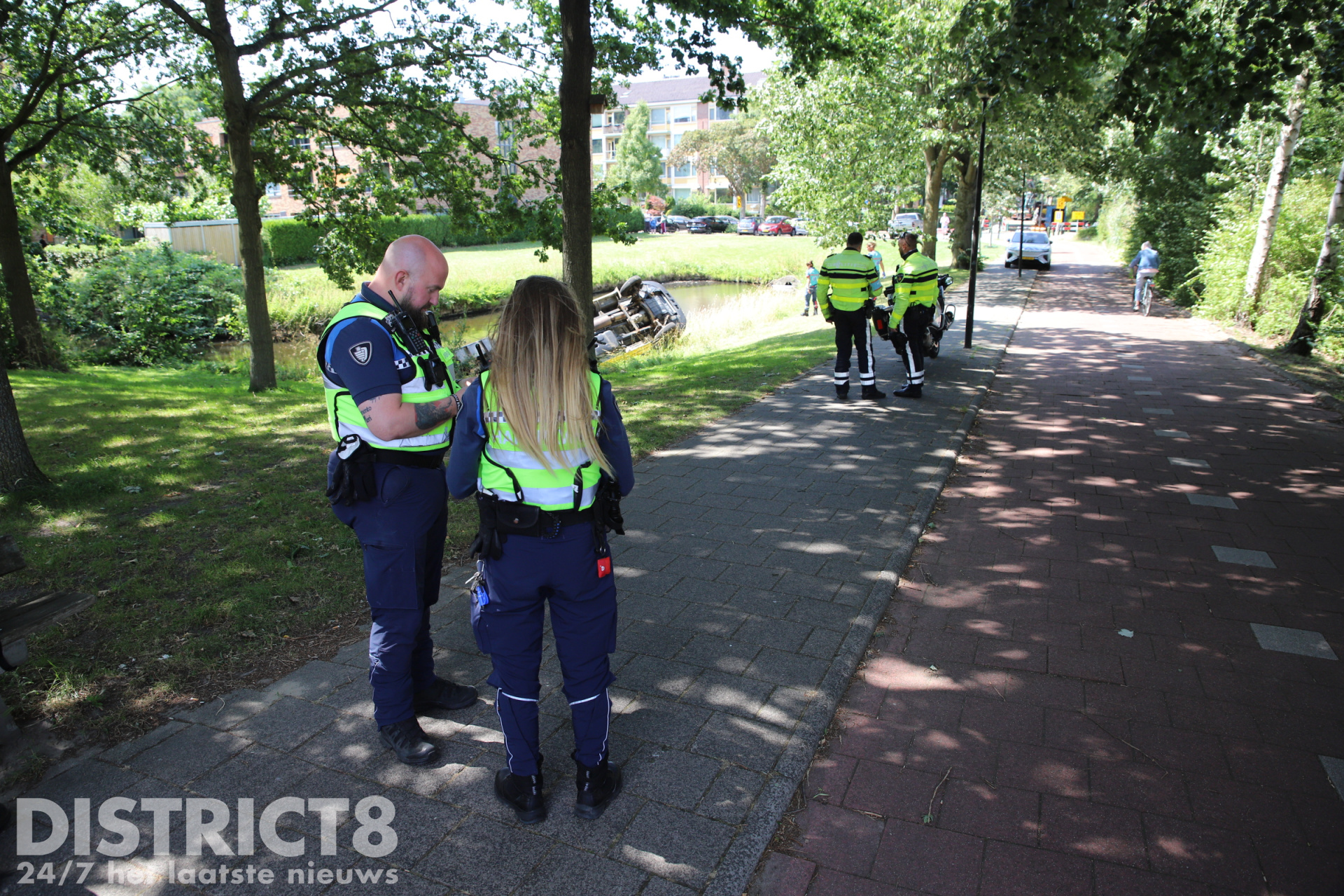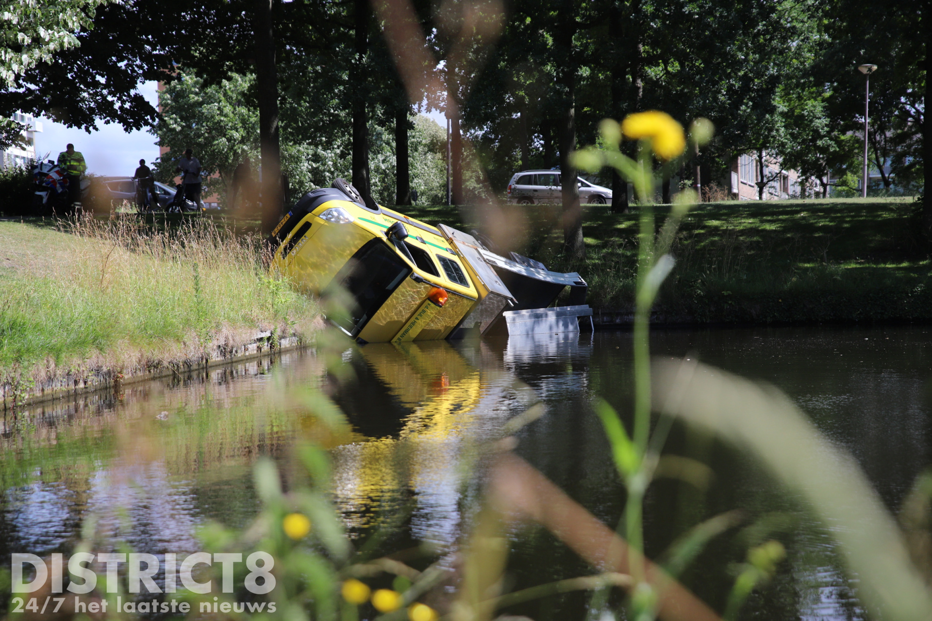 Rijswijk – Maandagmiddag is aan de Hoogkamerlaan in Rijswijk een werkauto achteruit het water ingerold en ondersteboven tot stilstand gekomen. Het voertuig begon spontaan te rollen tijdens het vullen van de watertank.