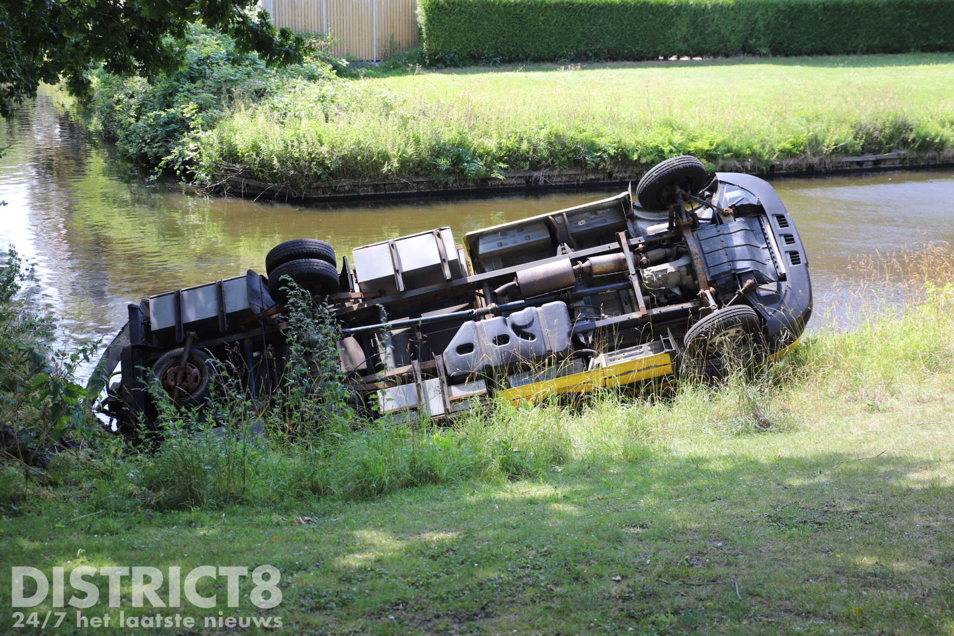 Volgens de bestuurder stond de handrem erop, maar begon de auto desondanks achteruit te rijden. Hij probeerde het voertuig nog te stoppen, maar slaagde daar niet in. De auto rolde van de weg, belandde in het water en sloeg daarbij om.