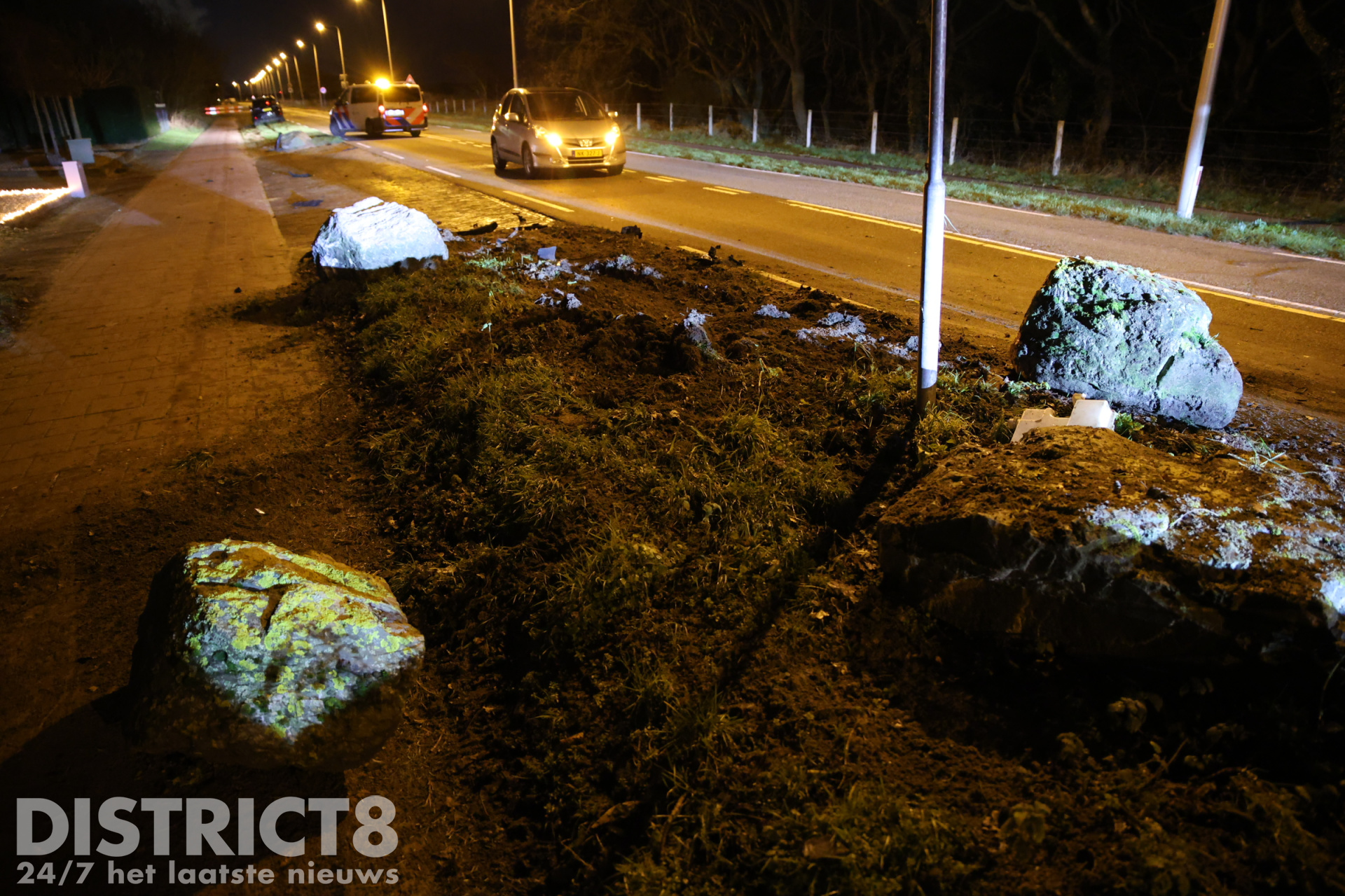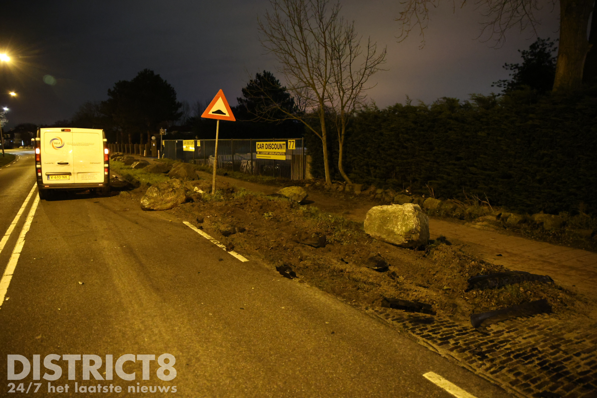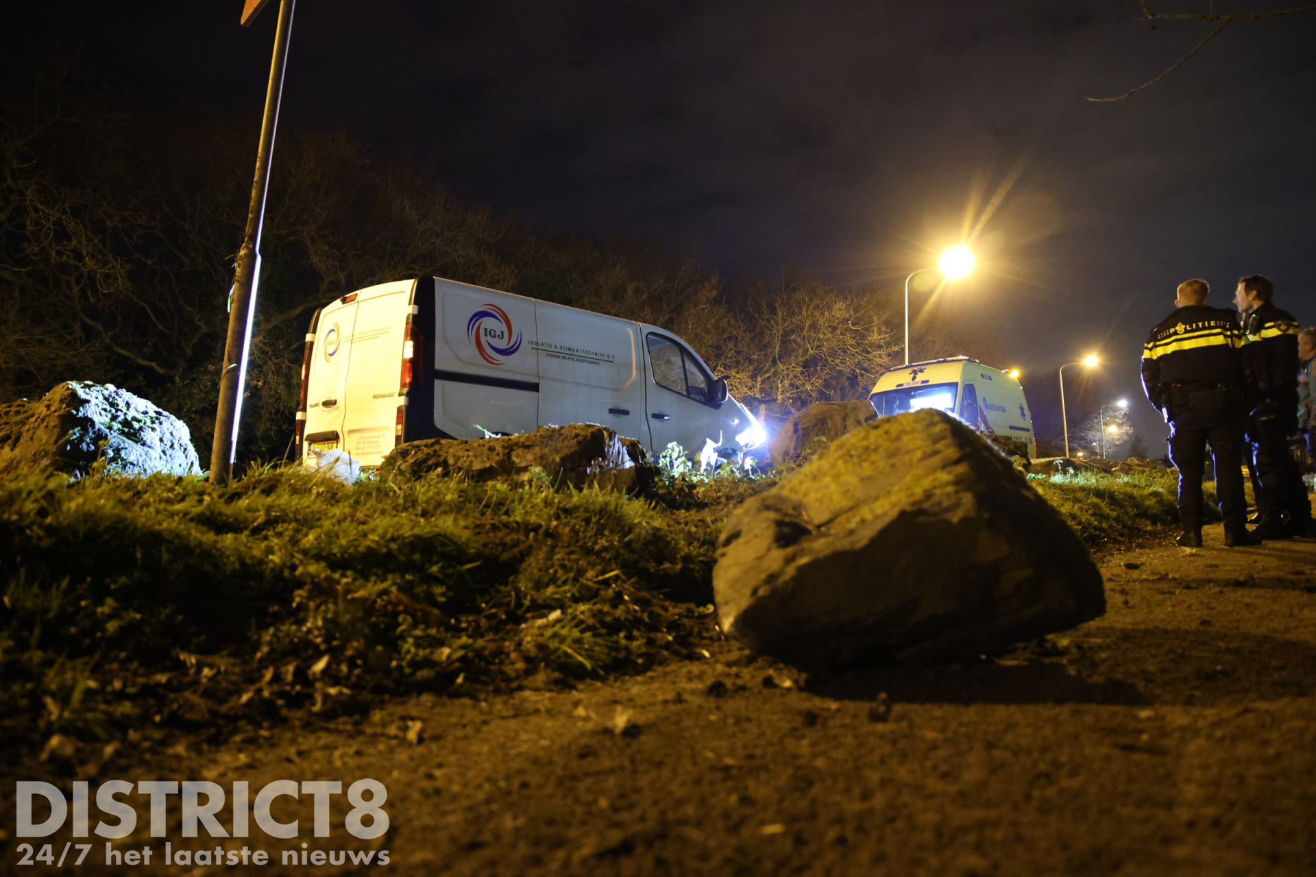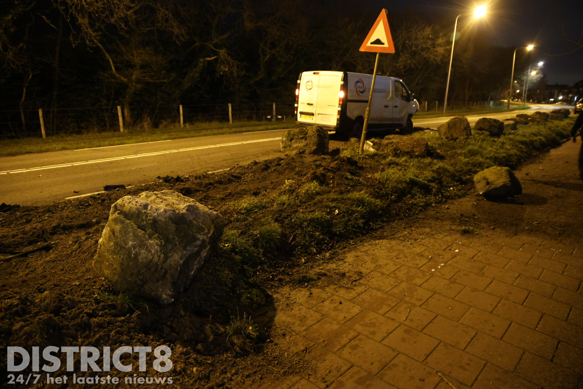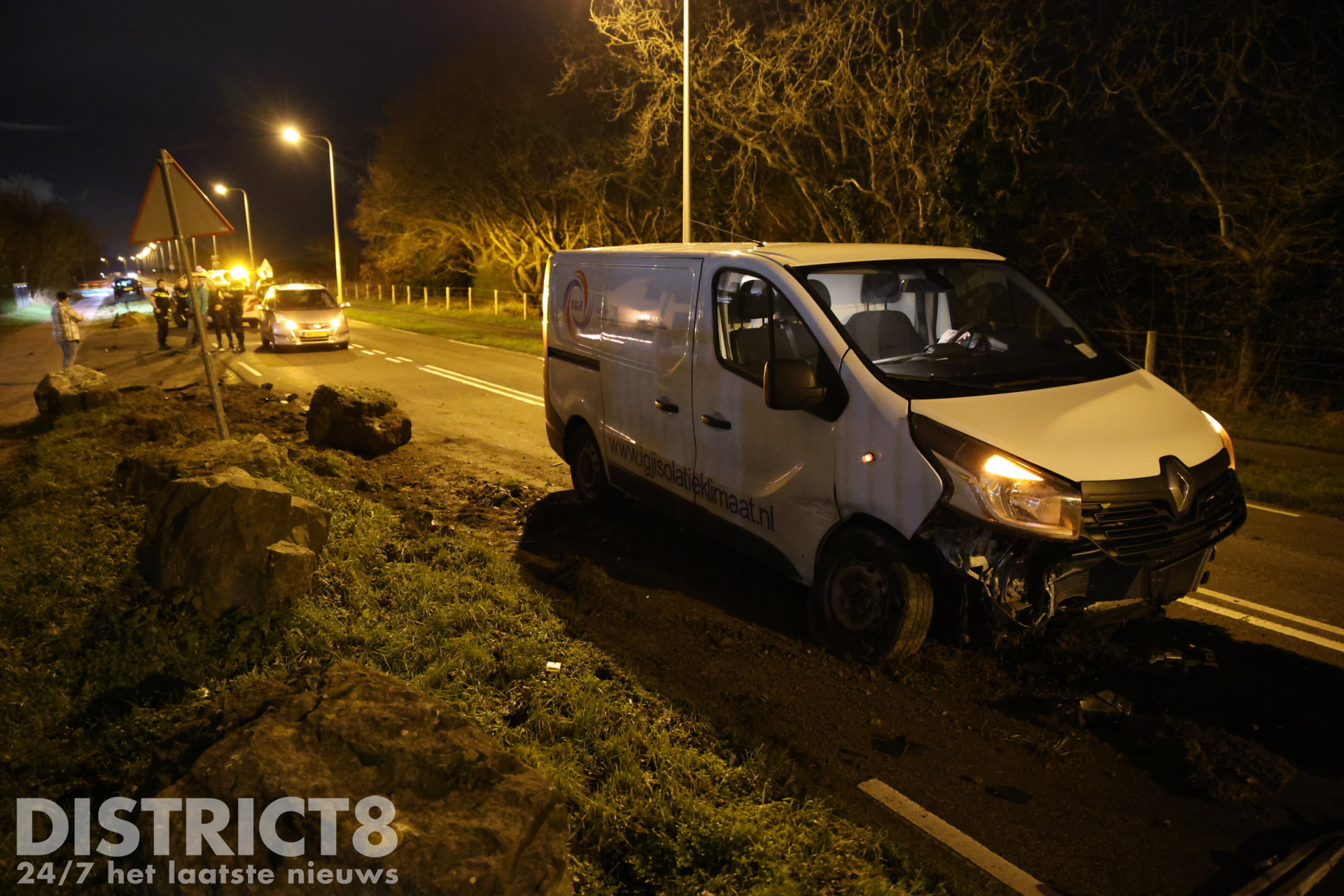 De man schoot door de manoeuvre het fietspad op en ramde enkele grote stenen blokken en keien die aldaar in de berm liggen. De werkbus werd gelanceerd en kwam weer op de rijbaan terecht. Enkele grote keien belandden op het naastgelegen fietspad en op de rijbaan.