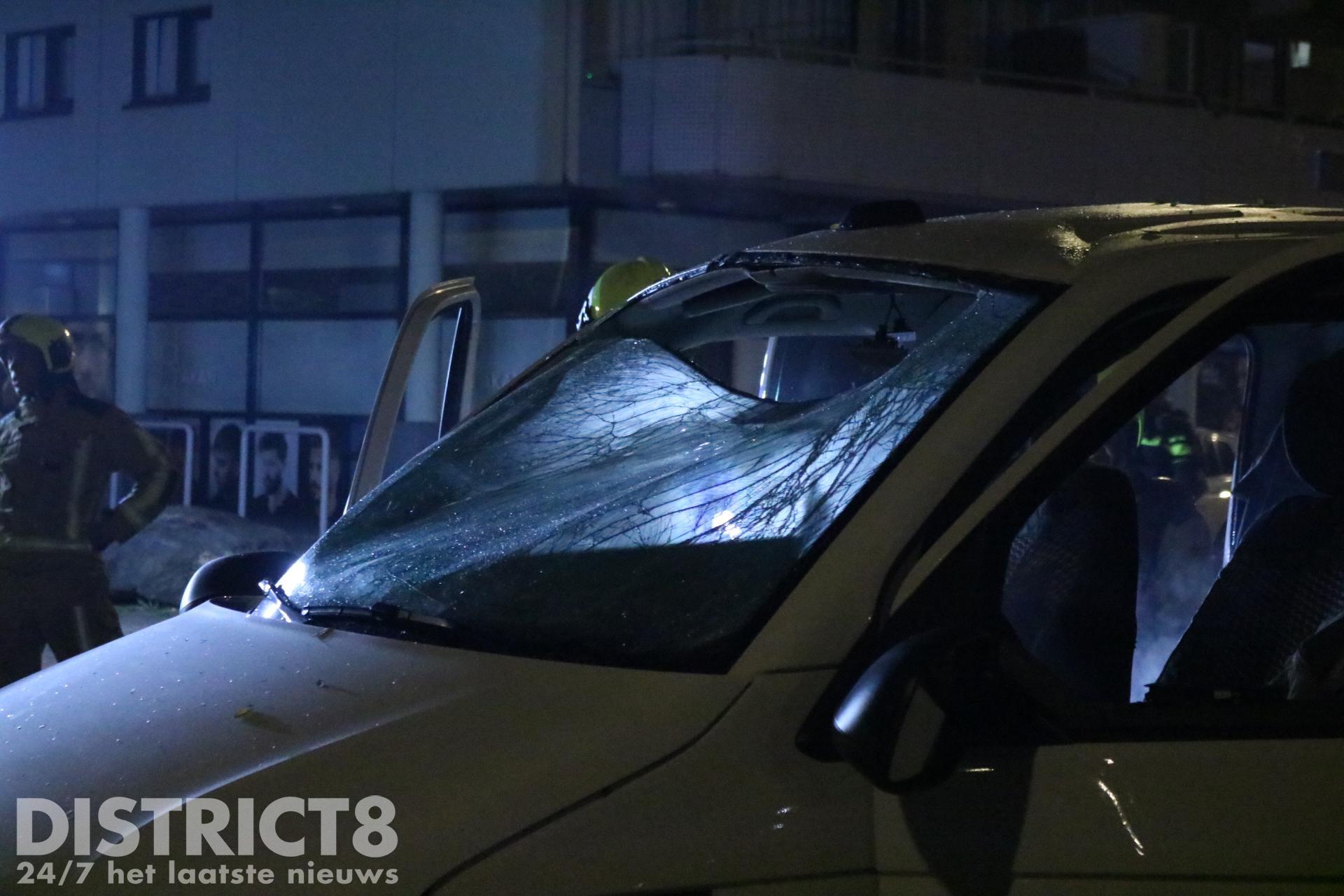 De werkbus was niet te redden en liep van binnen flinke schade op. Door het vuurwerk was ook de voorruit van de bus flink beschadigd geraakt.