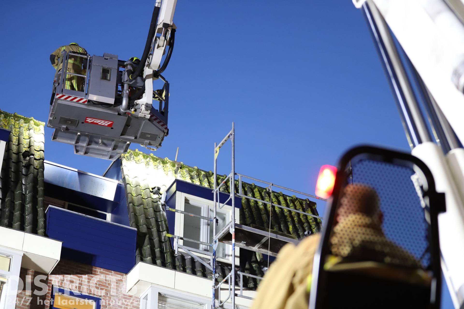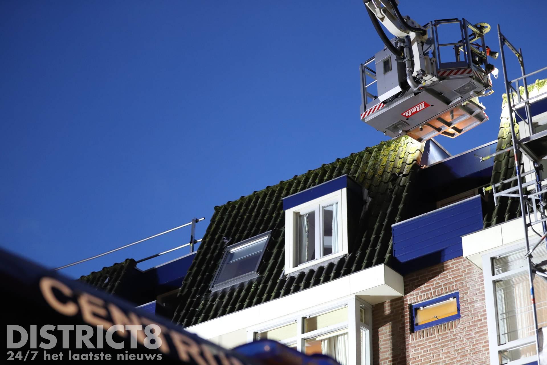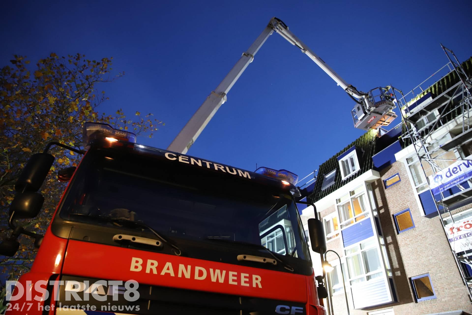 Hoogstwaarschijnlijk zijn de werklui die op het appartementencomplex bezig zijn deze vanmiddag vergeten uit te zetten. De brandweer is met de hoogwerker het dak op gegaan om de brander uit te zetten.
