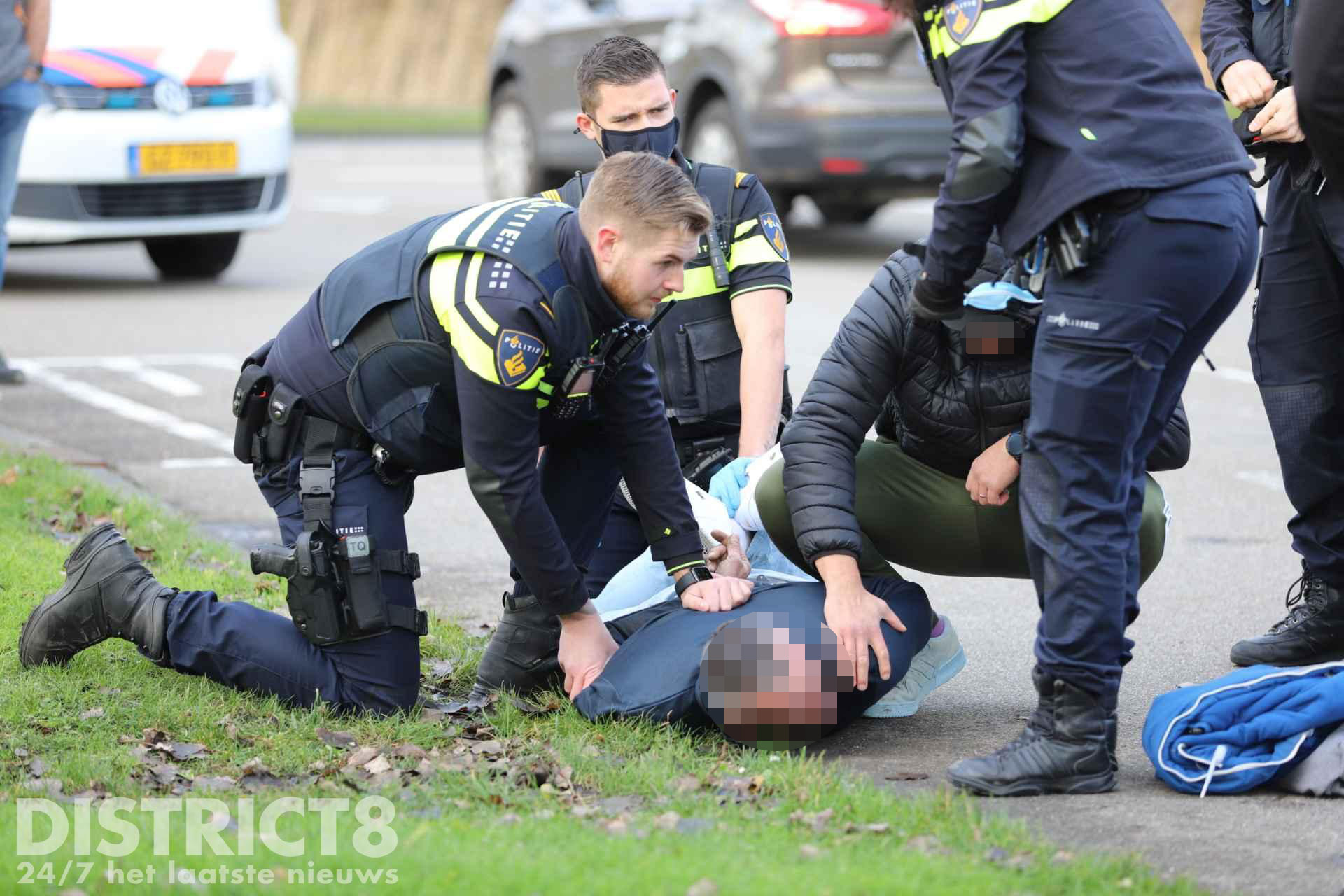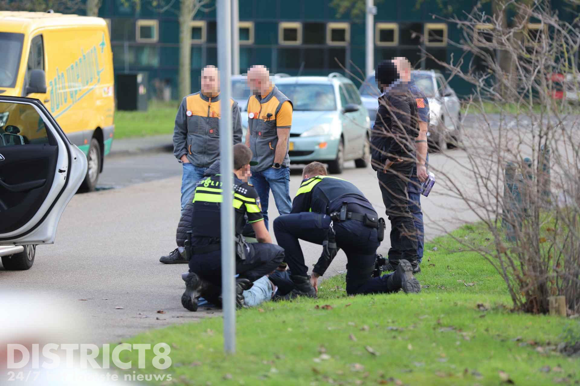 Een toevallig passerende agent in vrije tijd zag de verdachte en beveiliging rennen en aarzelde geen seconden. Hij lichtte de meldkamer in en heeft de beveiligers geholpen.