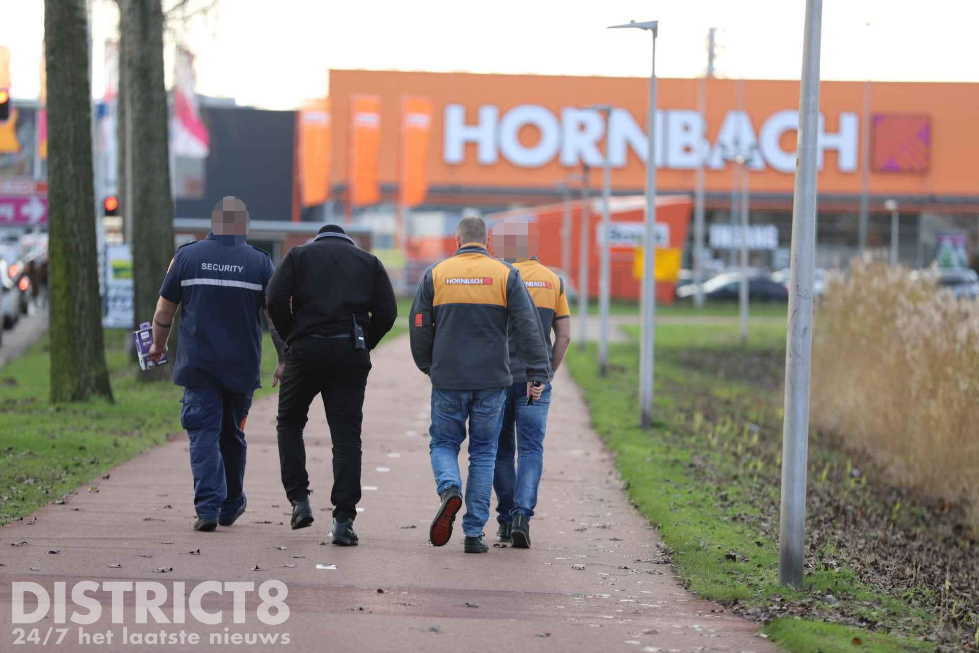 Den Haag – Een persoon is vanmiddag aangehouden nadat hij goederen uit de naastgelegen groothandel Hornbach had meegenomen.