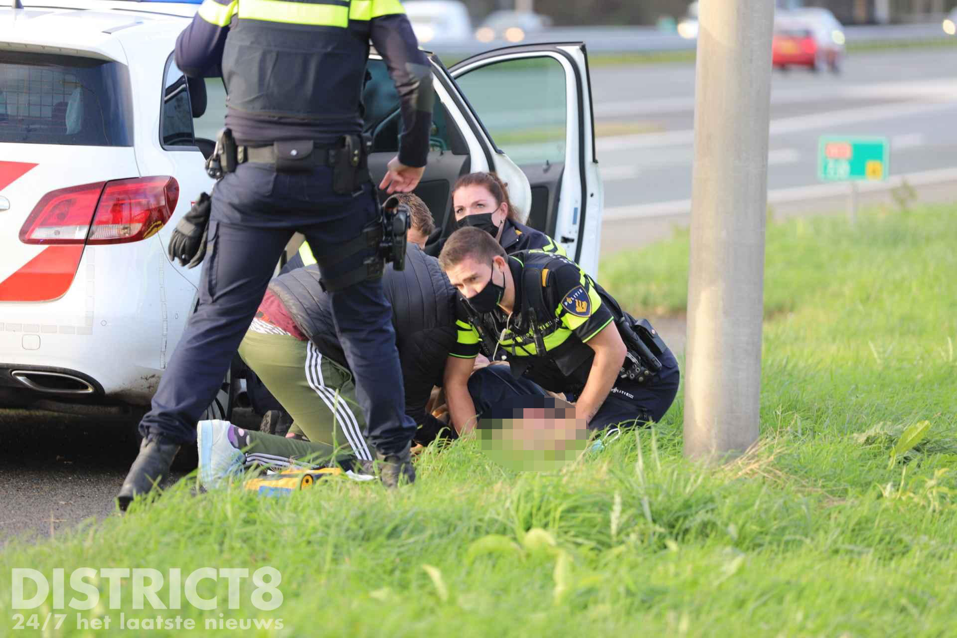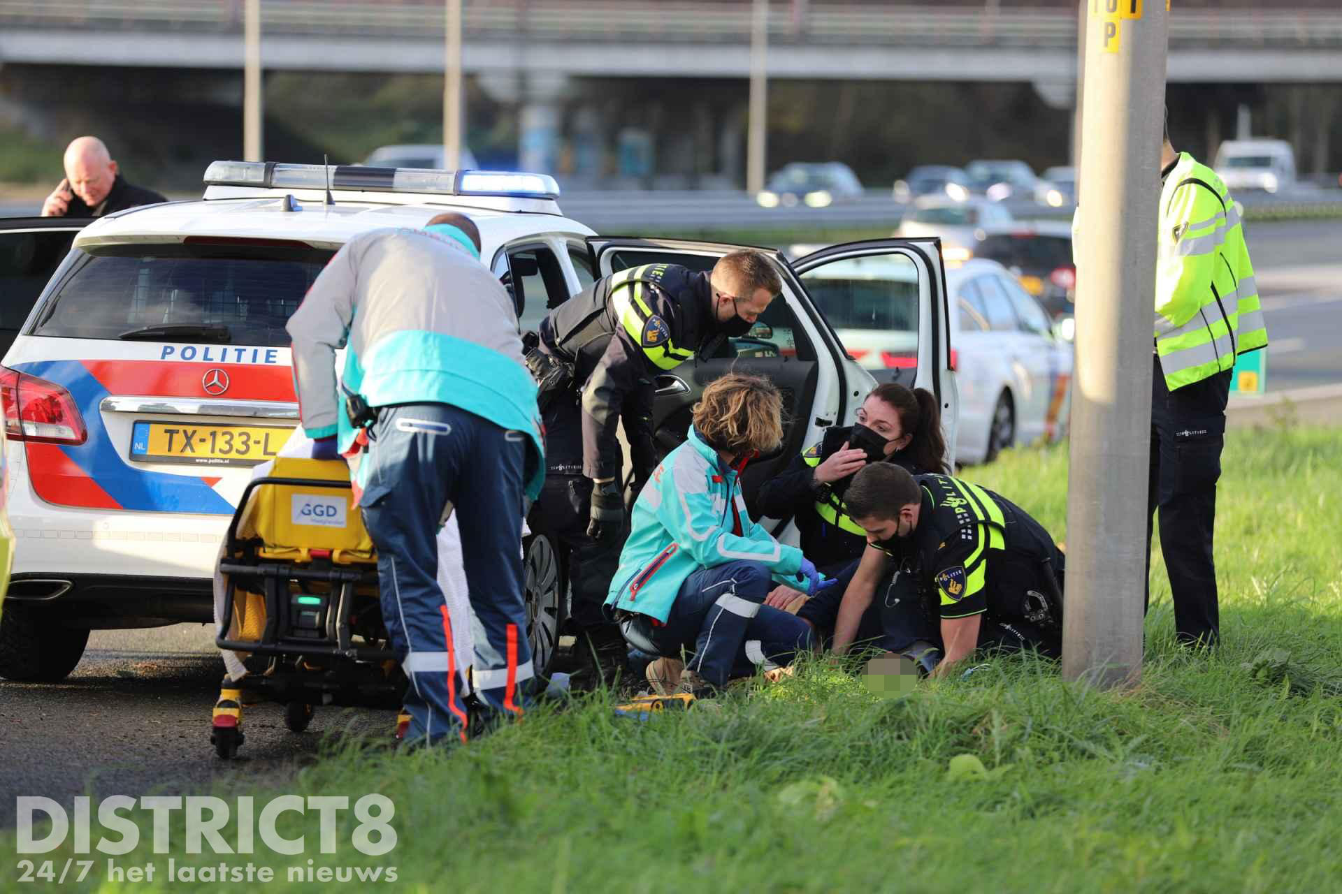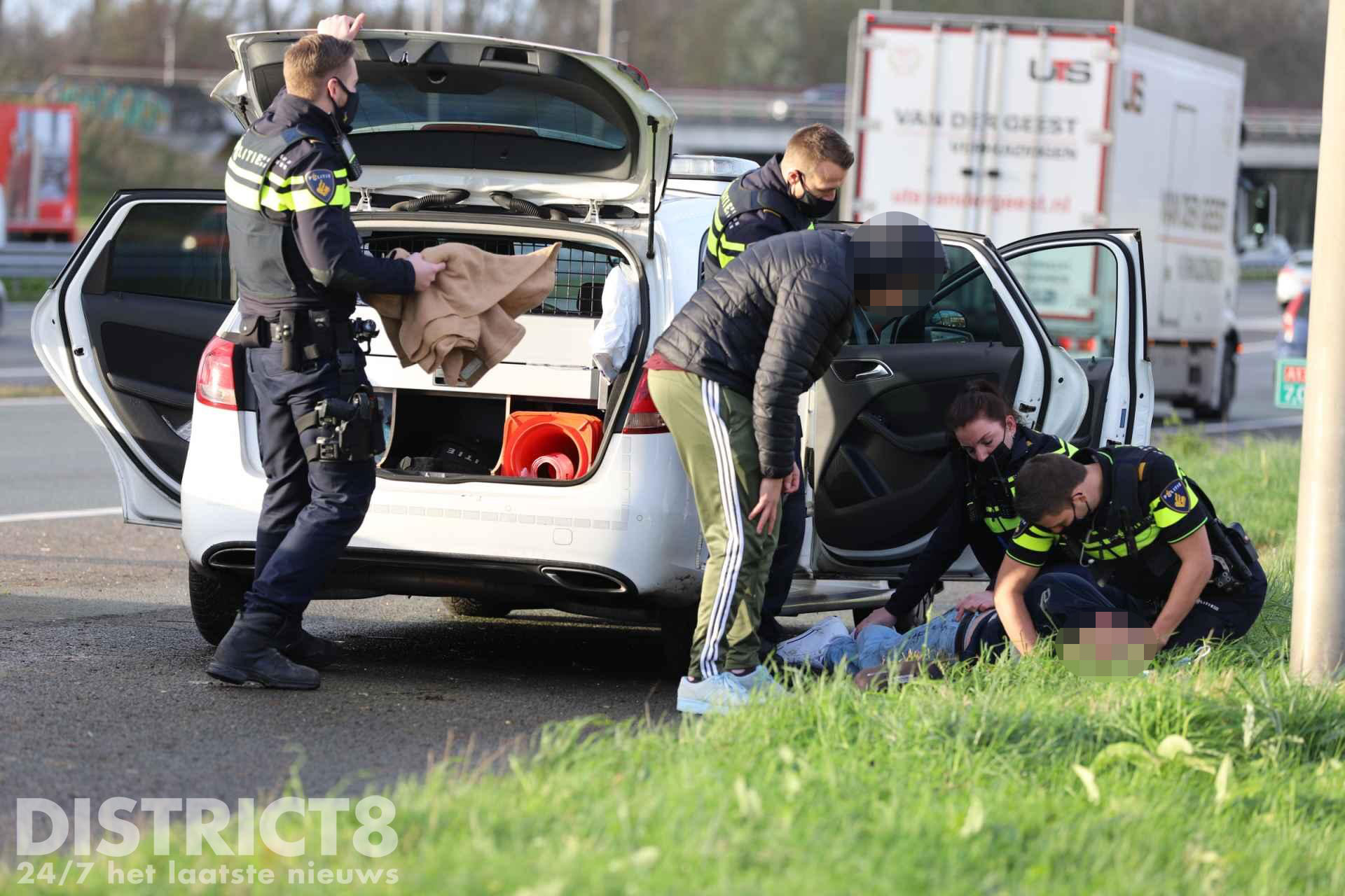 Op de oprit van de A13 bij Delft-Noord raakte de verdachte onwel. De agenten hebben de verdachte uit de auto gehaald en op de grond neergelegd. Nadat het duidelijk werd dat de man nergens op reageerde werd er een ambulance ingeschakeld.