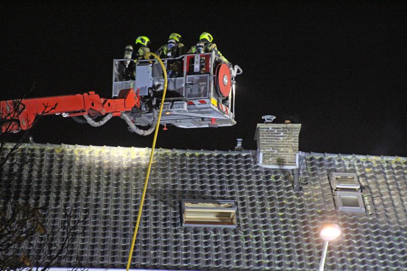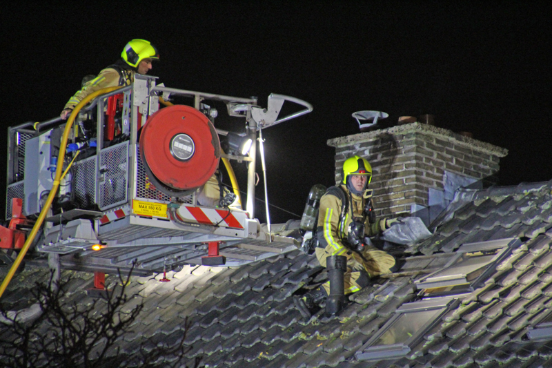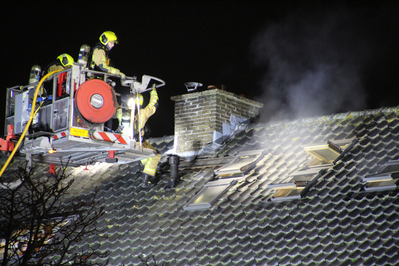 Meerdere brandweer voertuigen uit de regio kwamen ter plaatse. Er werden twee hoogwerkers ingezet om onder andere dakpannen weg te halen.