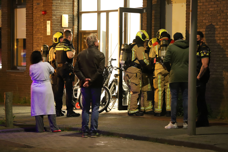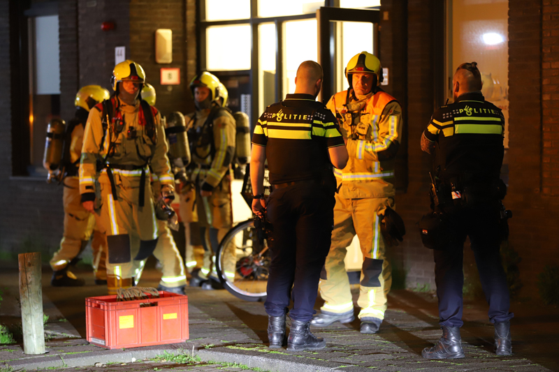 Enkele bewoners van het portiek roken de brand en gingen naar buiten. De bewoners die in de woningen bleven mochten daar blijven.