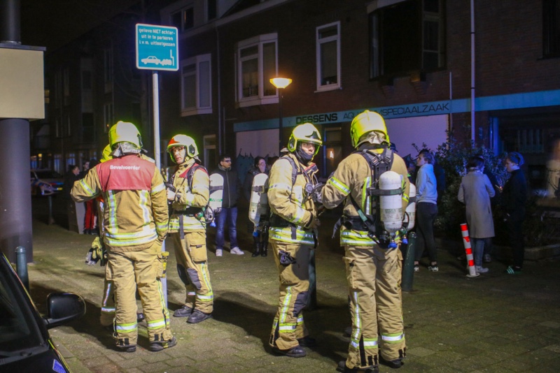 Ze moesten buiten wachten tot de brandweer klaar was. Het brandje was snel onder controle, de politie heeft de omgeving van de lift afgezet voor nader onderzoek.