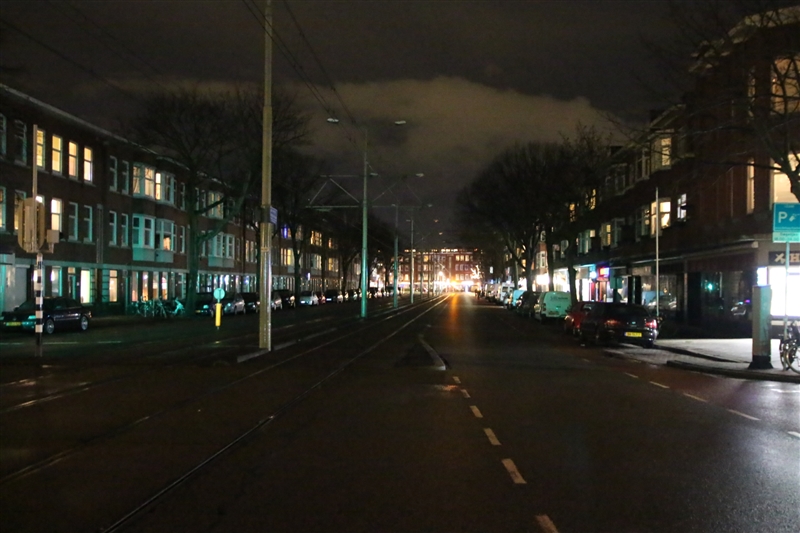 Ook de straatlantaarns waren tijdens dit spoed onderhoud uitgeschakeld.