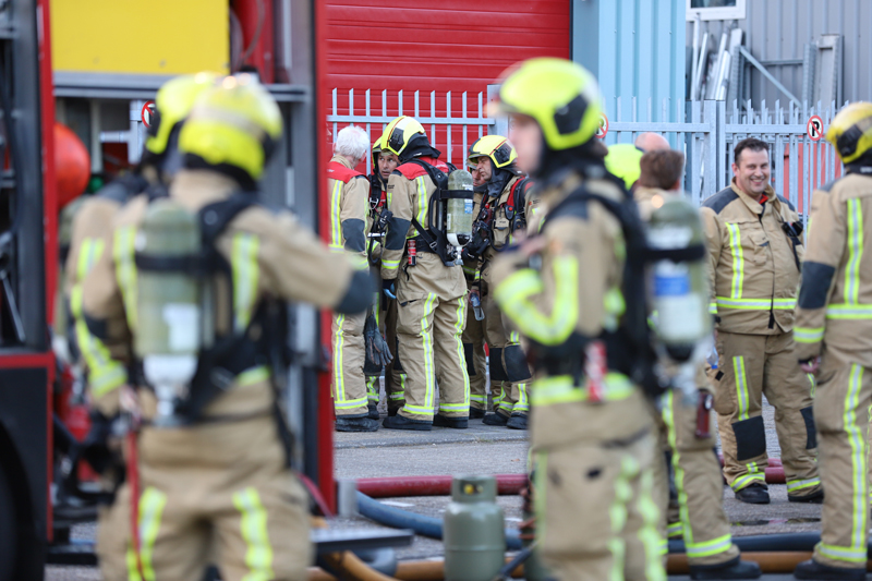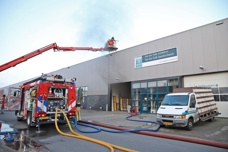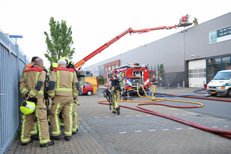 De brand, die woedde in een spuitcabine in het bedrijfspand, was korte tijd uitslaand. Omdat niet direct duidelijk was waar de brand woedde schaalde de brandweer al snel op naar het sein ‘Zeer grote brand’ om genoeg personeel en materiaal ter plaatse te krijgen.