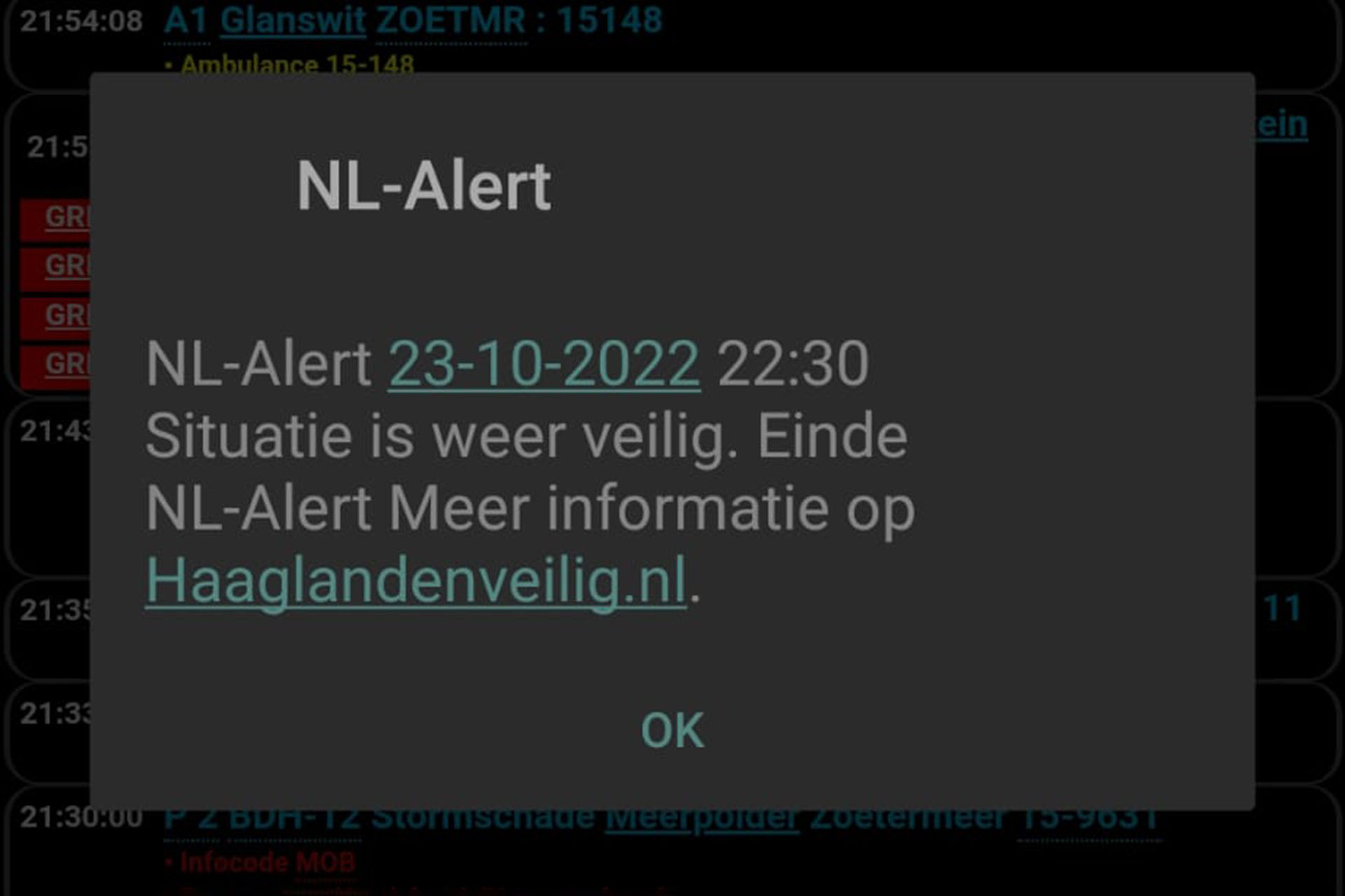 Omstreeks 22:30 uur werd de NL-Alert weer ingetrokken. De situatie was weer veilig.