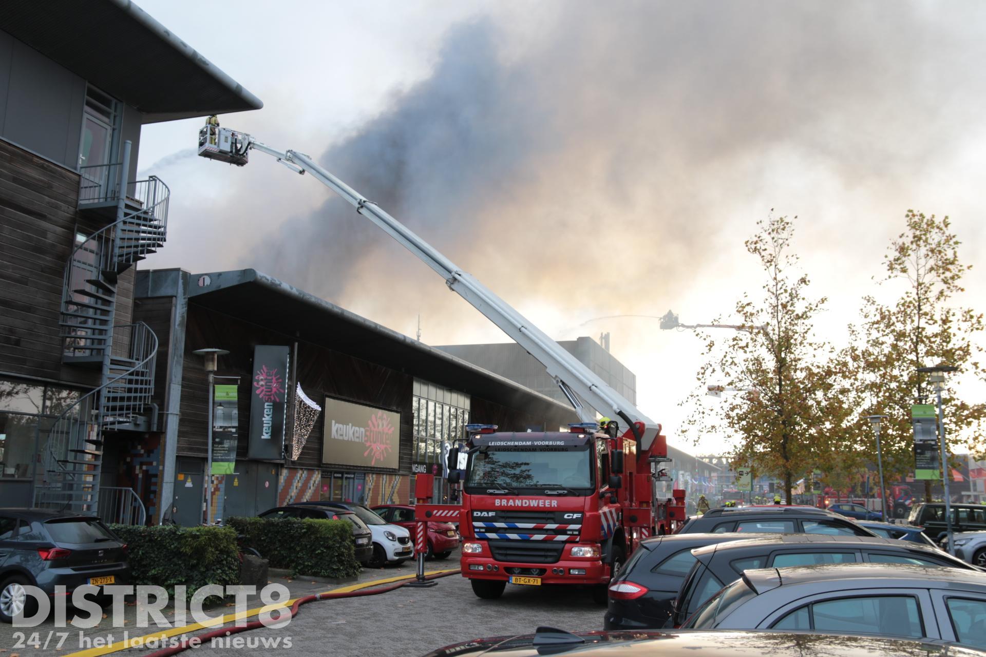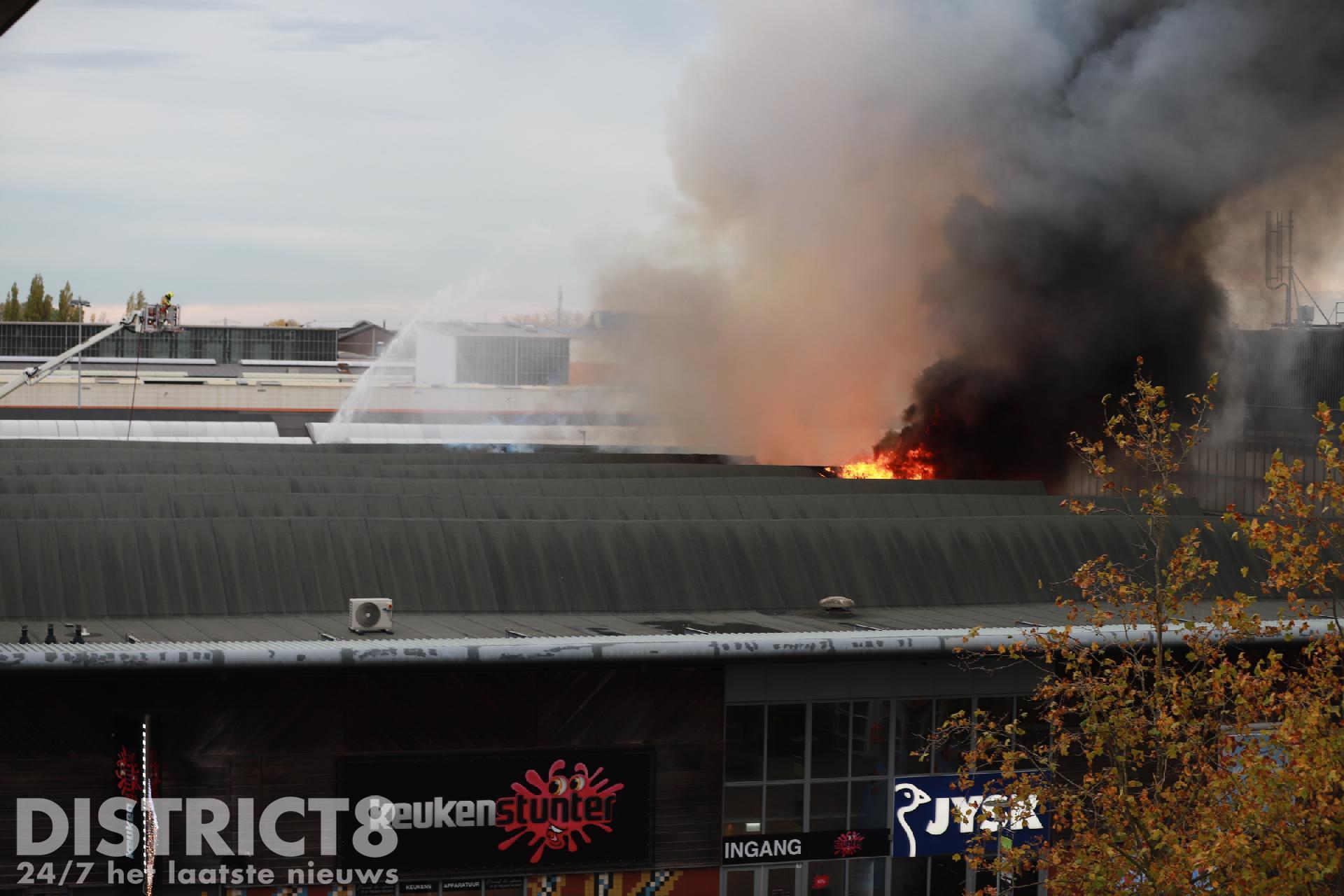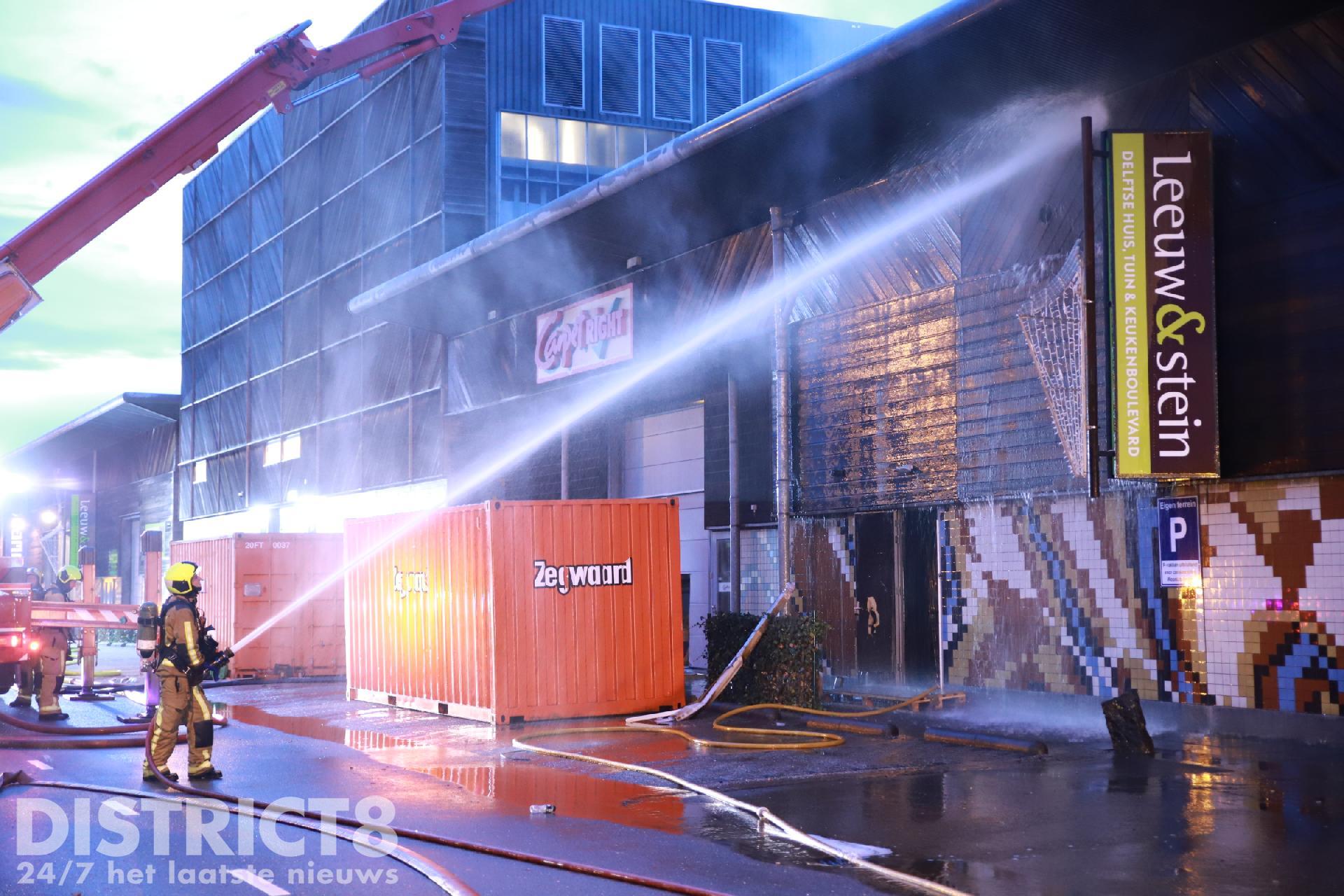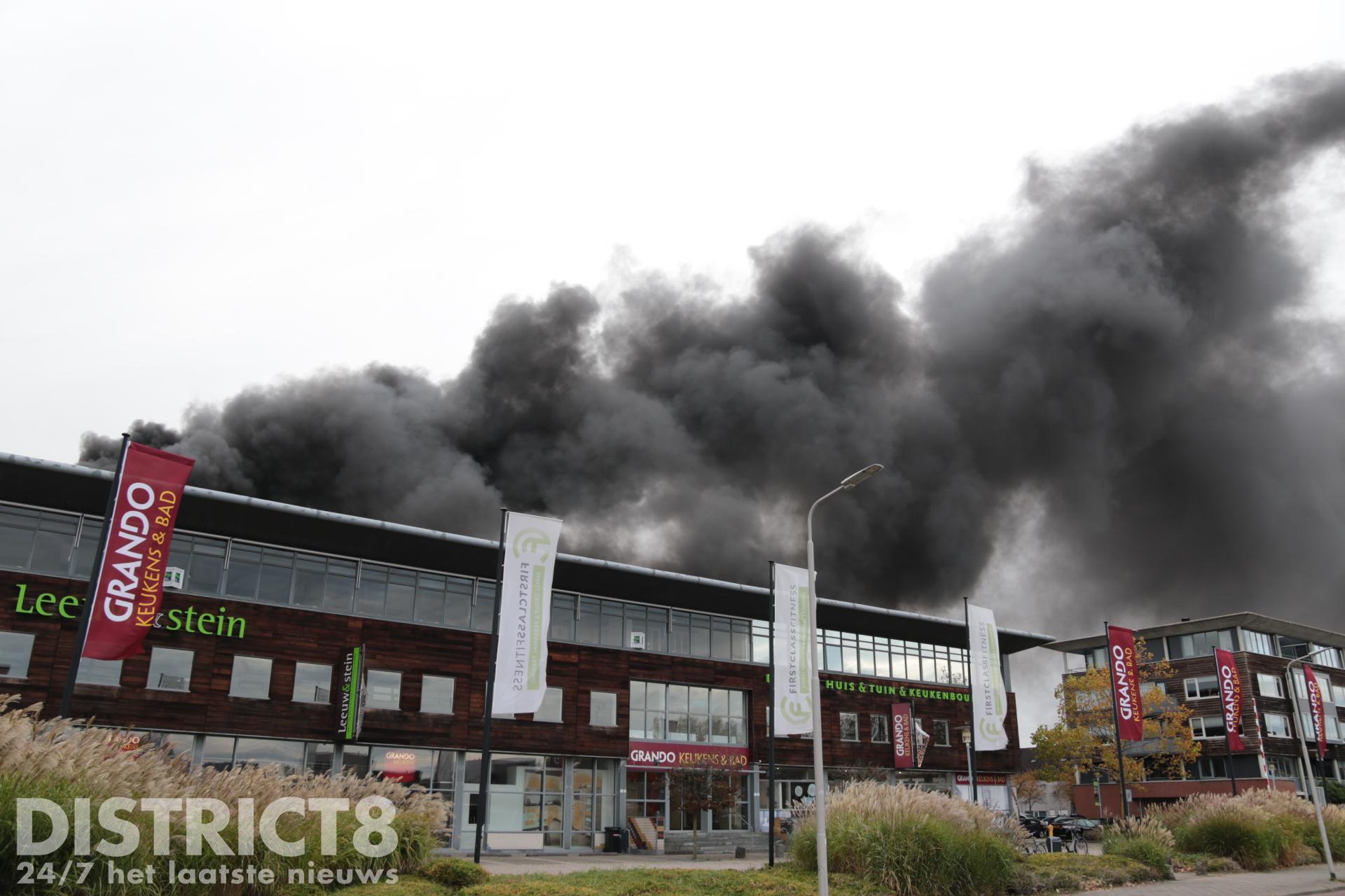 Er was een flinke rookontwikkeling en de vlammen sloegen uit het pand. Dikke rookwolken trokken over Delft richting Den Haag. De brand was vrij snel overgeslagen naar het naastgelegen Carpetright.