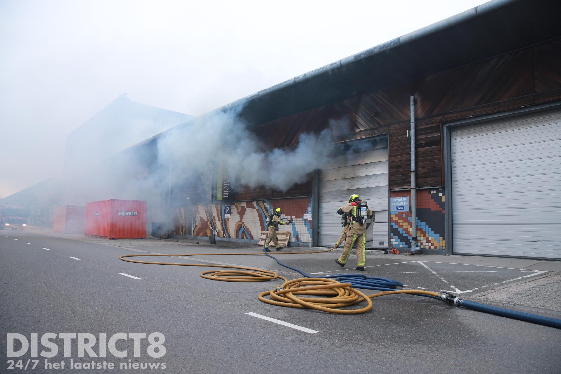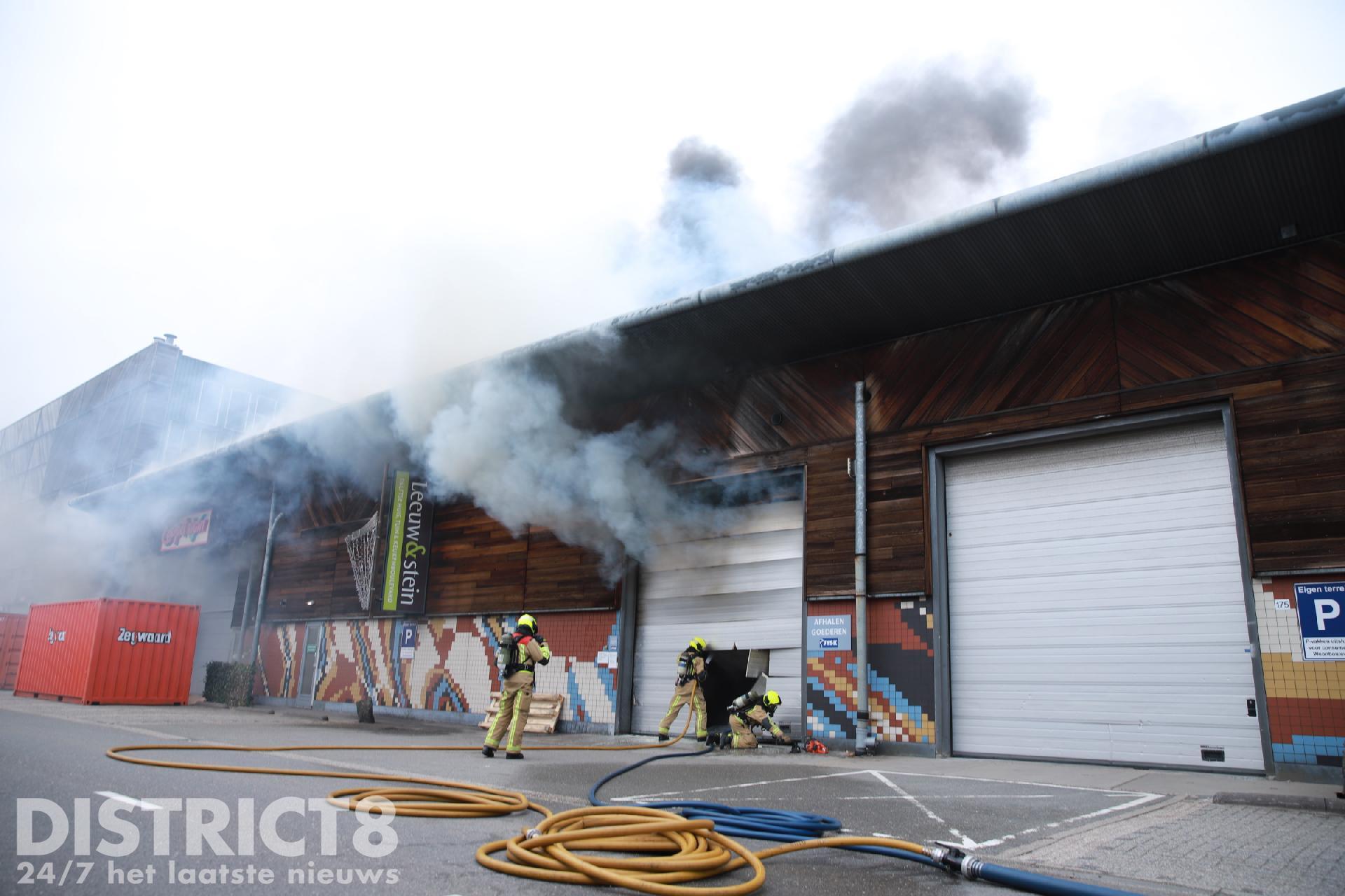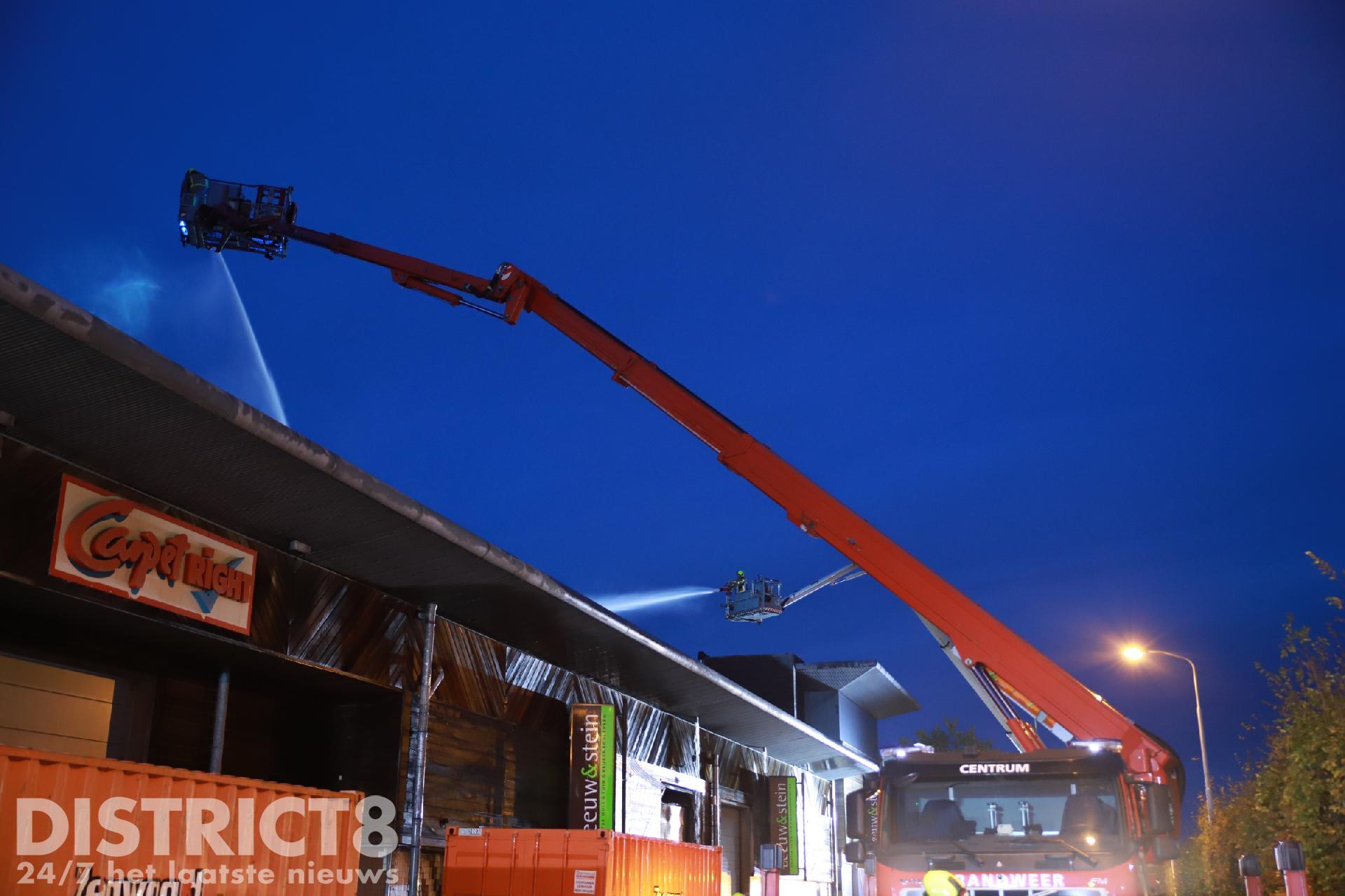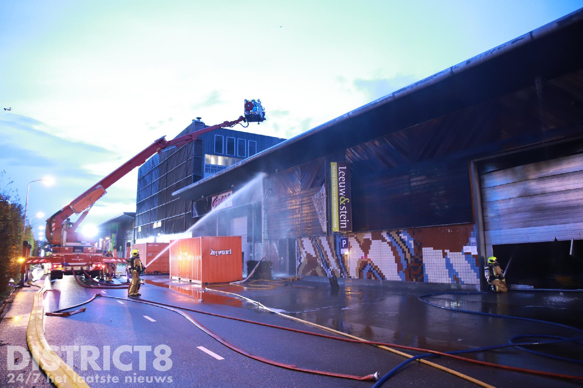 De brandweer heeft meerdere rolluiken opengezaagd om het pand te kunnen betreden. Met meerdere hoogwerkers uit de gehele regio werd vanaf boven geblust.