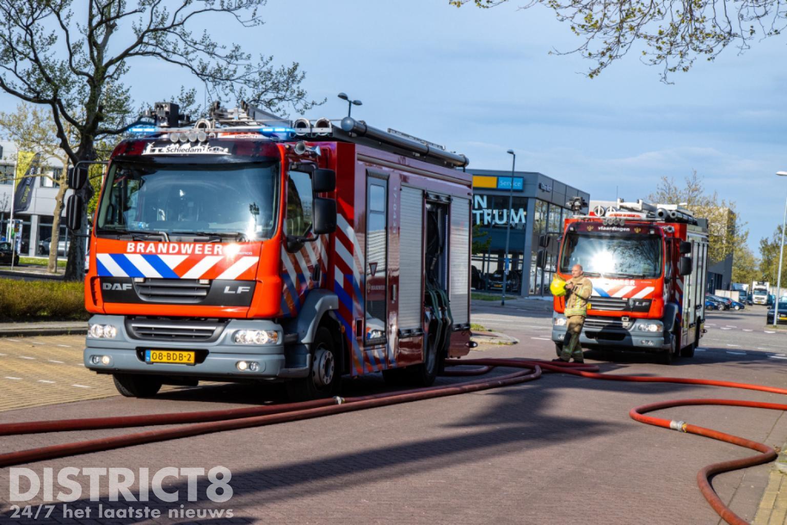 Schiedam – In een bedrijfspand aan de Neherstraat is donderdagavond het brandalarm af gegaan. Hierop is de brandweer gealarmeerd die met spoed ter plaatse kwam. Al snel bleek er daadwerkelijk brand te zijn en kwamen er flinke rookwolken uit het pand. De brandweer schaalde hierdoor op naar het sein Zeer Grote brand en stuurde ook een waterpeleton ter plaatse van drie voertuigen met in totaal ruim 3km aan slangen om voldoende bluswater te krijgen.