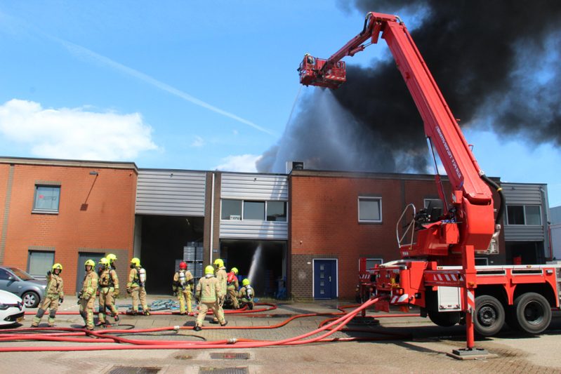 Schiedam – In een bedrijfspand aan de Admiraal Trompstraat in Schiedam is maandagmiddag brand uitgebroken. De brandweer schaalde al snel op naar het sein Zeer Grote Brand en GRIP 1.