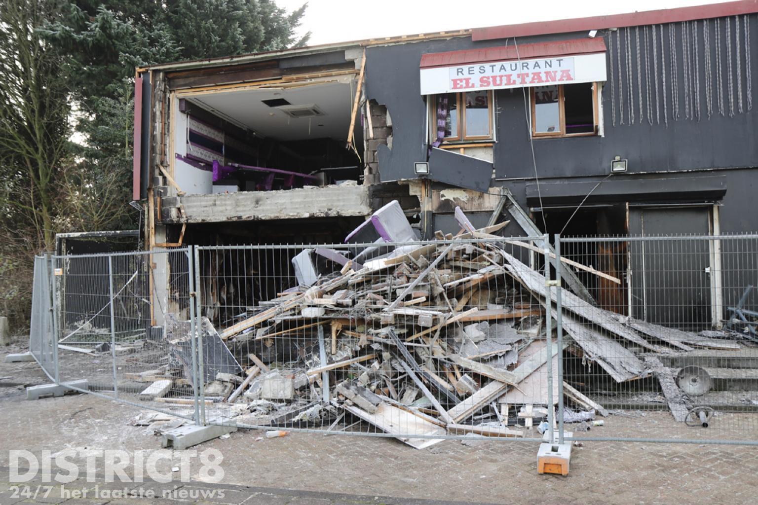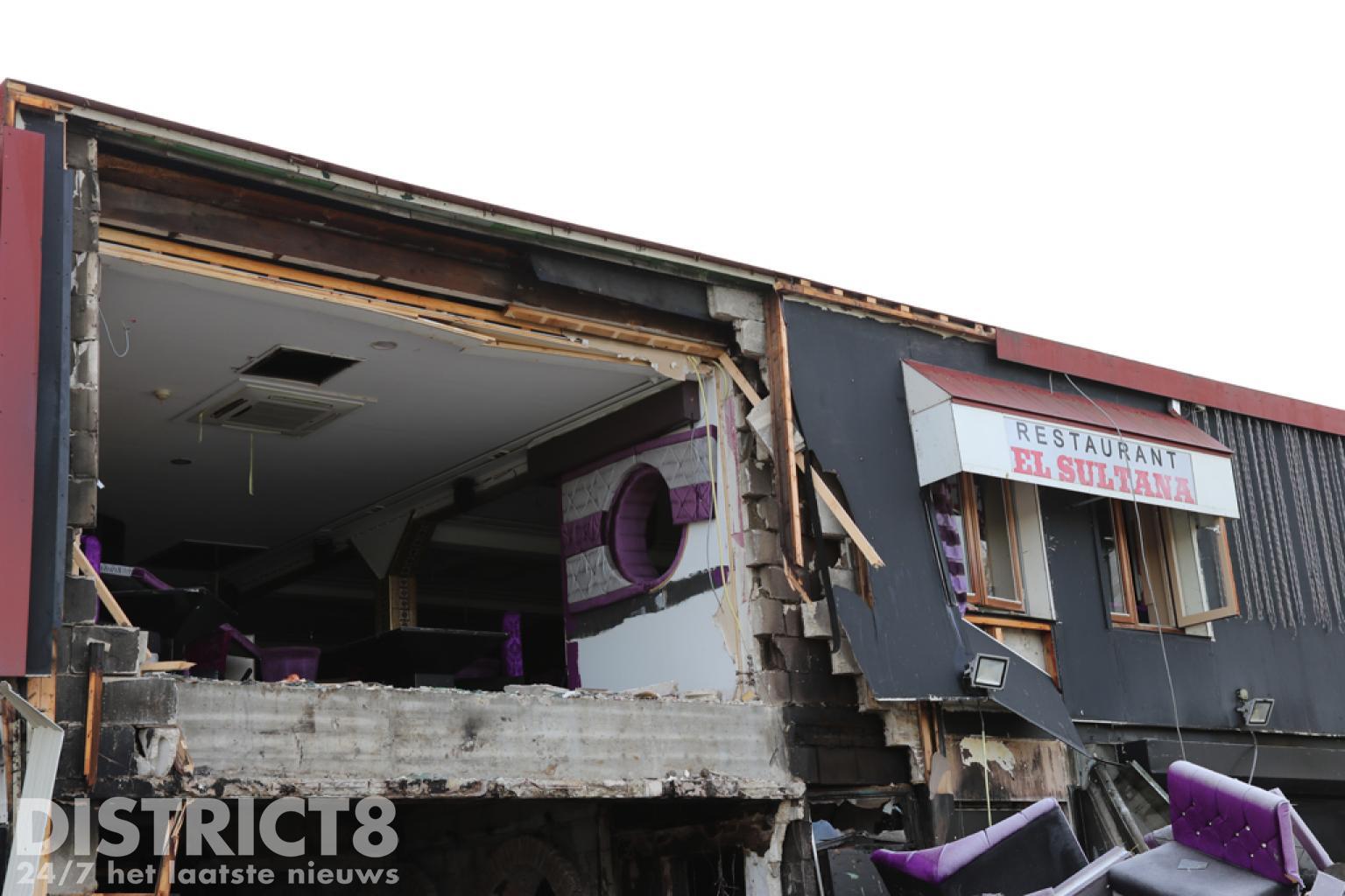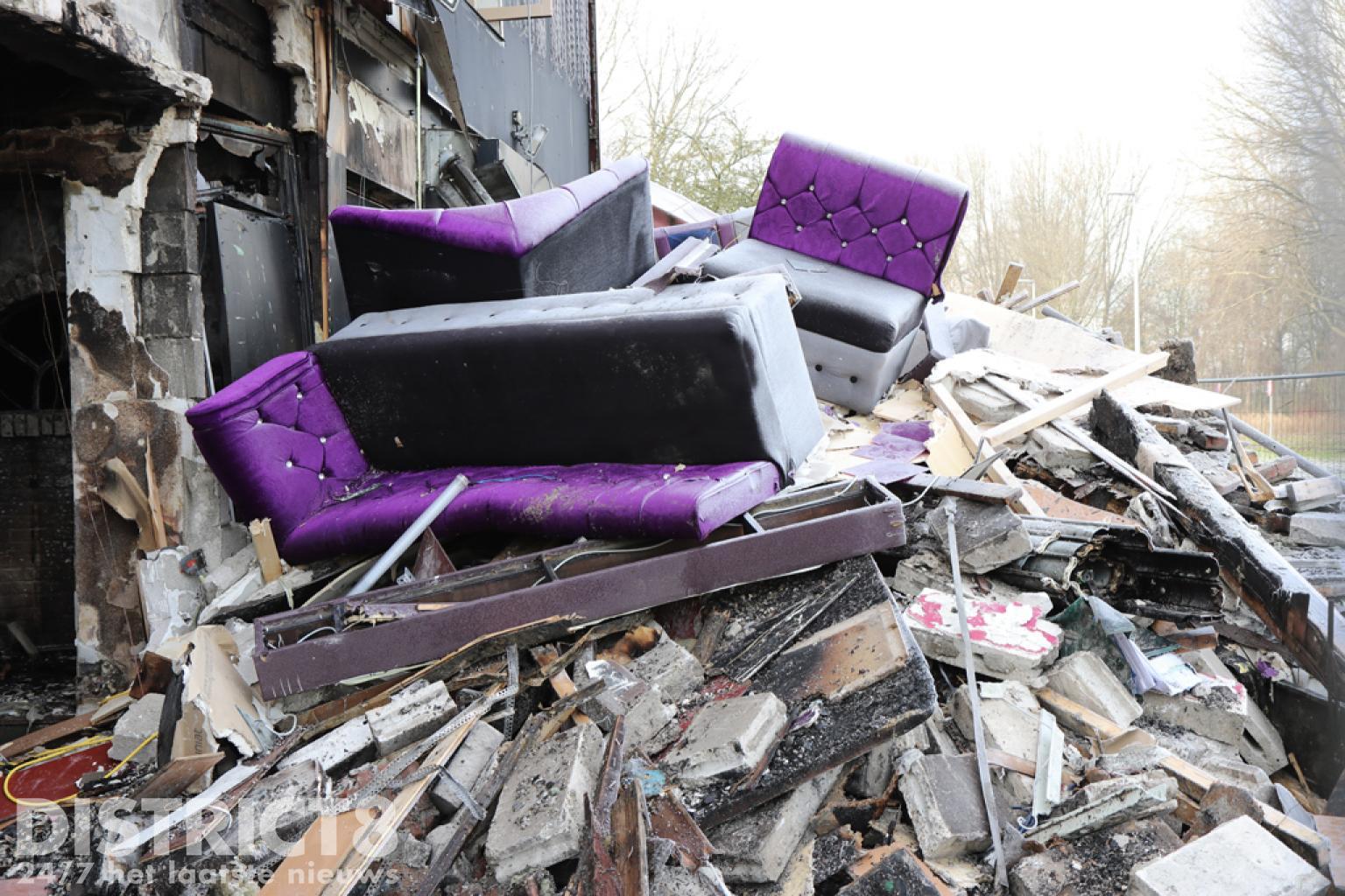 ‘The day after’ is de schade aan het pand goed te zien. Een kraan heeft een gedeelte van het pand gesloopt waardoor de brandweer bij de vuurhaarden kon.