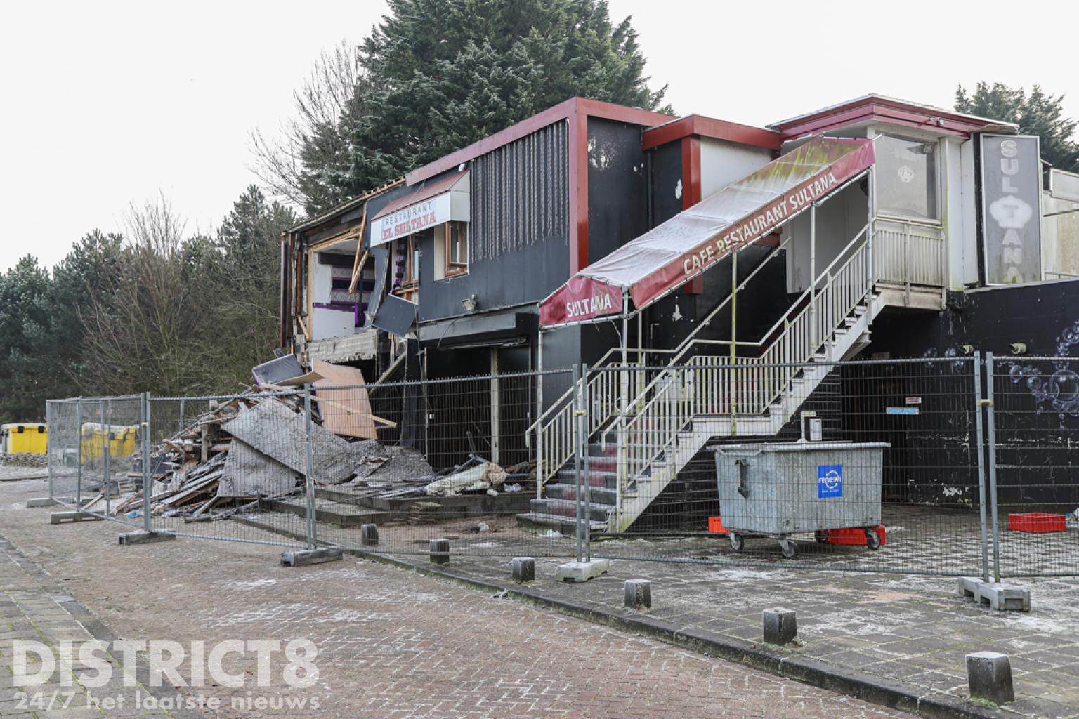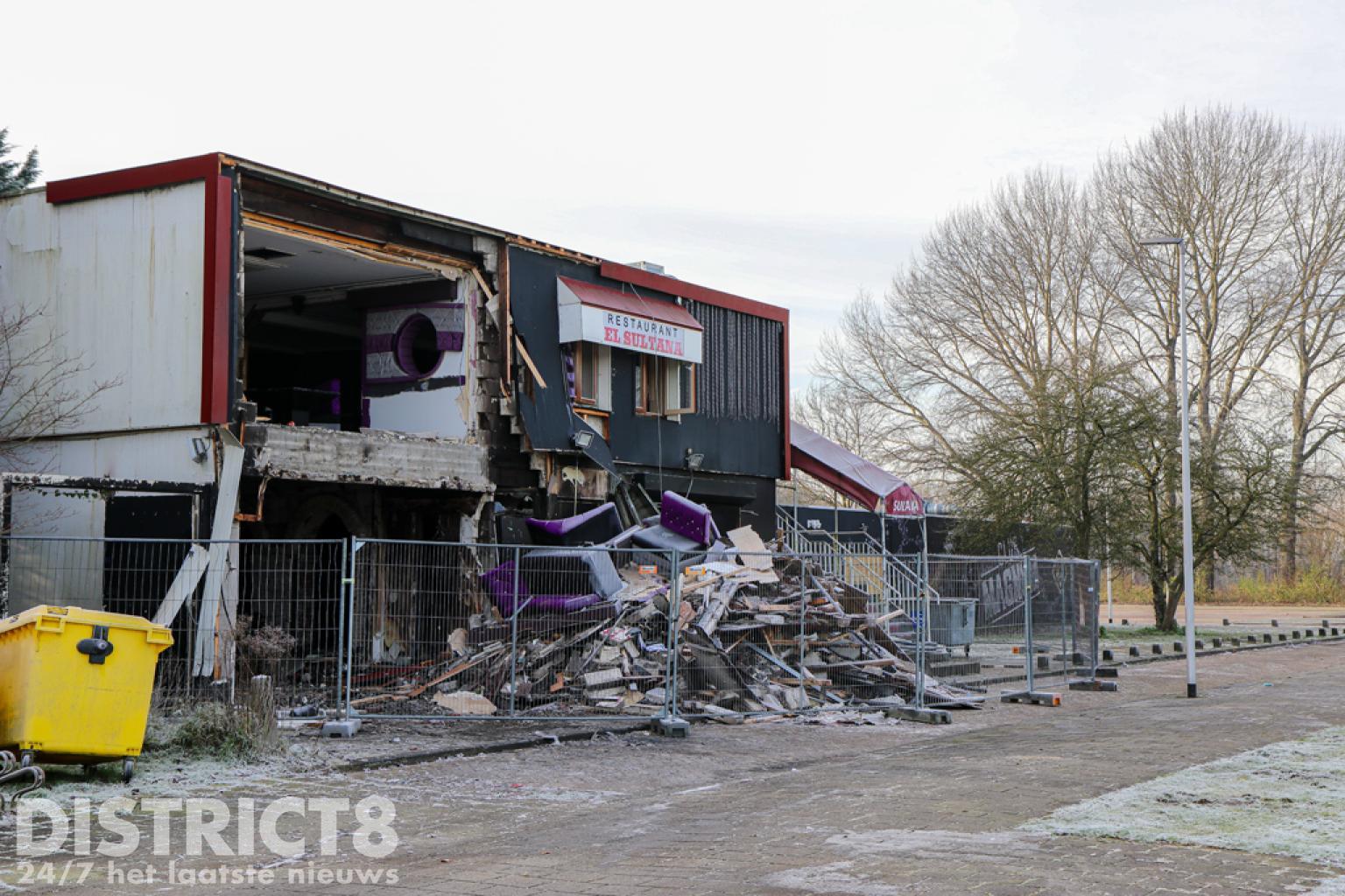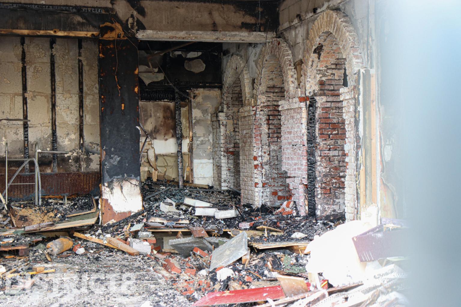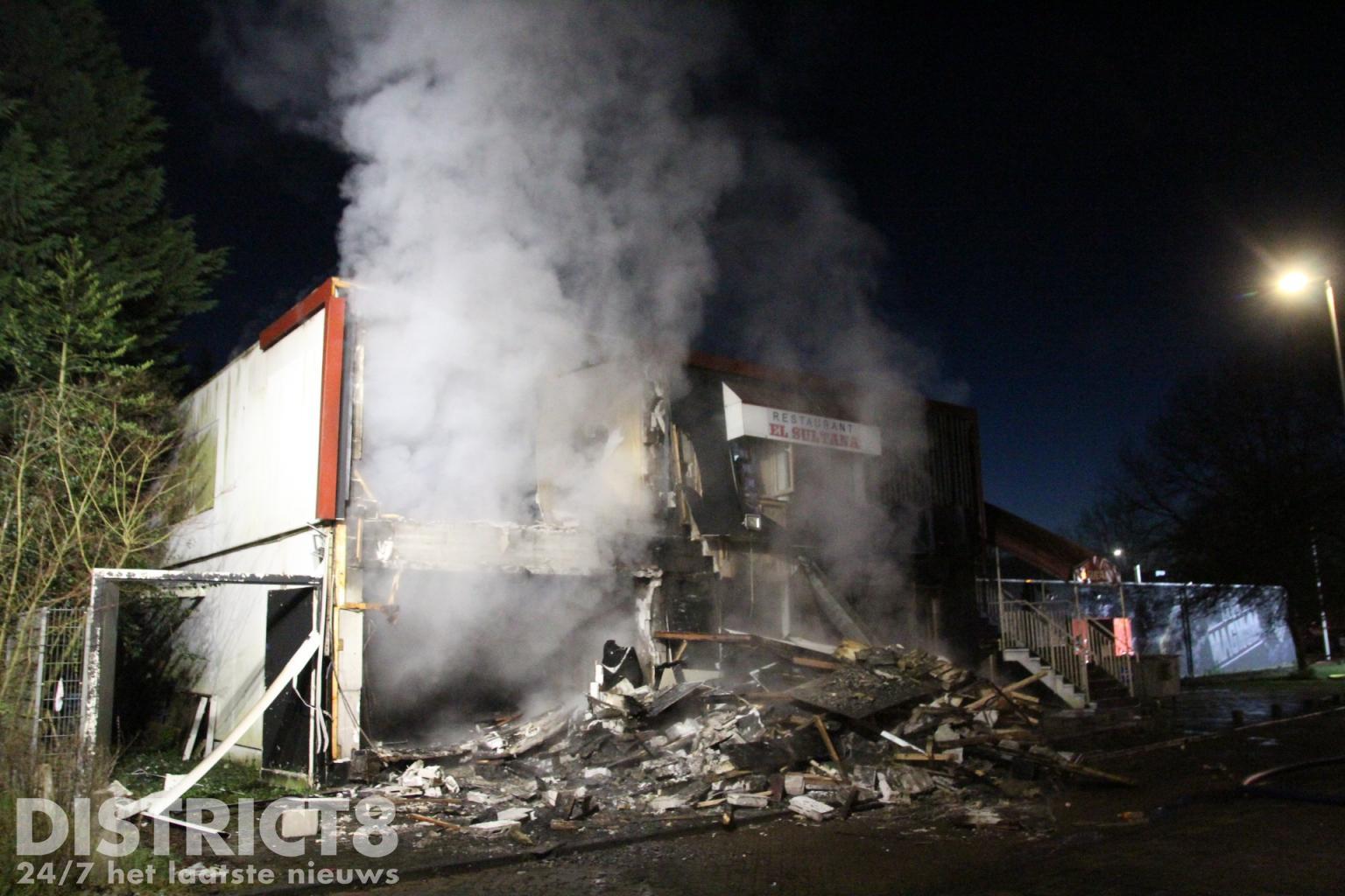 ‘The day after’ is de schade aan het pand goed te zien. Een kraan heeft een gedeelte van het pand gesloopt waardoor de brandweer bij de vuurhaarden kon.