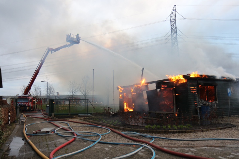Al snel bleek het te gaan om een uitslaande brand. Het hoofdgebouw van het volkstuinencomplex staat in de brand. De brandweer heeft meerdere wagens ingezet om de brand te kunnen blussen.