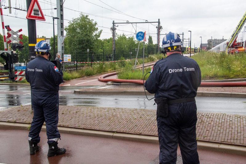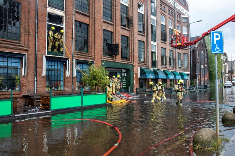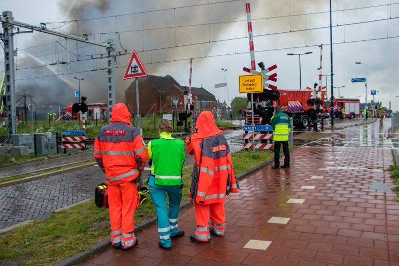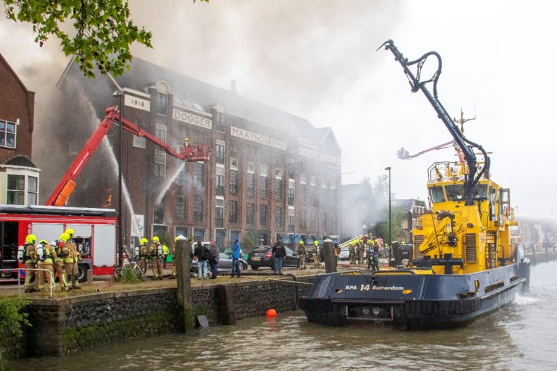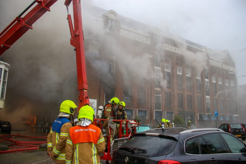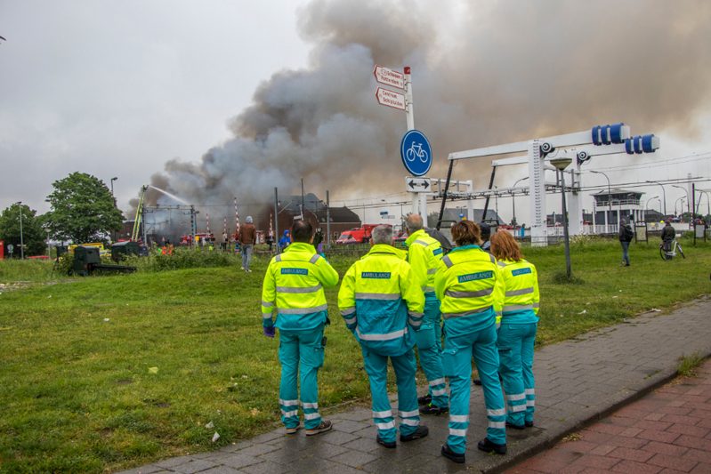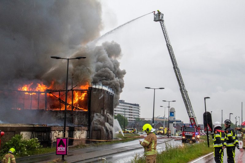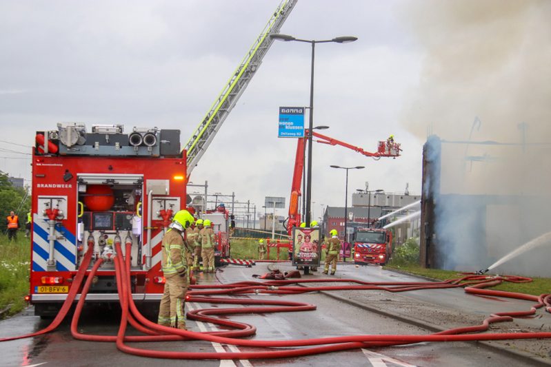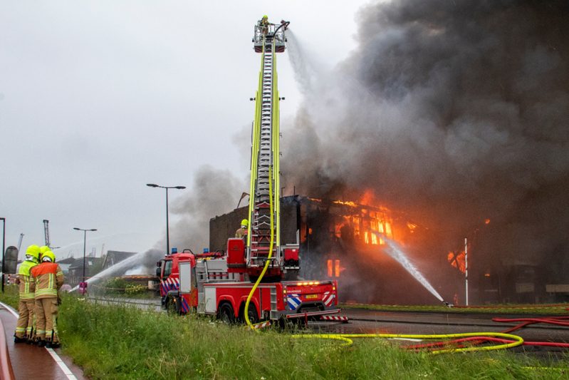 Vlaardingen – Aan de Koningin Wilhelminahaven in Vlaardingen is dinsdagochtend een enorme brand uitgebroken in een garagebedrijf. Binnen 1 minuut schaalde de meldkamer op naar het sein “Grote Brand” In korte tijd werd er verder opgeschaald naar het sein “Zeer Grote Brand” en “GRIP 2”. In totaal werden er gedurende de dag 6 pelotons gealarmeerd. Eén peloton bestaat uit 4 blusvoertuigen.