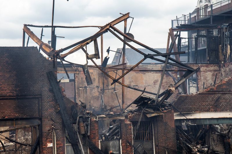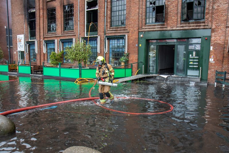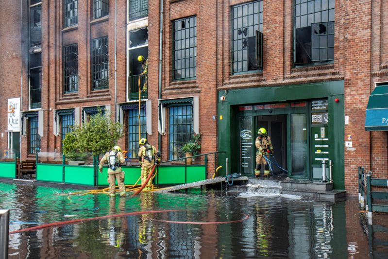 De brand breidde zich razendsnel uit naar het aangrenzende gebouw van 5 verdiepingen. Bovenin zitten woningen, onderin zitten enkele horecagelegenheden gevestigd. Vooral de horecagelegenheden hebben enorme schade opgelopen en zijn grotendeels verwoest. De brandweer heeft enkele bewoners uit die bovengelegen woningen gered. Drie mensen moesten naar het ziekenhuis vanwege rookintoxicatie.