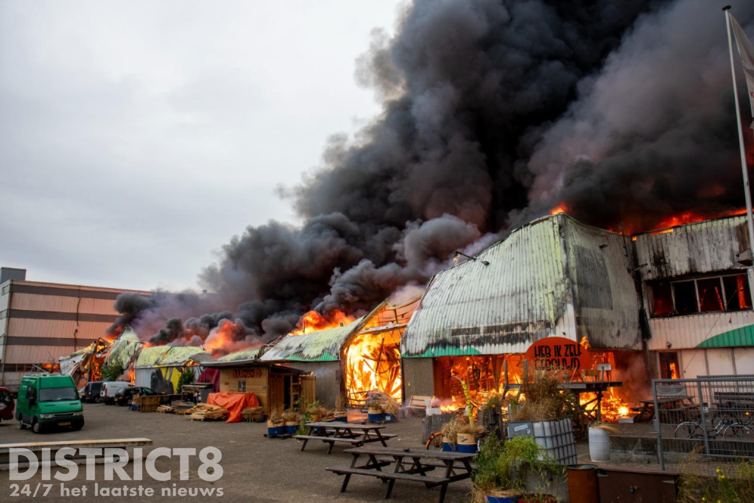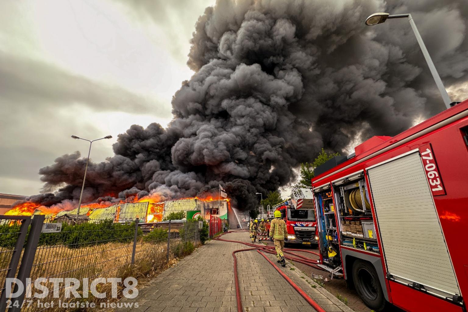 Vanaf het begin waren direct enorme zwarte kolkende rookwolken boven de stad te zien die tot in de verre omgeving zichtbaar waren. Met meer dan 8 tankautospuiten en vanuit onder andere 3 redvoertuigen werd de vlammenzee bestreden. Met waterkanonnen werd geprobeerd omliggende panden te redden, want de loods met meerdere kleine bedrijven (verzamelgebouw) was niet meer te redden.