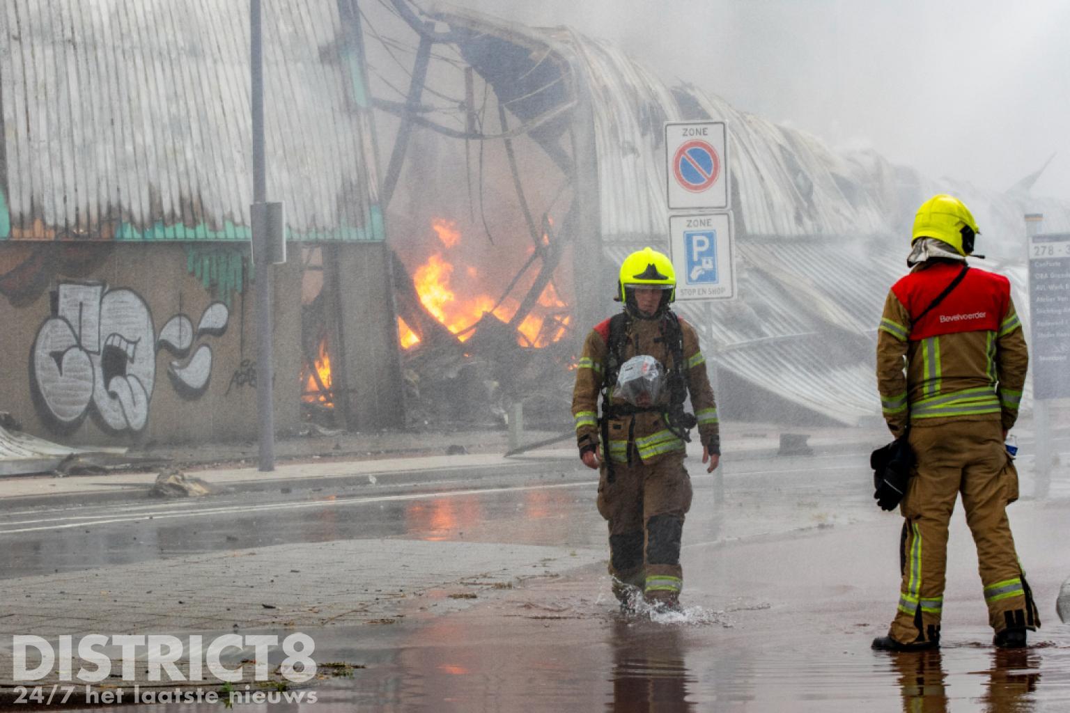 Onder andere het pand van de Leen Bakker en de Praxis hebben schade opgelopen door de extreme hitte, maar de brandweer heeft kunnen voorkomen dat ook deze panden in brand vlogen.