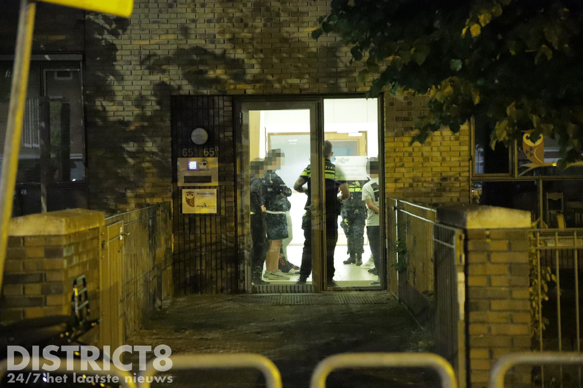Na ongeveer een half uur kwamen zes jongeren richting de ingang gelopen. De politie hield ze allemaal staande en controleerde hun gegevens.
