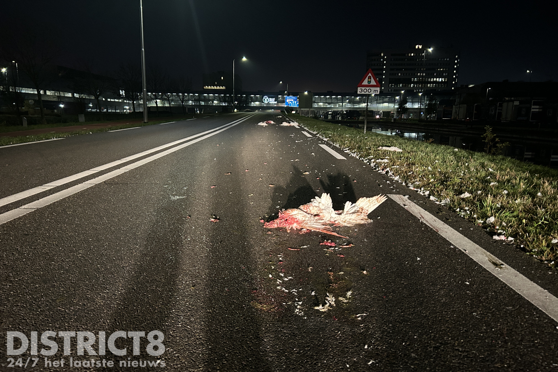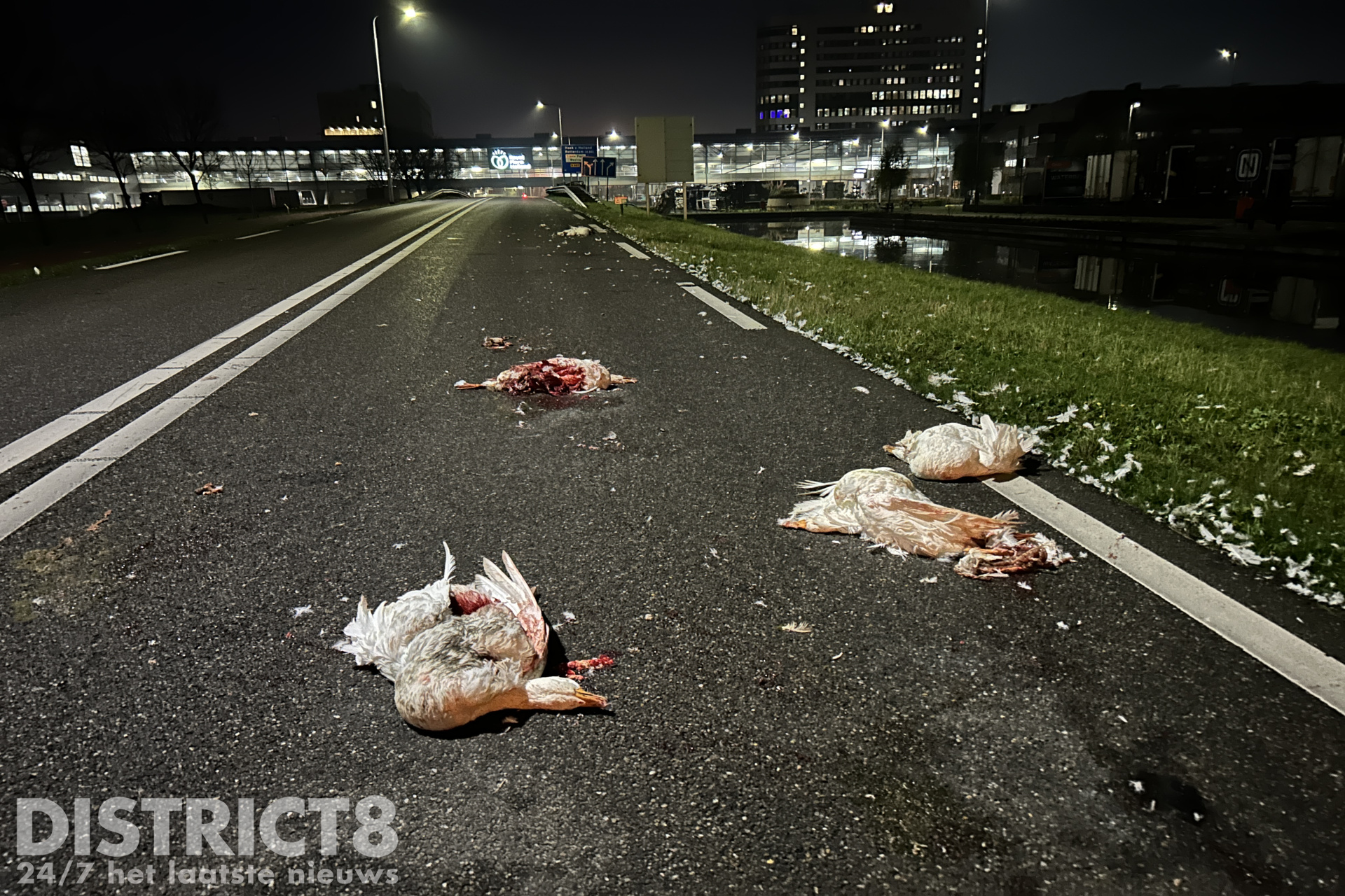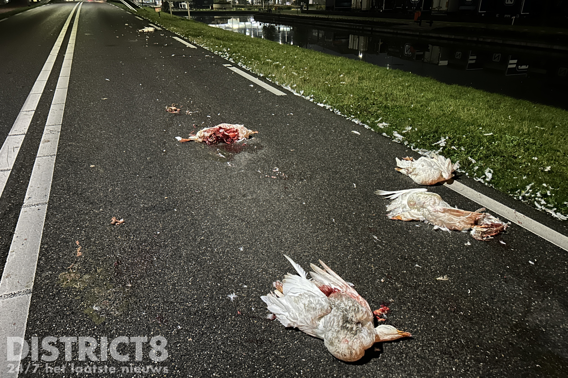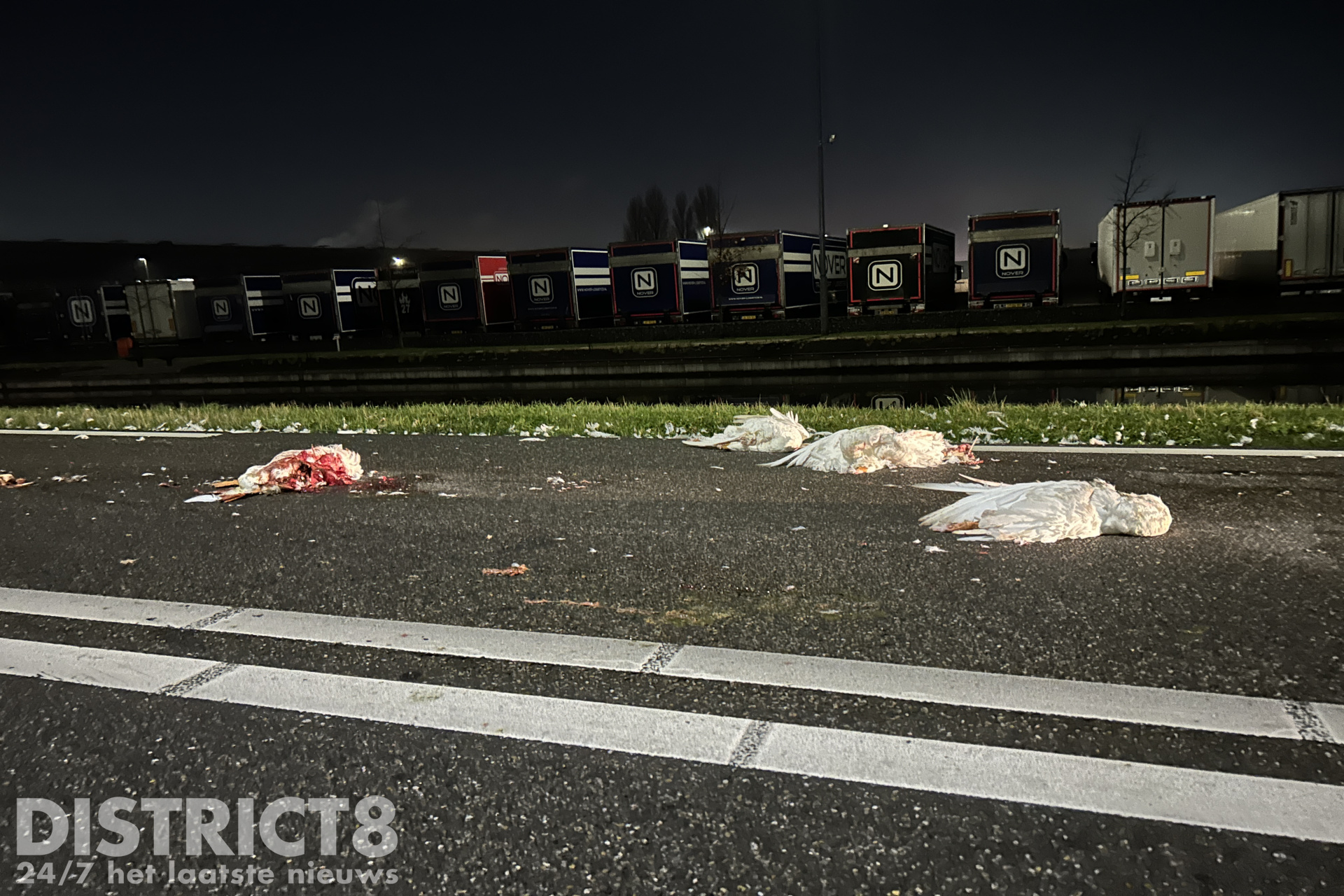 Rond 04.00 uur kreeg de meldkamer van de politie een melding over meerdere dode ganzen die op de rijbaan lagen.