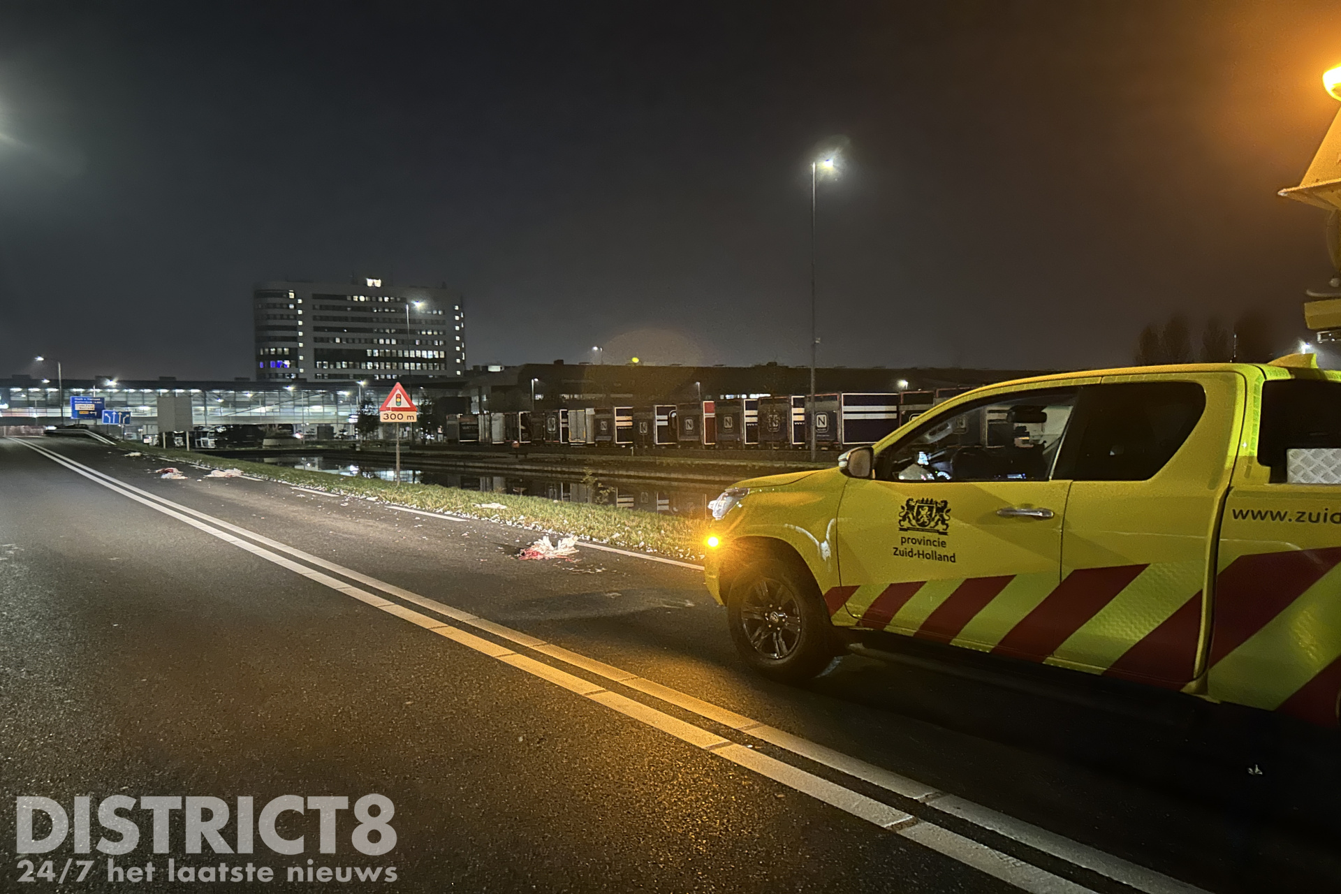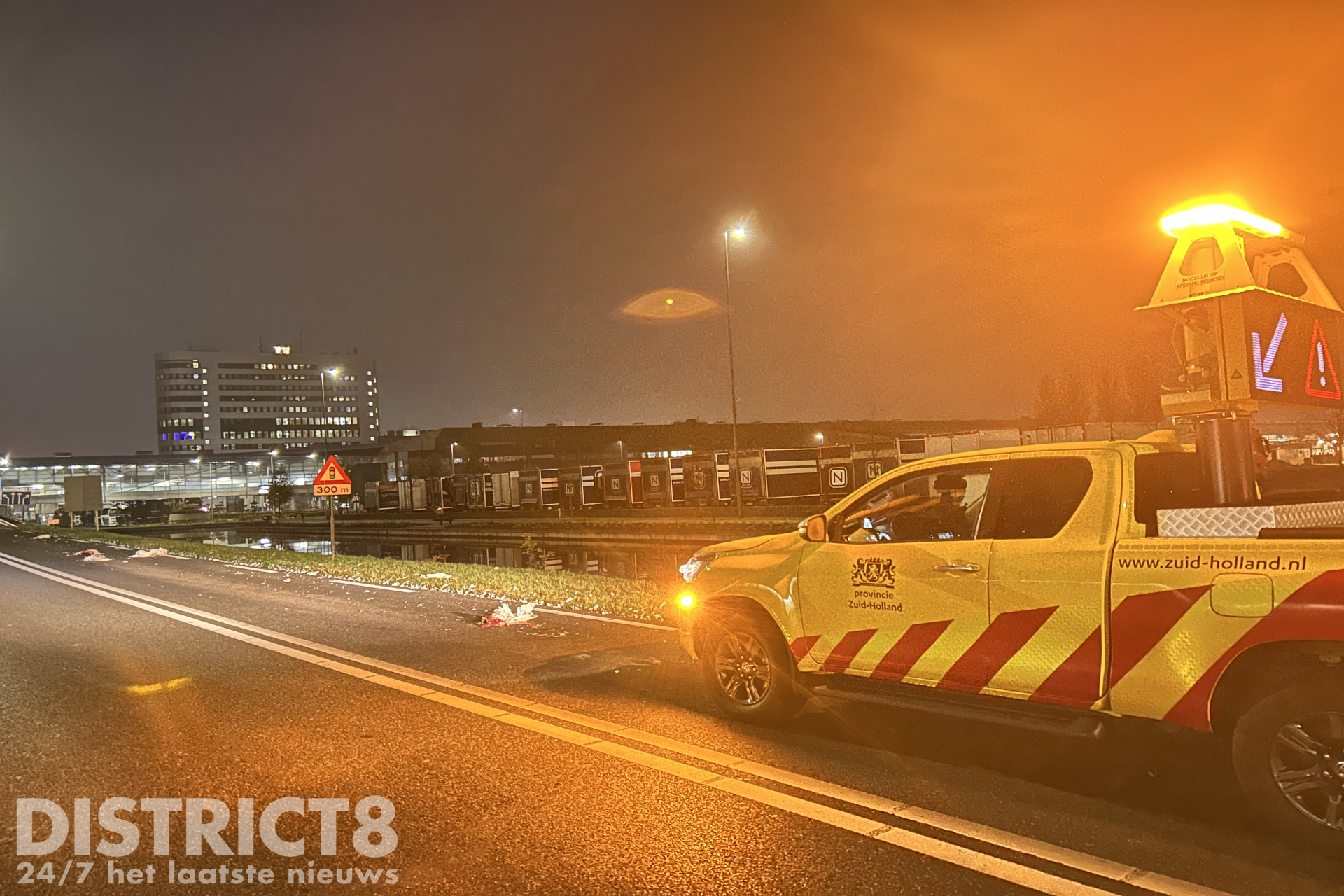 Een weginspecteur van de provincie Zuid-Holland kwam ter plaatse, sloot de weg tijdelijk af en verwijderde de dieren van het wegdek.