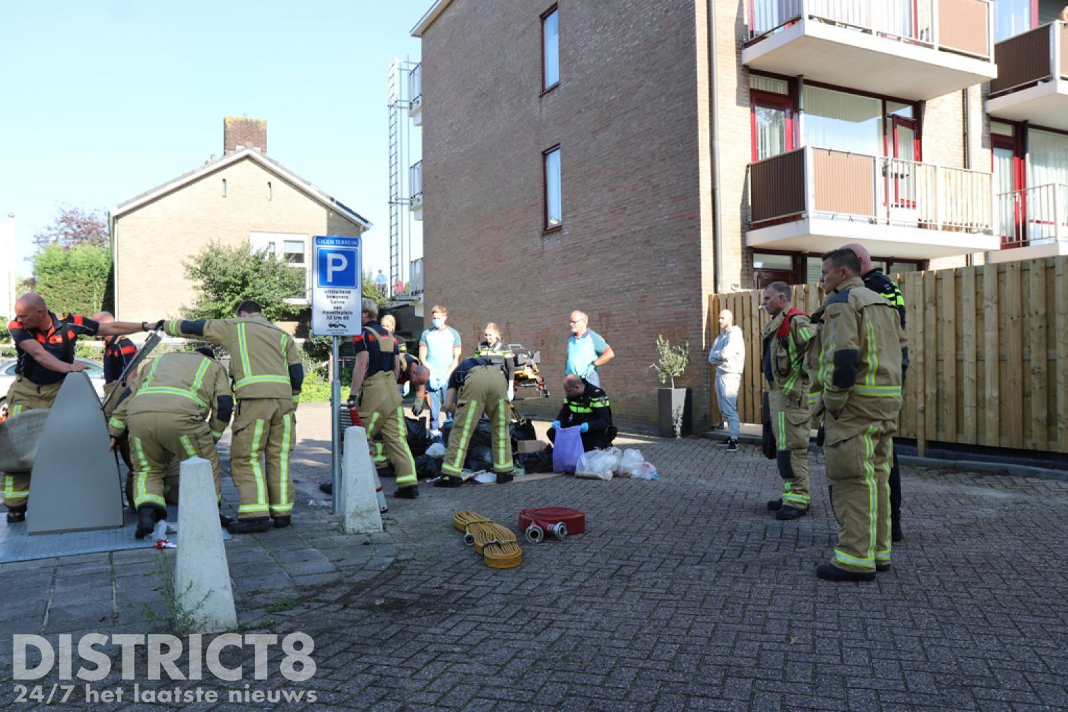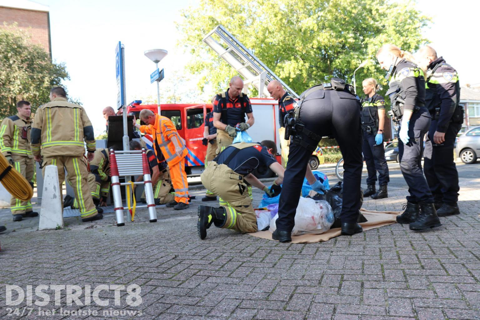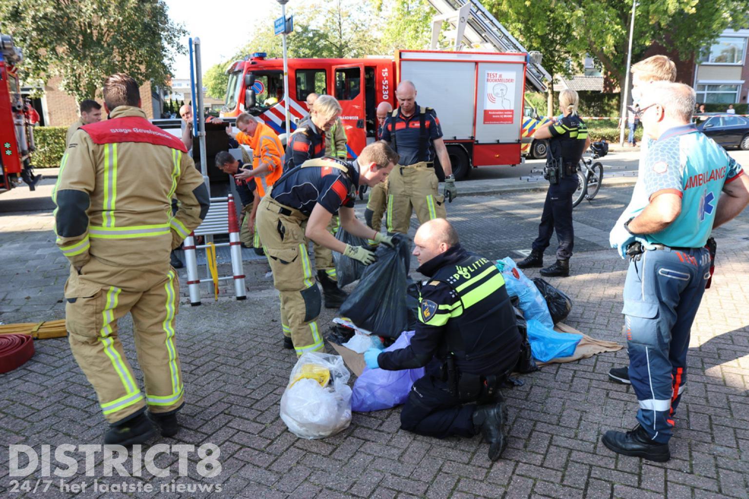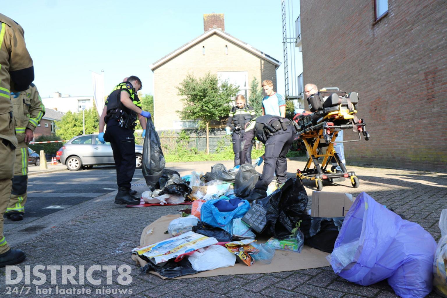 Ook vuilniszakken uit de container zijn op straat door de hulpverleners doorzocht. Er werd niets aangetroffen. Na overleg is alles weer ingepakt en het vuilnis in de container gedeponeerd. De politie doet verder onderzoek.