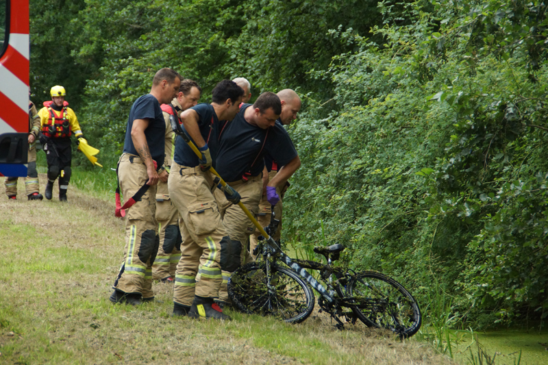 Een passant zag een fiets in het water liggen end belde voor de zekerheid met 09–8844, na overleg besloot de meldkamer om meerdere hulpdiensten te alarmeren.