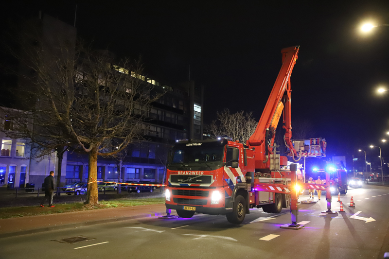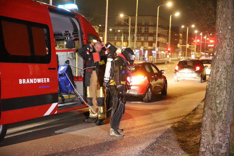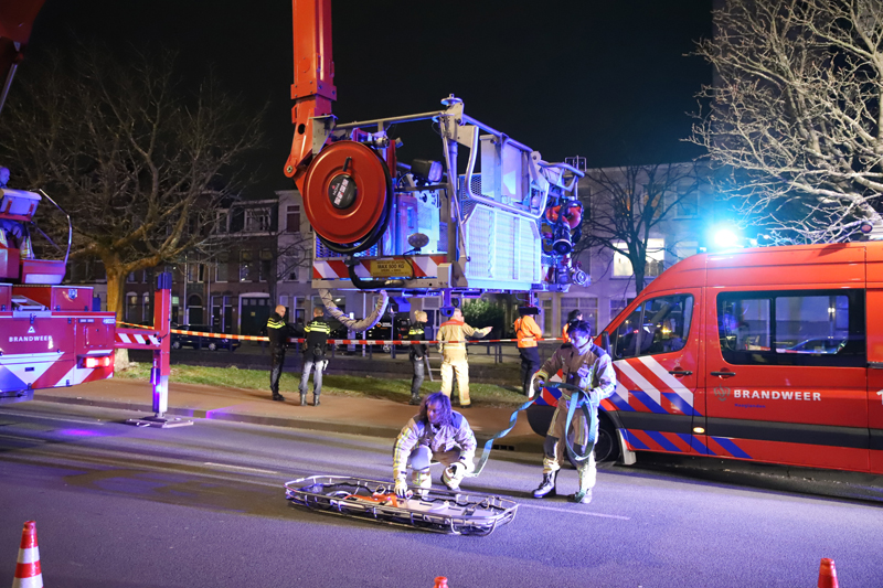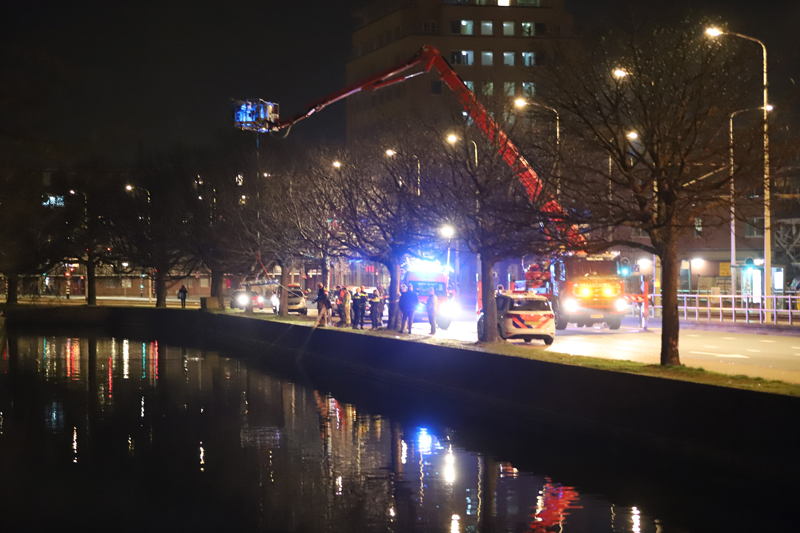 Ook stelde de brandweer de hoogwerker op om een eventueel slachtoffer snel op de kant te kunnen krijgen.