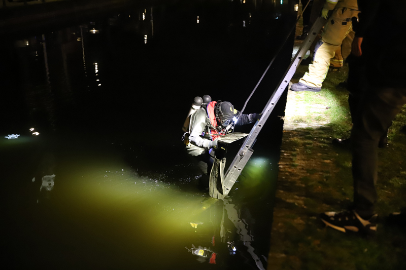De brandweer en de politie kwamen met spoed ter plaatse, een duiker van de brandweer is direct het water ingegaan om een eventuele opzittende van de scooter te lokaliseren en te redden.