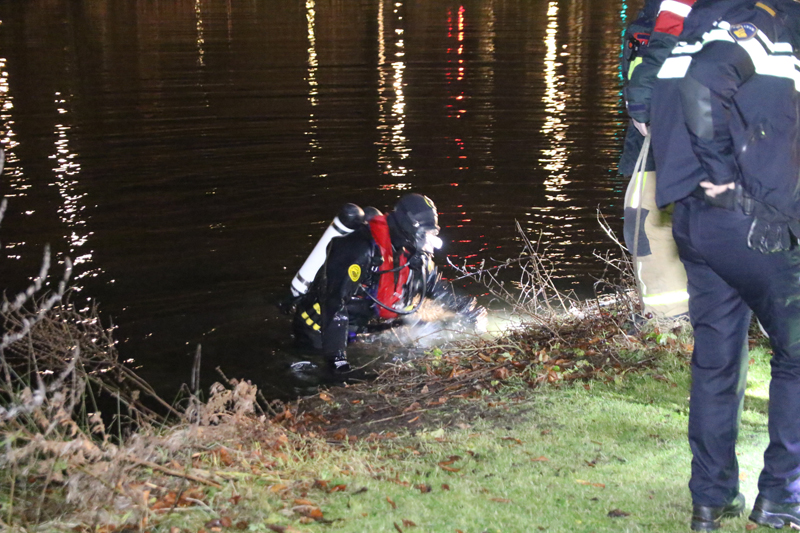 De brandweer kwam met spoed ter plaatse en een brandweerduiker heeft zoekslagen gemaakt, om uit te kunnen sluiten dat er iemand in het water ligt.
