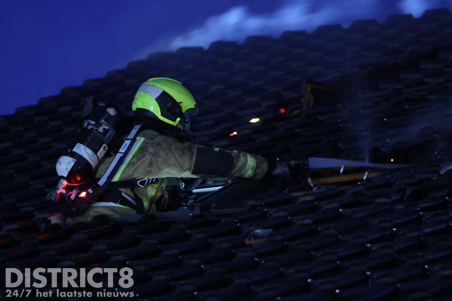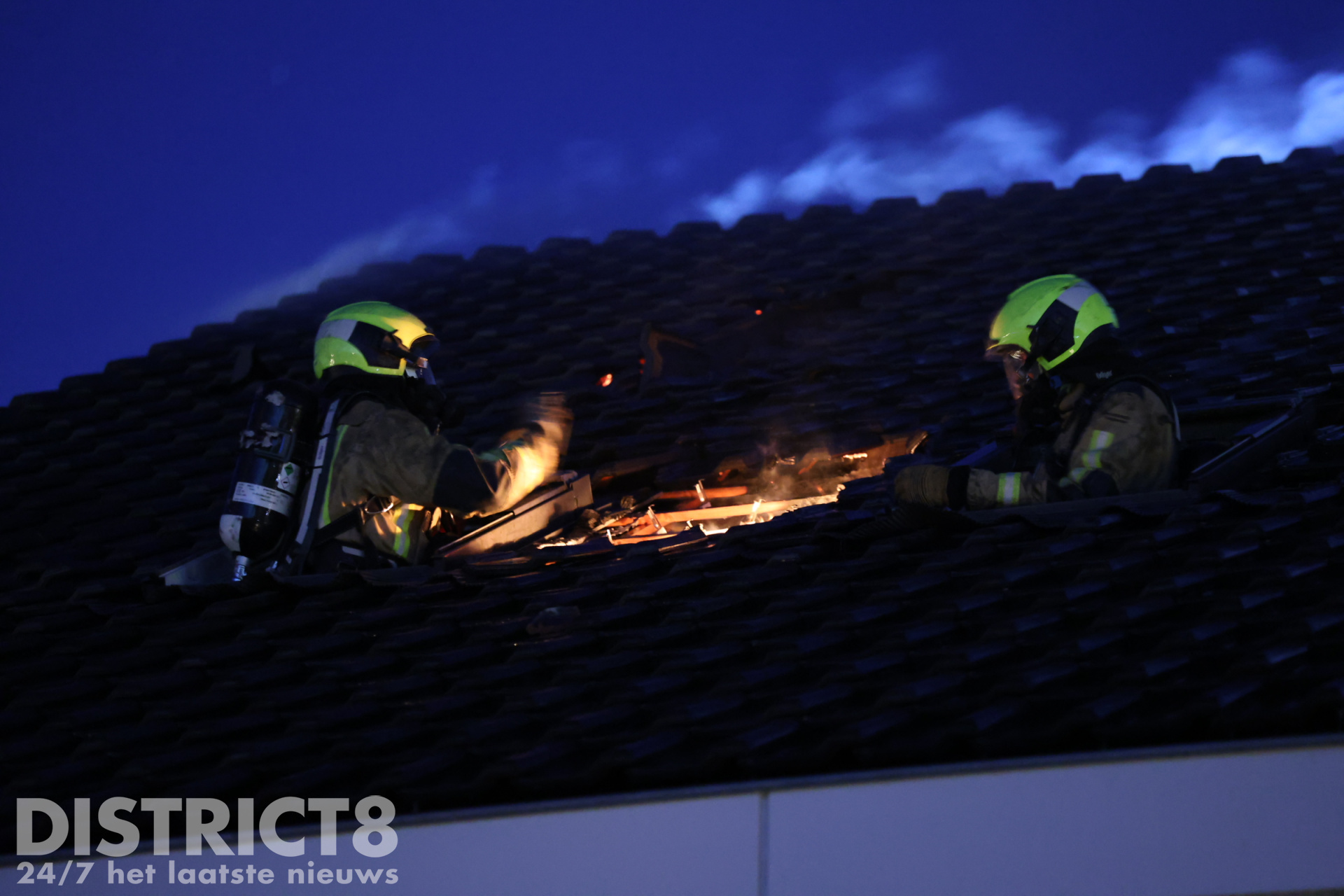 Na enige tijd waren op de nok van het dak vlammen zichtbaar, brandweermannen zijn via een hoogwerker omhoog gegaan en hebben sloopwerkzaamheden moeten verrichten om de brand volledig uit te krijgen. Over de verdere omvang van de schade is op dit moment nog niks bekend al is de schatting dat deze groot is bij de betrokken woningen.